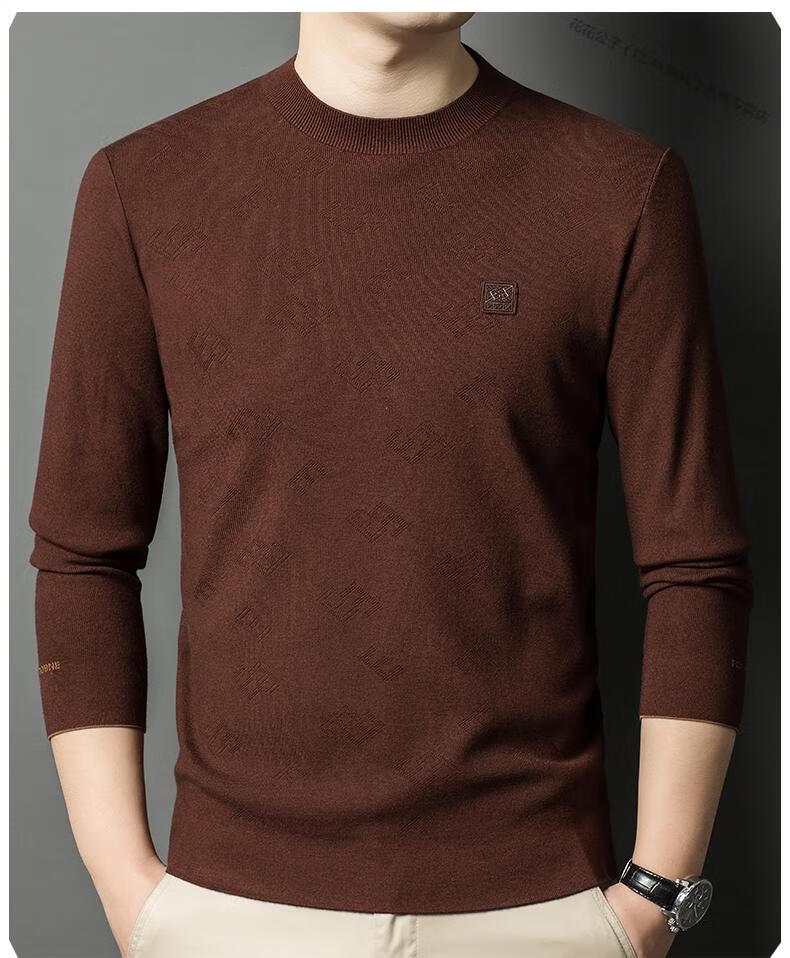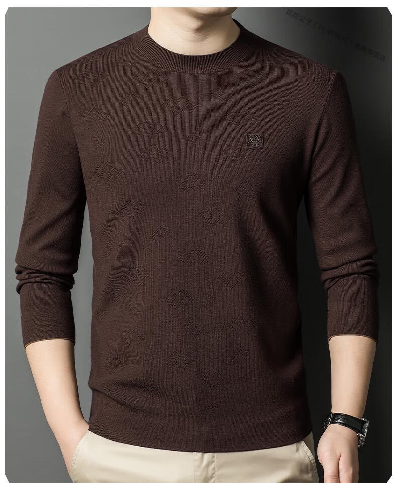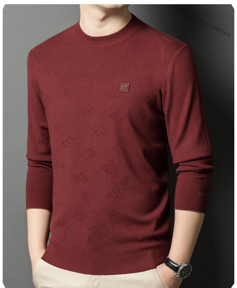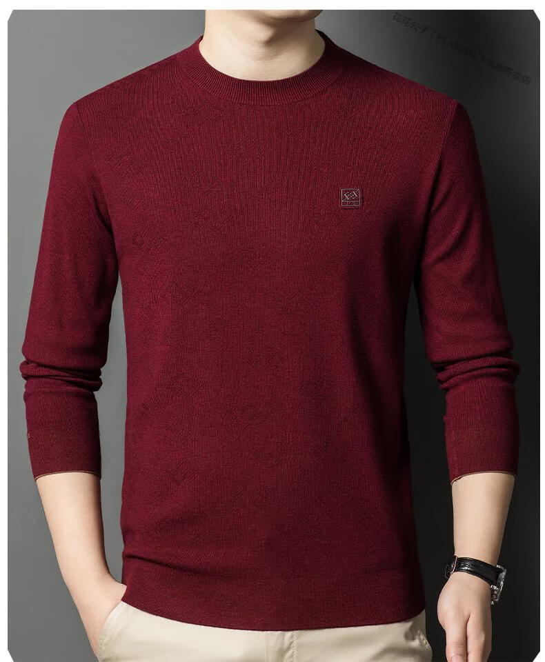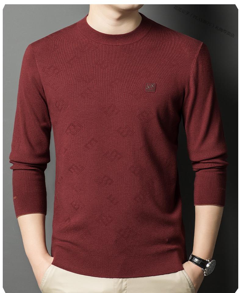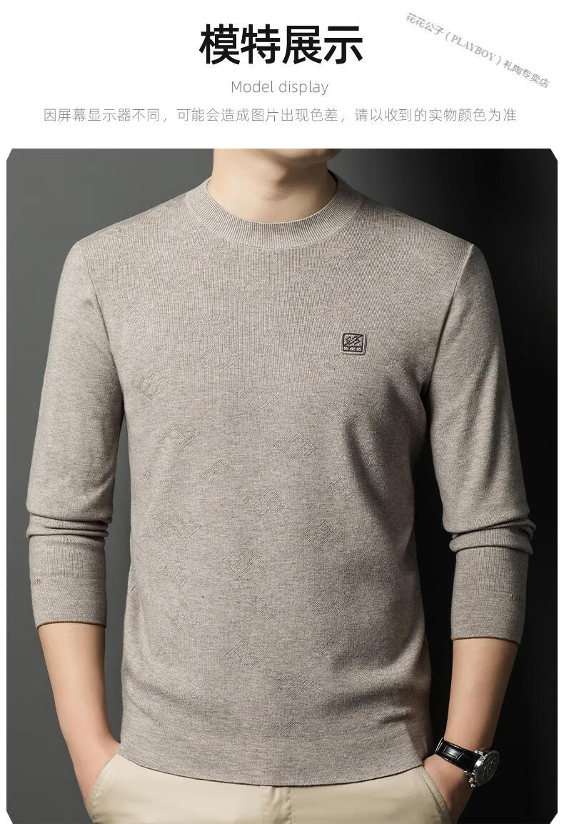 花花公子(PLAYBOY)男士高端品牌新款圆领羊毛衫男中老年羊毛冬季加厚针织衫宽松打底 花枣红 4XL 130/190【建议180-200斤】 速
