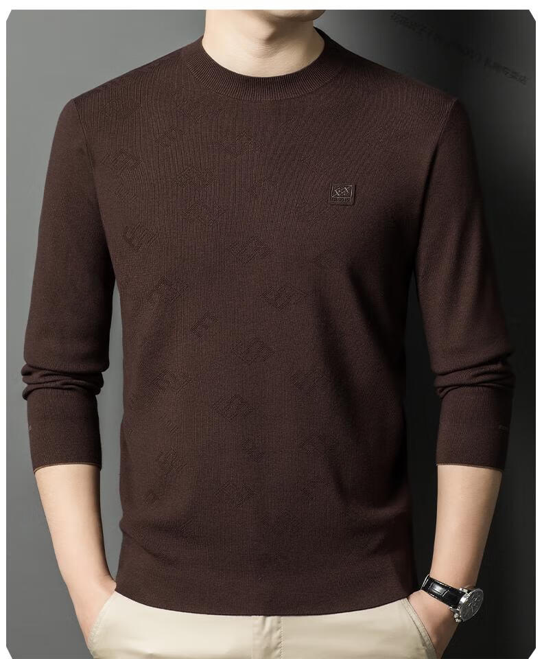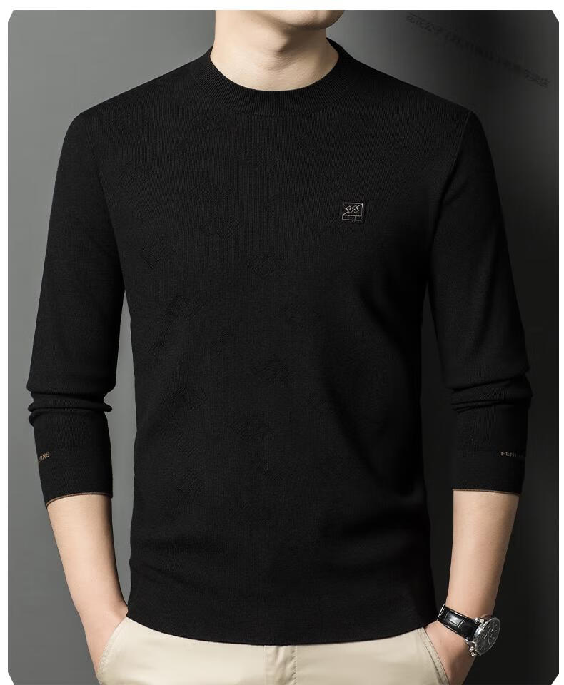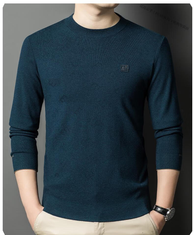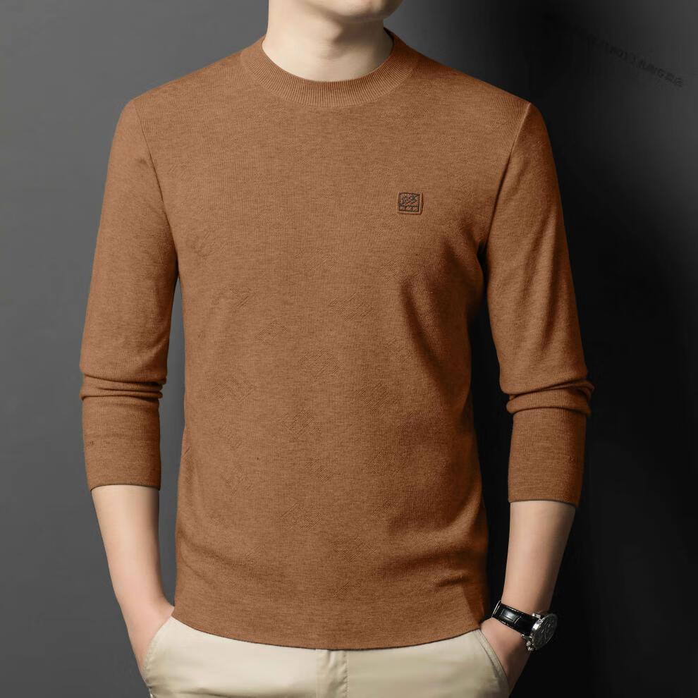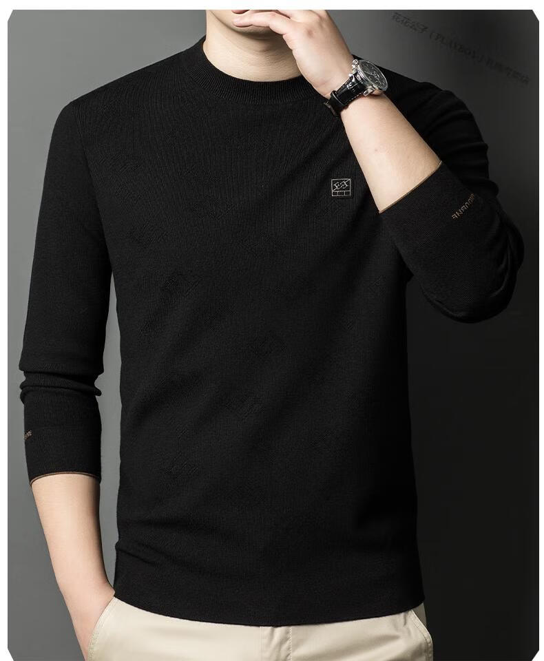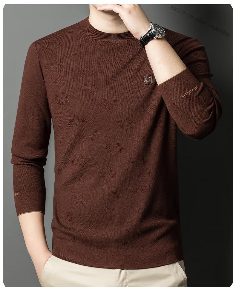 花花公子(PLAYBOY)男士高端品牌新款圆领羊毛衫男中老年羊毛冬季加厚针织衫宽松打底 花枣红 4XL 130/190【建议180-200斤】 速