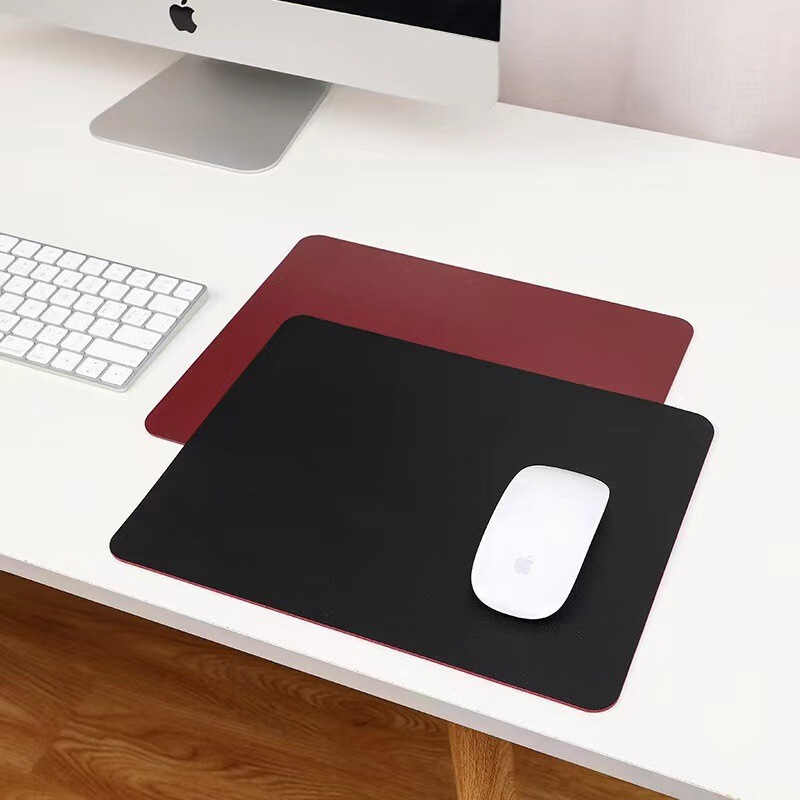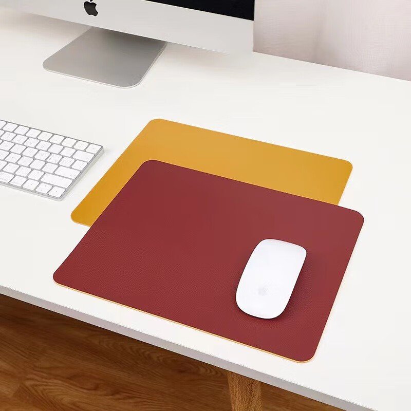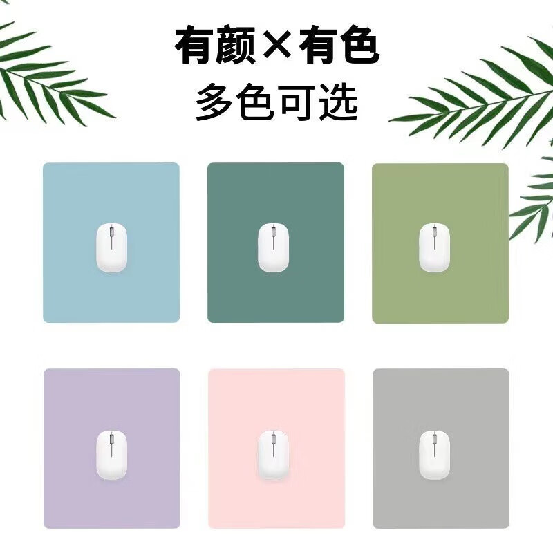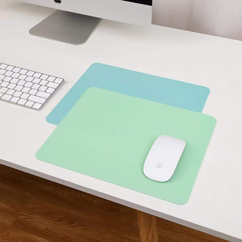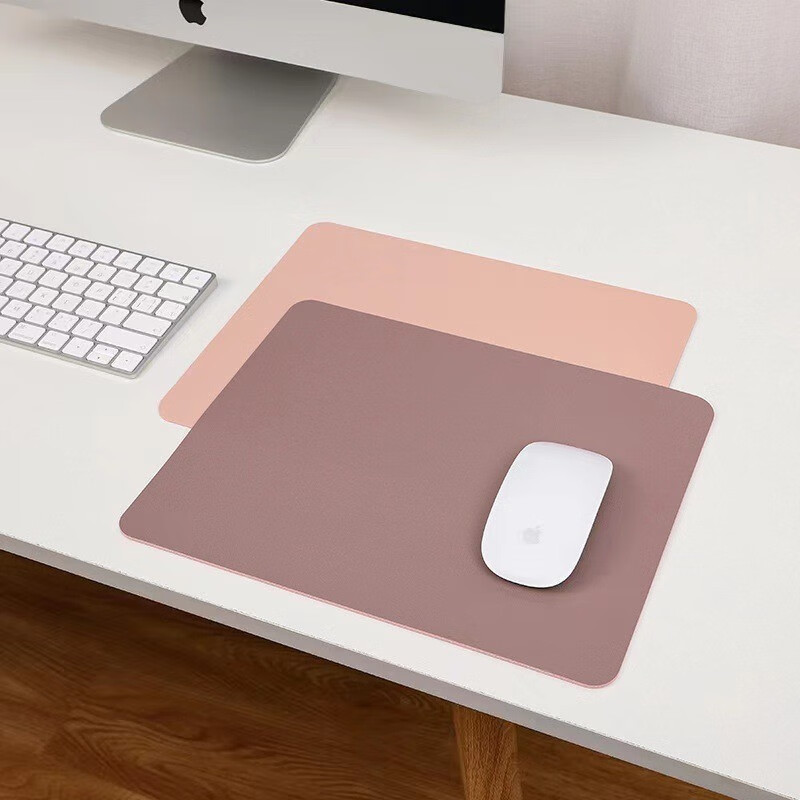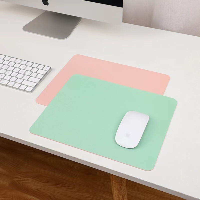 【精选】皮革鼠标垫纯色ins风双面小号鼠标垫笔记本电脑手机桌垫 粉色+兰色(双面 23*19CM