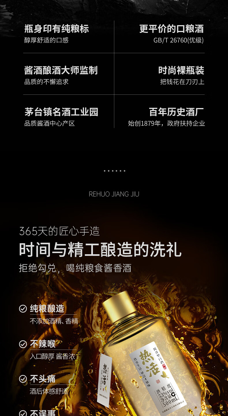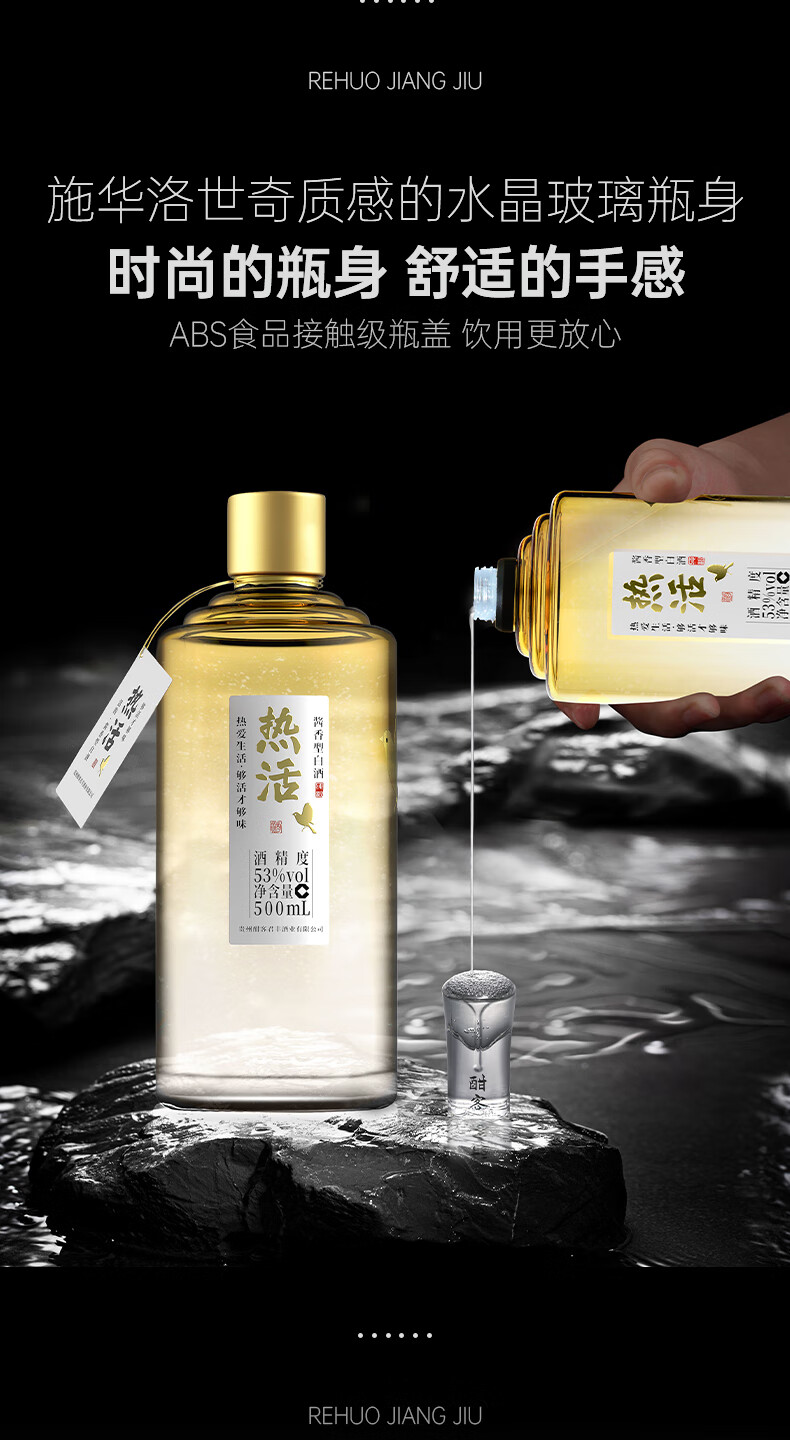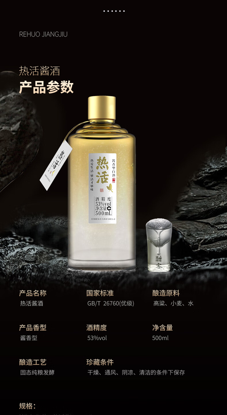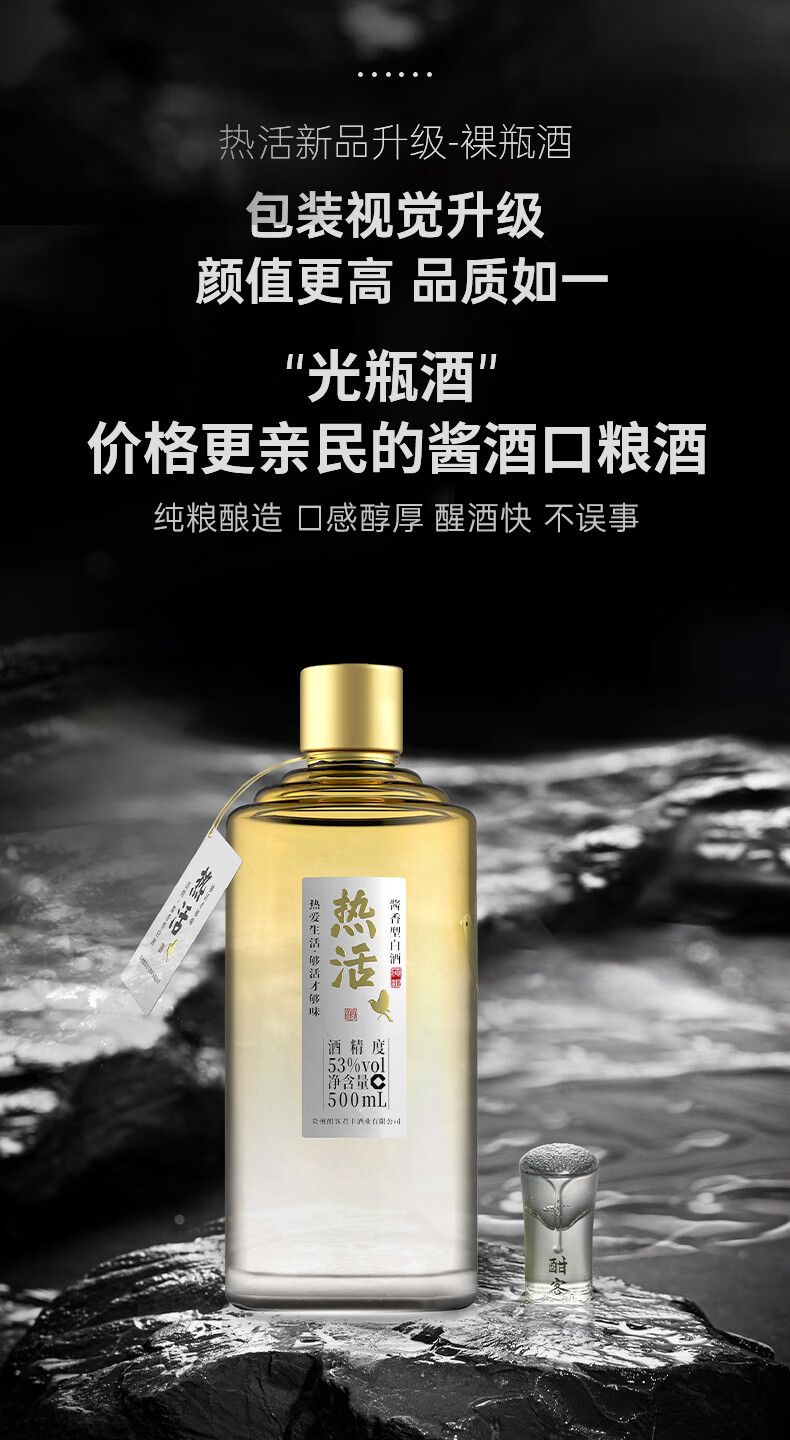 酣客 热活 酱香型白酒口粮酒 贵州大曲粮食酒白酒礼盒 中秋礼品 53度 500mL 6瓶 整箱装【试饮每账号限一单】
