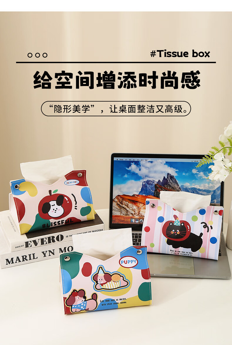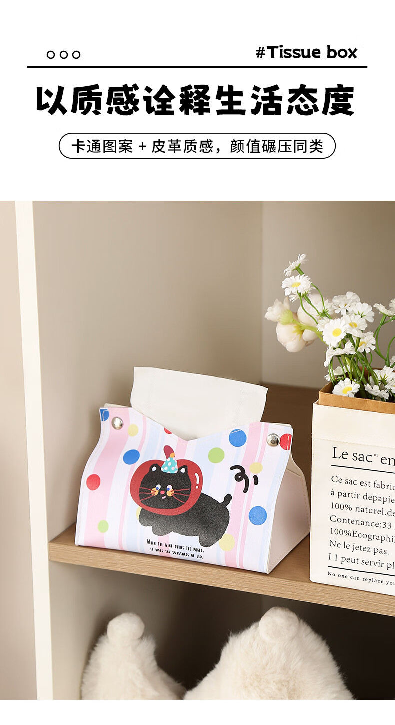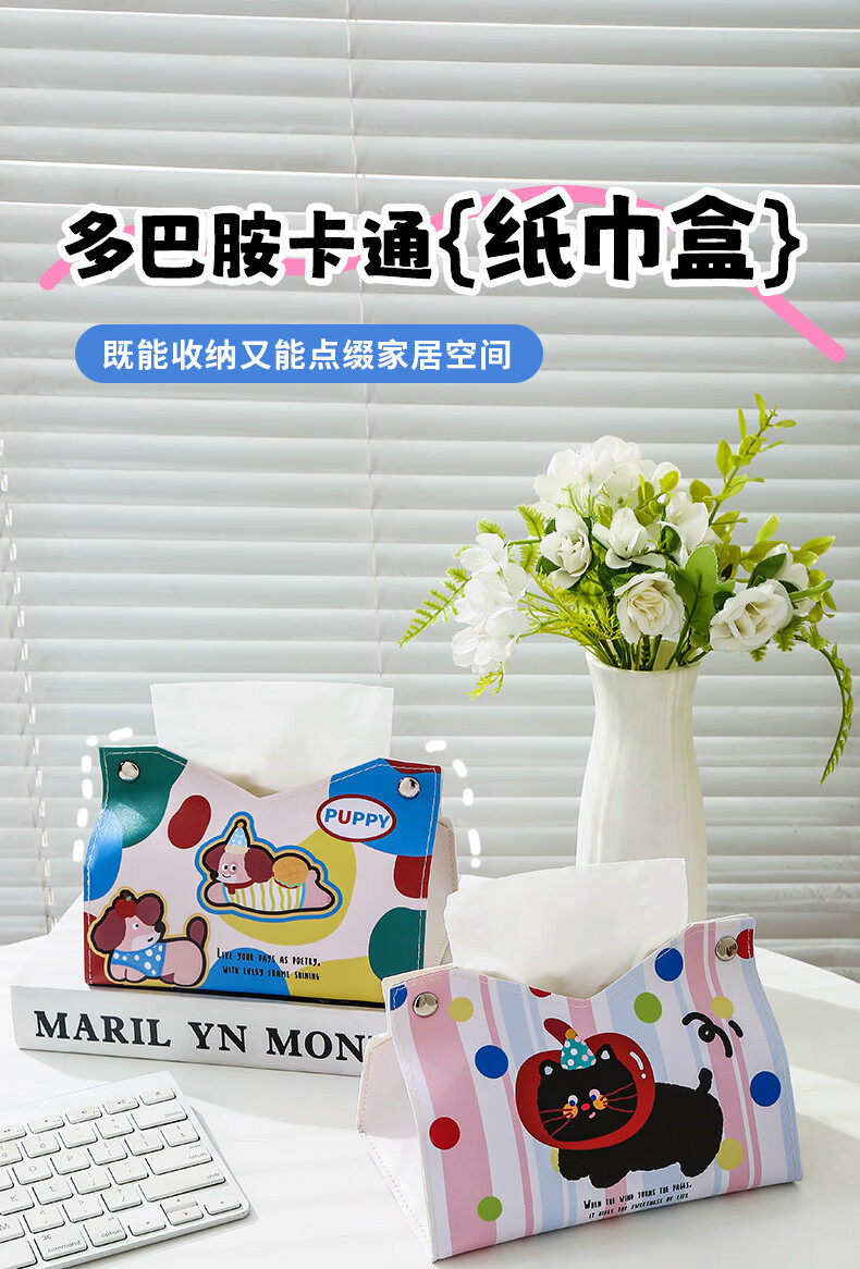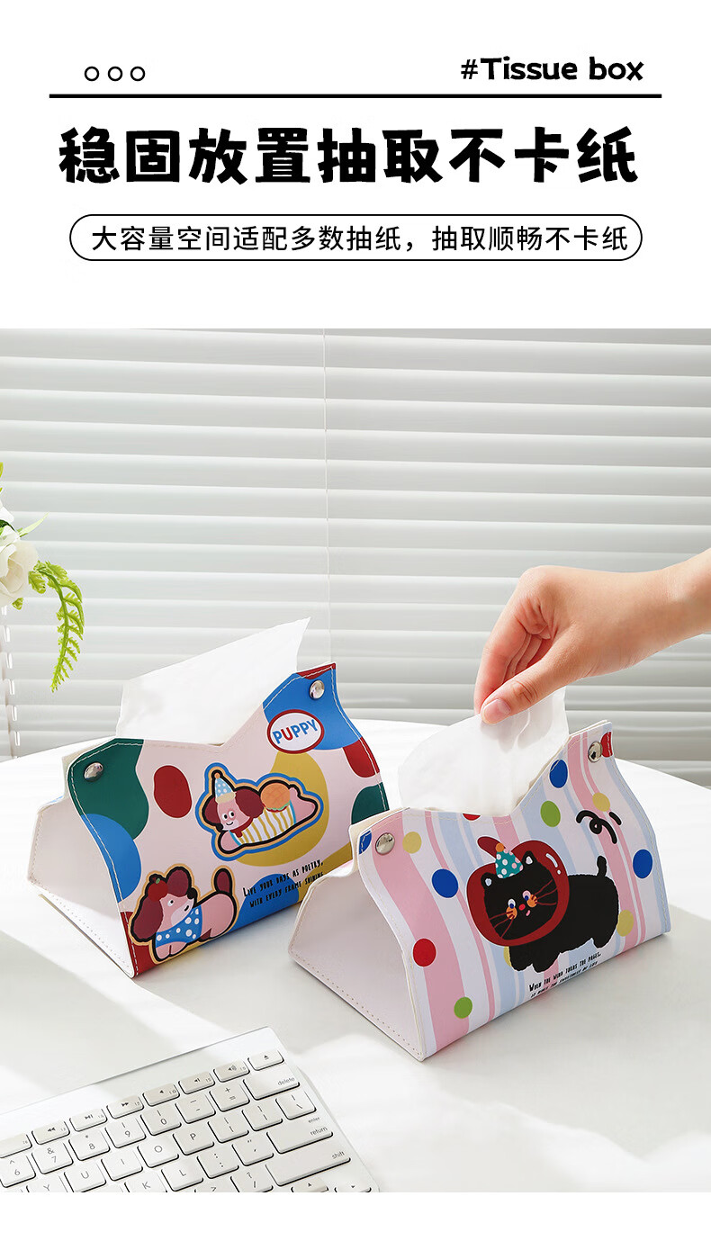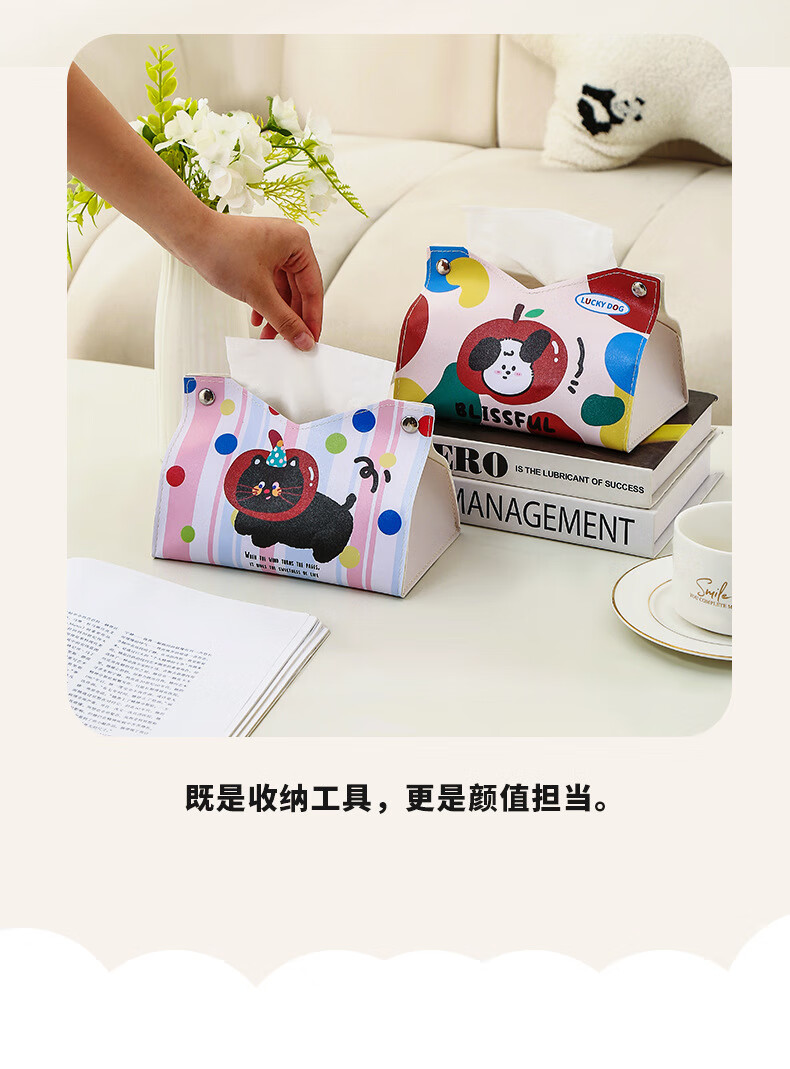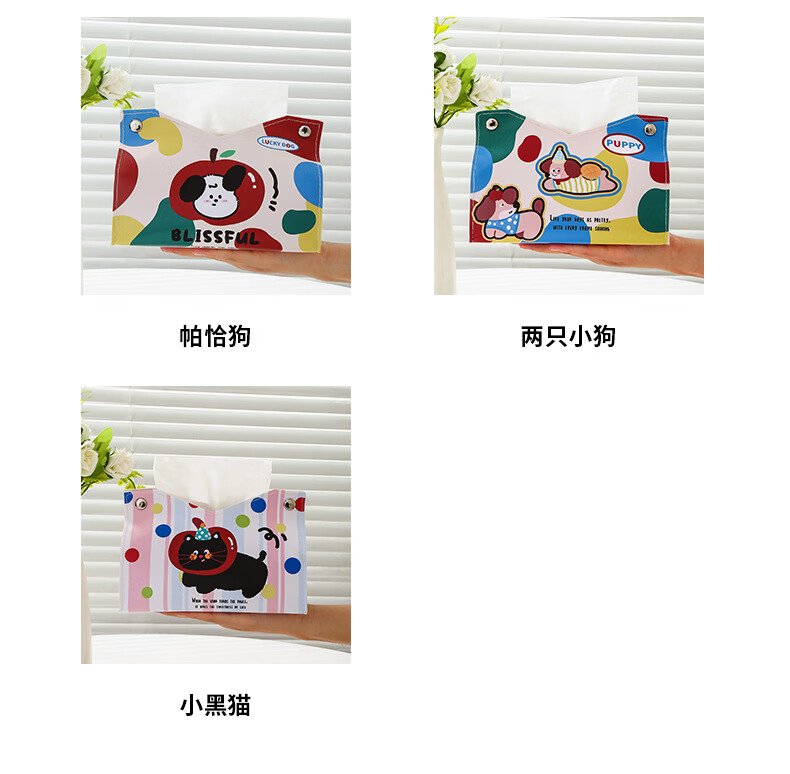 SND联诚2025新款可爱卡通纸巾盒家用客厅卧室皮革抽纸盒多功能收 两只小狗