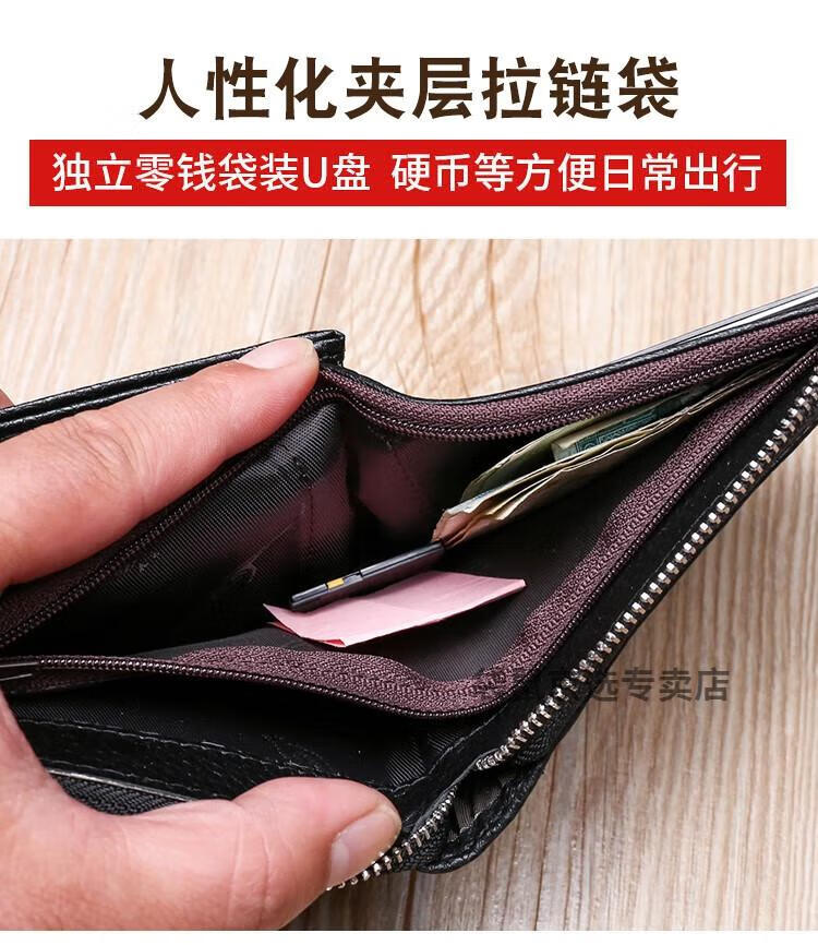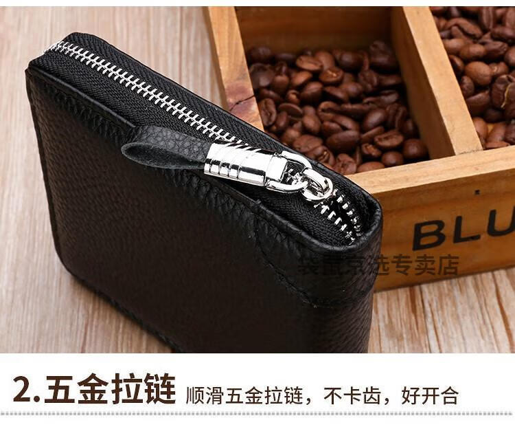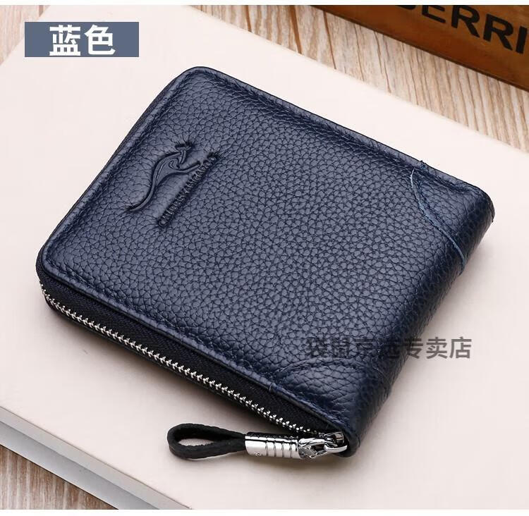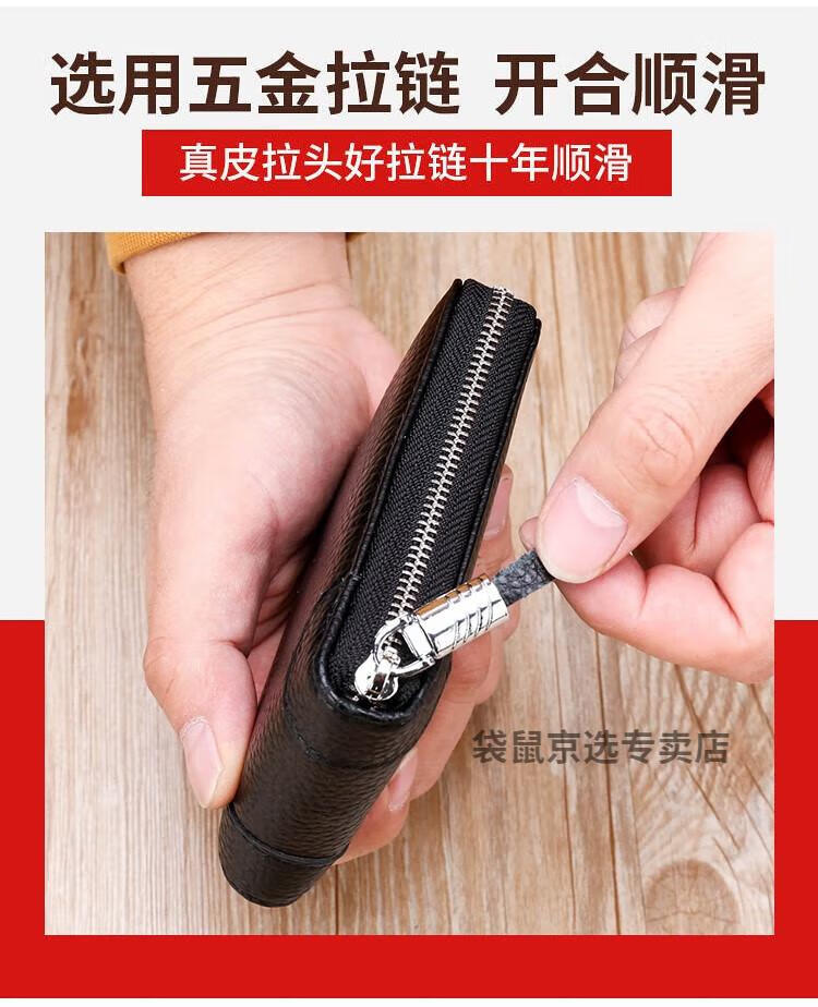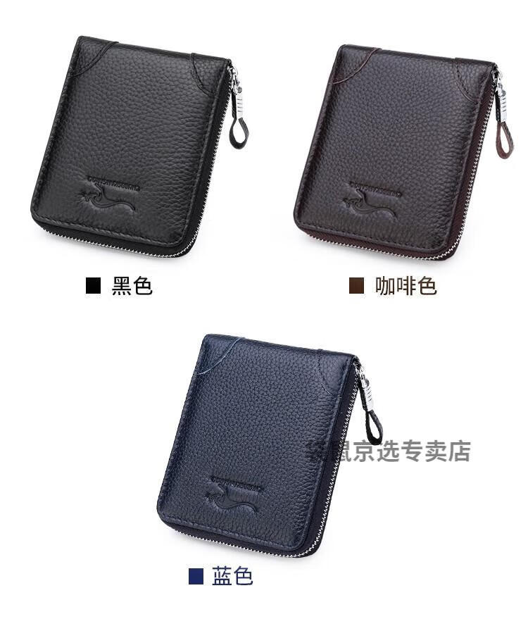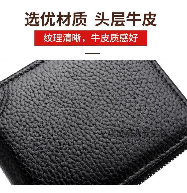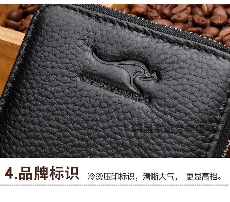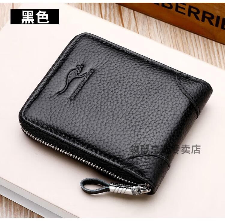 袋鼠轻奢品牌真牛皮钱包男士真皮防盗刷拉链卡包头层软牛皮男式短款钱 黑色