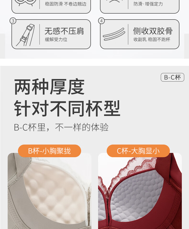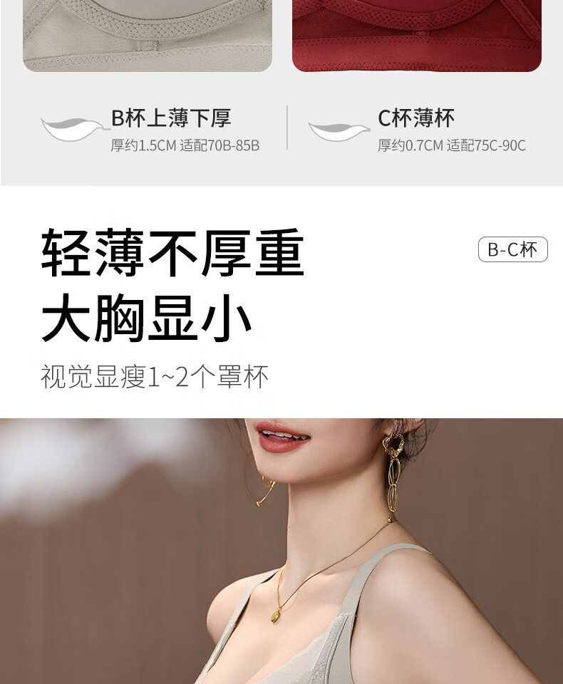 都市丽人小胸显大聚拢上托文胸女士软支撑无痕内衣薄款防下垂胸 粉底肤+香槟白 M 【建议体重95-110斤】