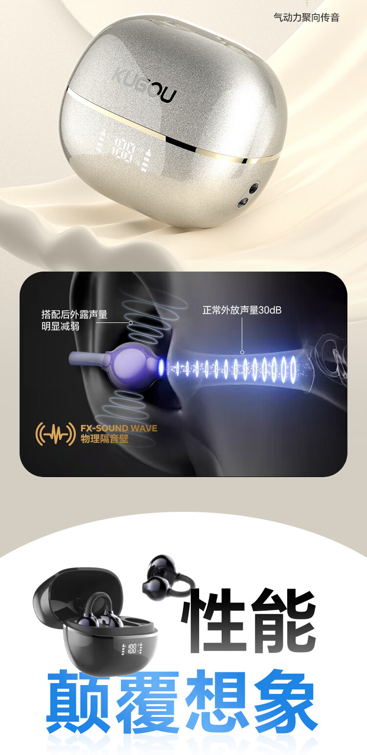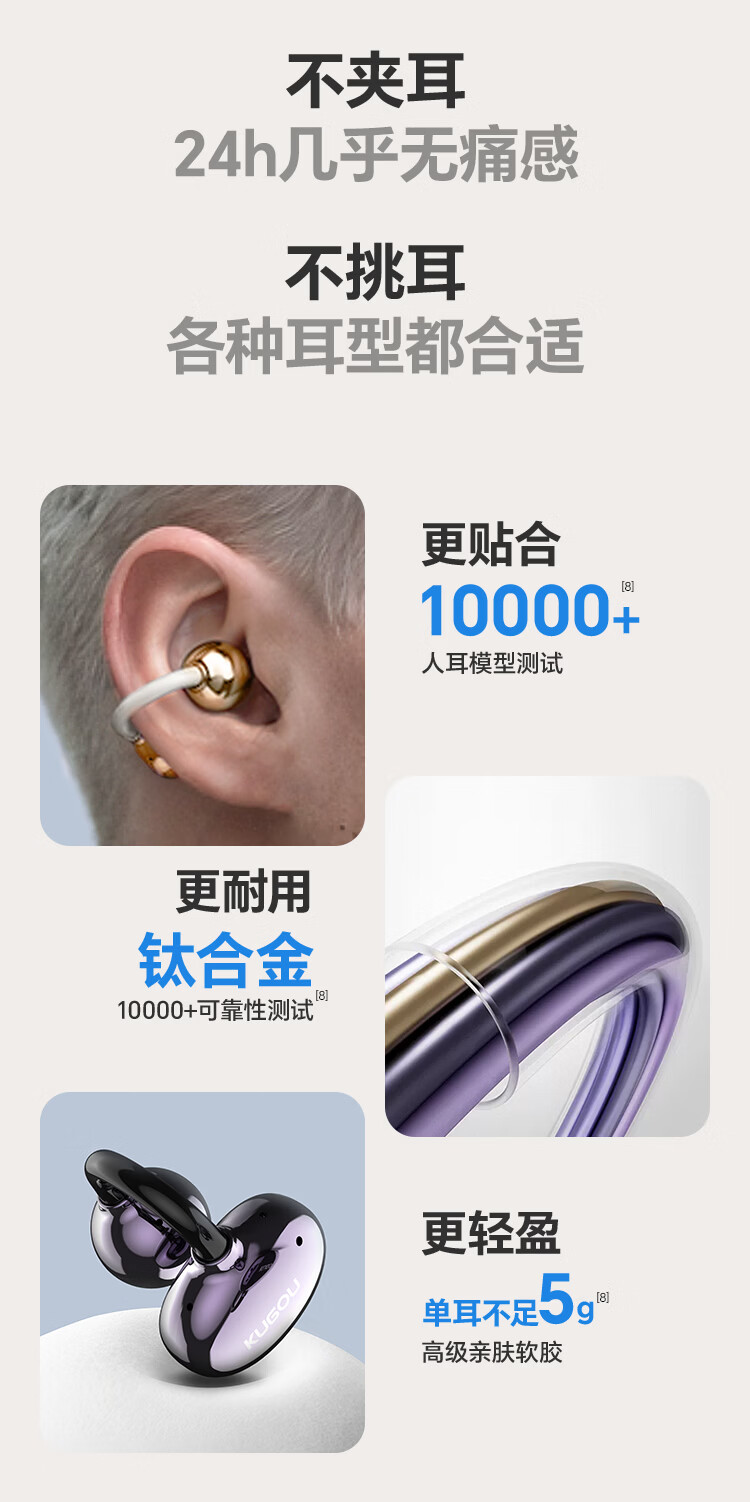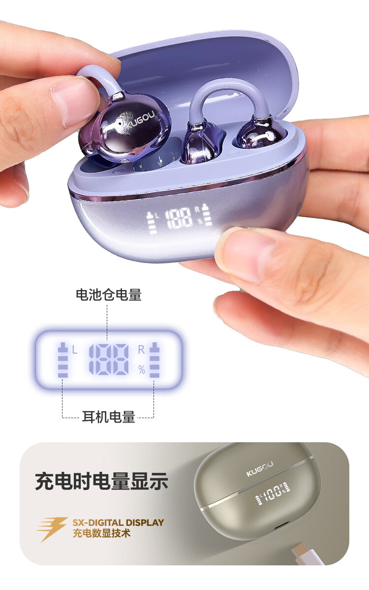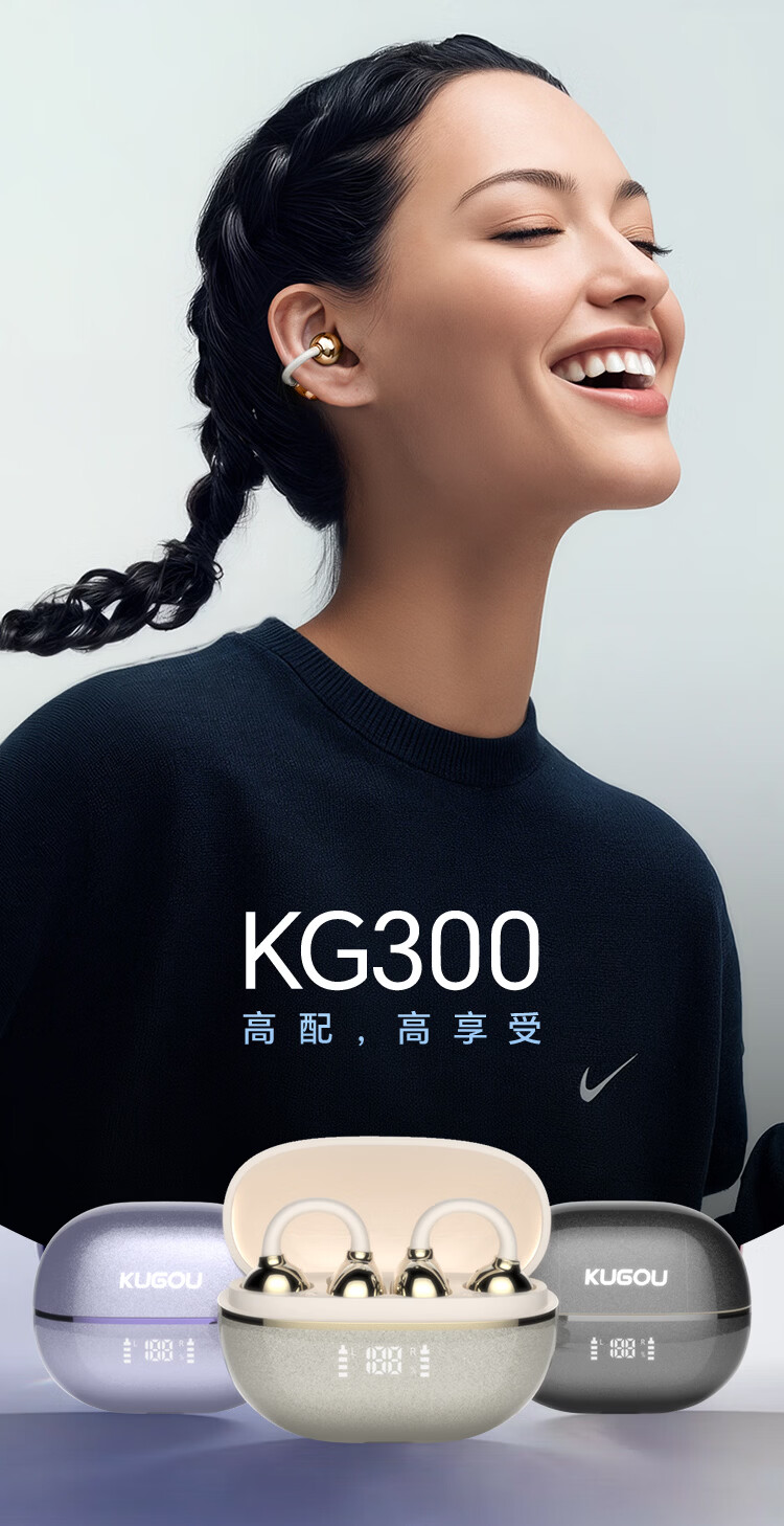 酷狗【音乐金榜】6.0蓝牙耳机耳夹式骨传导概念无线不入耳运动跑步降噪续航开放适用于苹果华为KG300 香槟金丨蓝牙6.0旗舰丨超长续航丨磁力数显