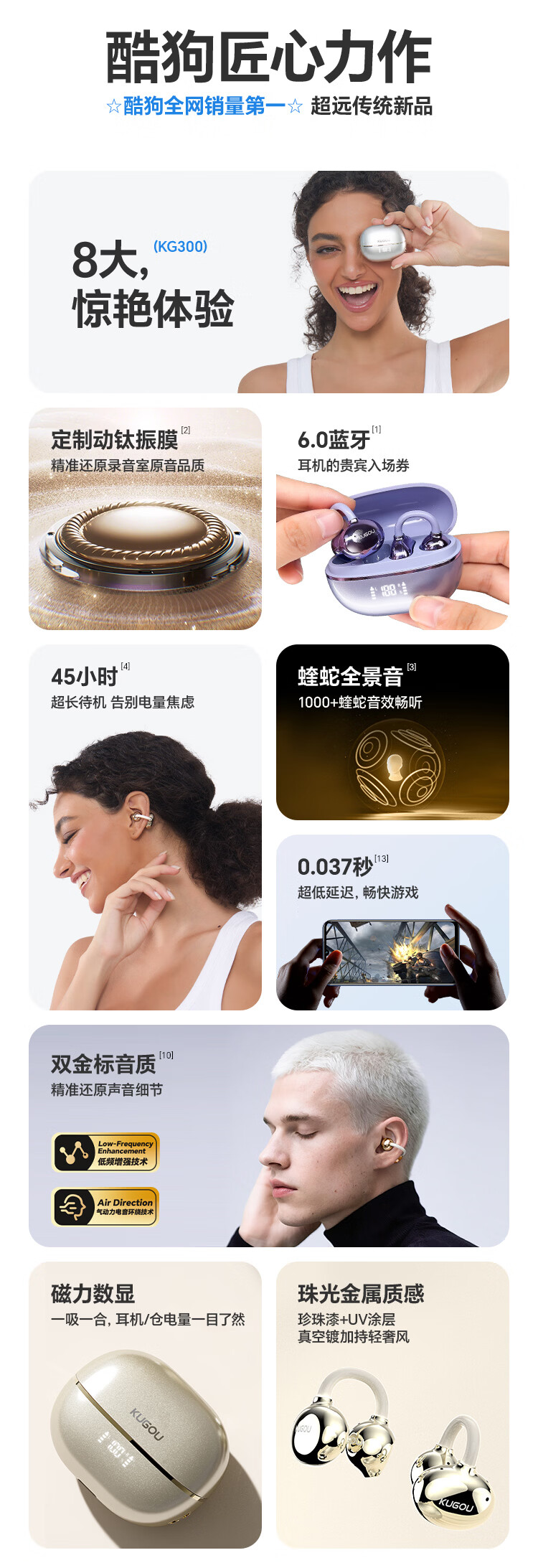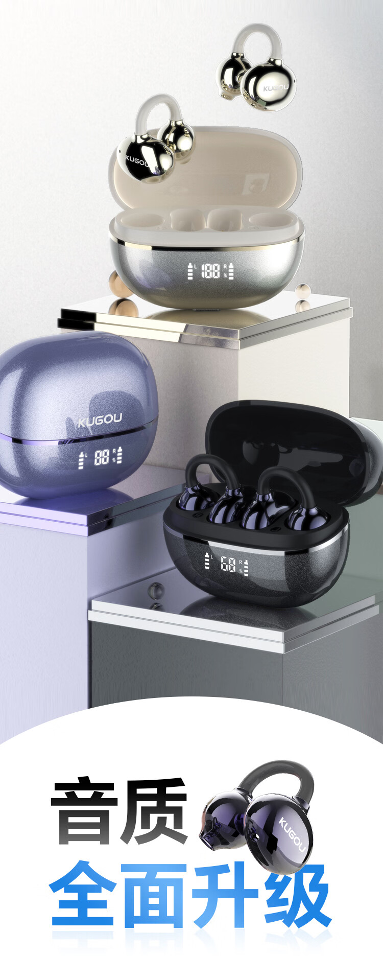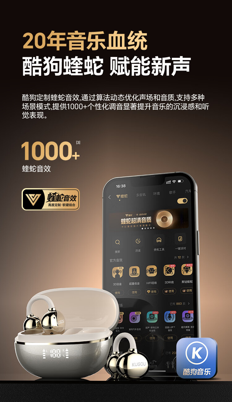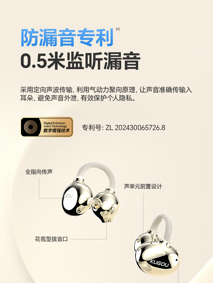 酷狗【音乐金榜】6.0蓝牙耳机耳夹式骨传导概念无线不入耳运动跑步降噪续航开放适用于苹果华为KG300 香槟金丨蓝牙6.0旗舰丨超长续航丨磁力数显