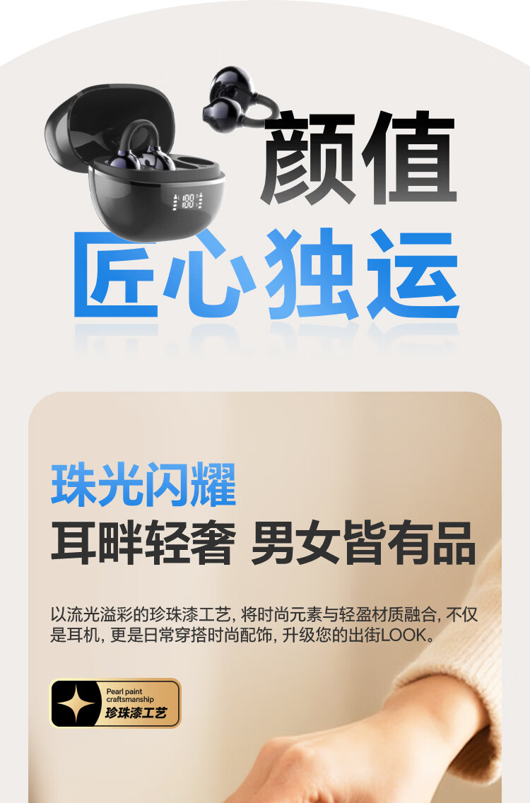 奇联不入耳蓝牙耳机挂耳式2025新款无线听歌音乐高音质游戏低延迟久戴不痛超长续航开放式ENC智能降噪 白色