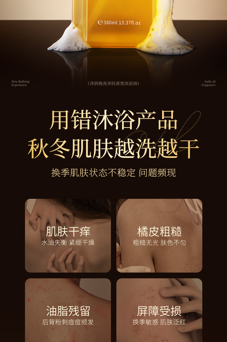 梦希蓝净润焕亮养肤香氛沐浴油成人持久留香体以油养肤清洁净滋润男女士 持久留香 1140ml 3盒 焕亮养肤香氛沐浴油