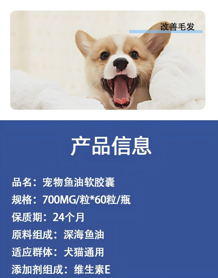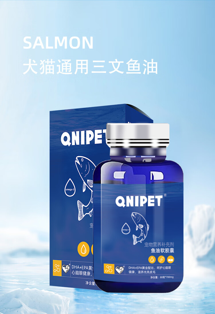 亲昵宠物鱼油软胶囊狗狗猫咪美毛亮毛深海鱼油 鱼油胶囊 80粒/瓶