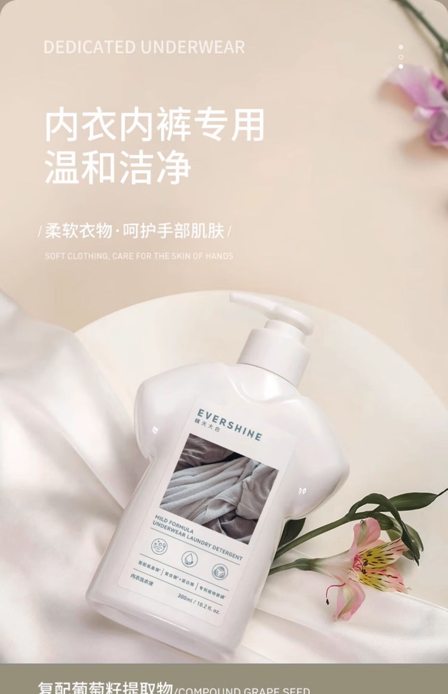 晴天大白内衣内裤洗衣液 抗菌抑菌除螨去血渍清洗液女士学生手洗内裤专用 【金雀花】半岛弥音-300ml