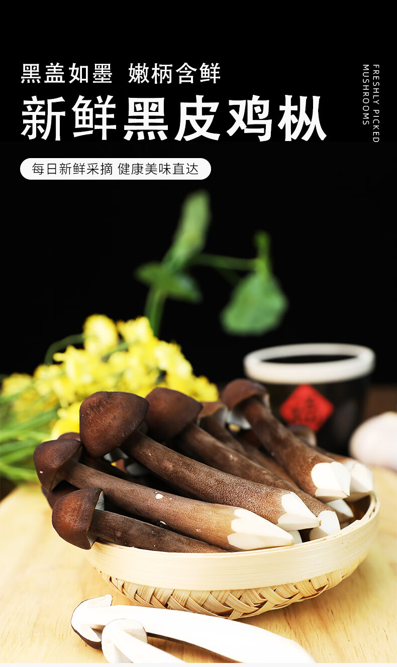新鲜黑皮鸡枞菌【顺丰包邮】云南菌菇 鲜香脆嫩 炖汤炒菜火锅食材 500g(精选)