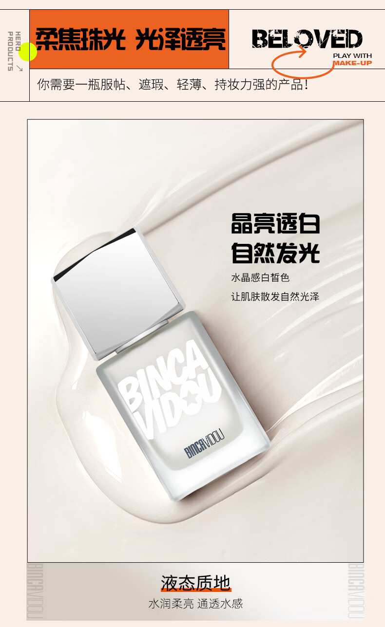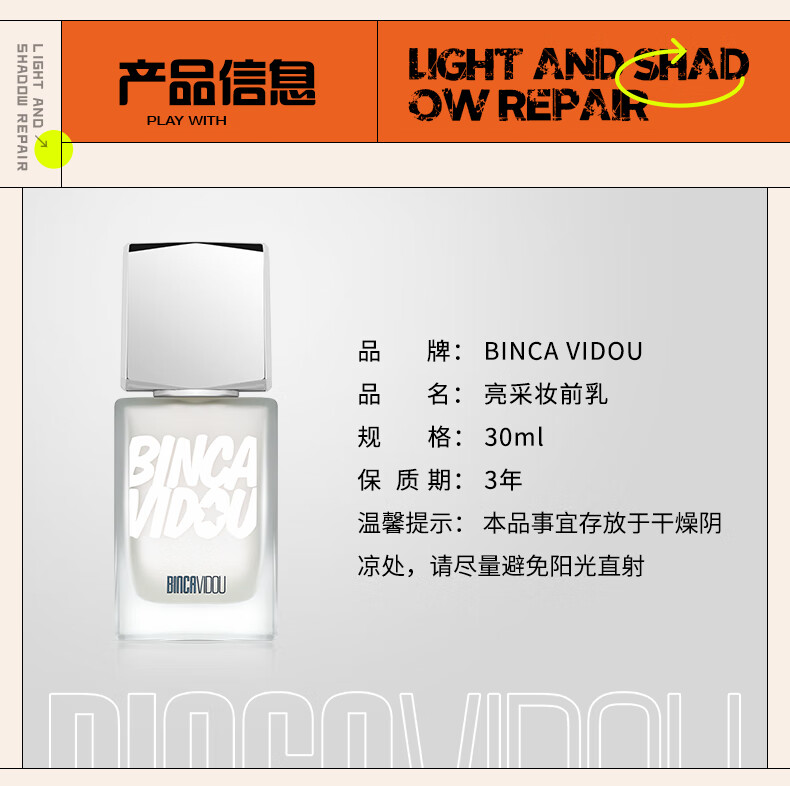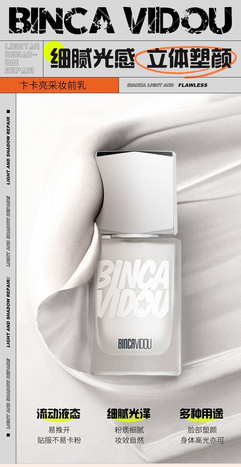 卞卡(BINCA VIDOU) 亮采妆前乳光影修颜液 提亮肤色水光妆感高光修容液 新年礼物 NC01-白水光