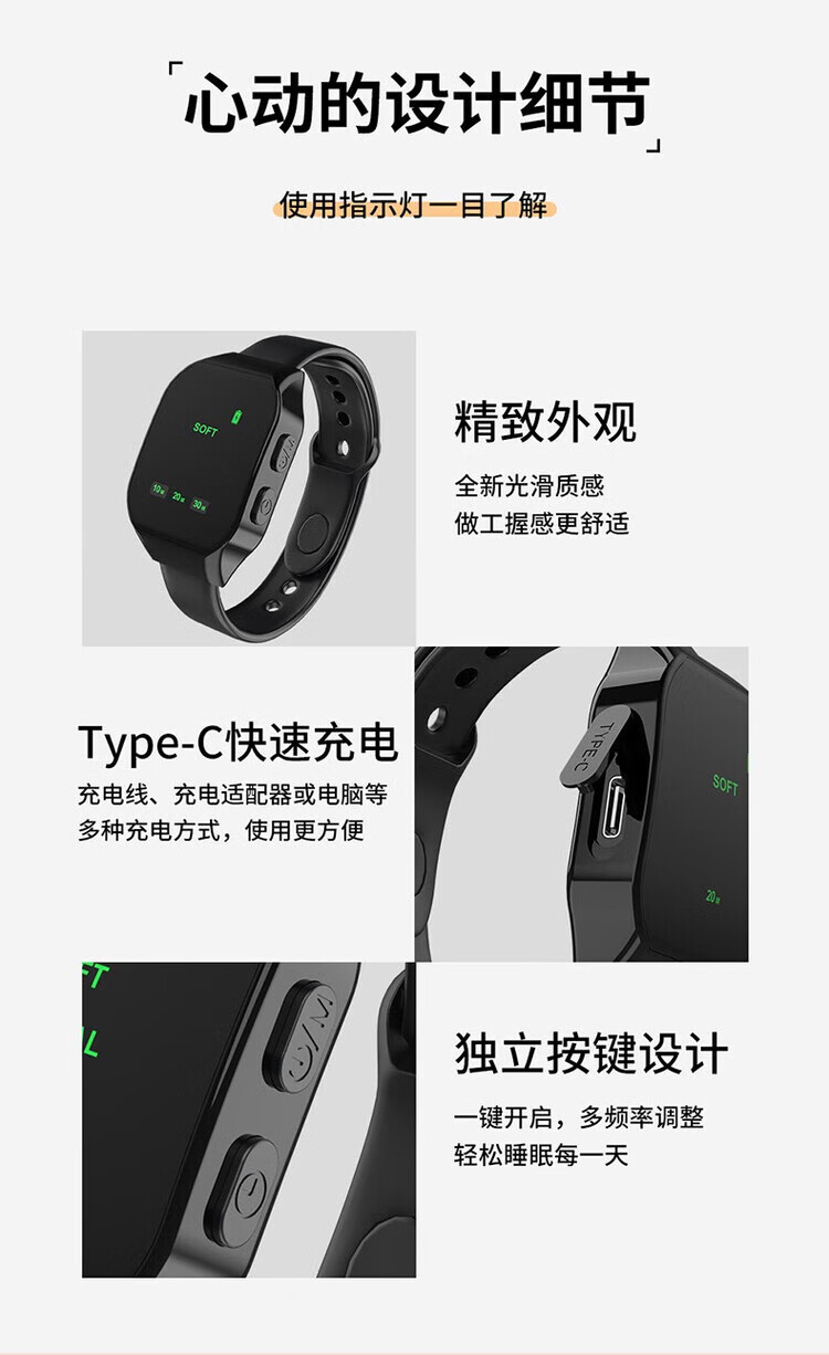 BXA德国智能睡眠仪手环严重失眠深度按摩器改善安眠睡觉焦虑抑郁神器 【粉色】缓解焦虑 紧张情绪