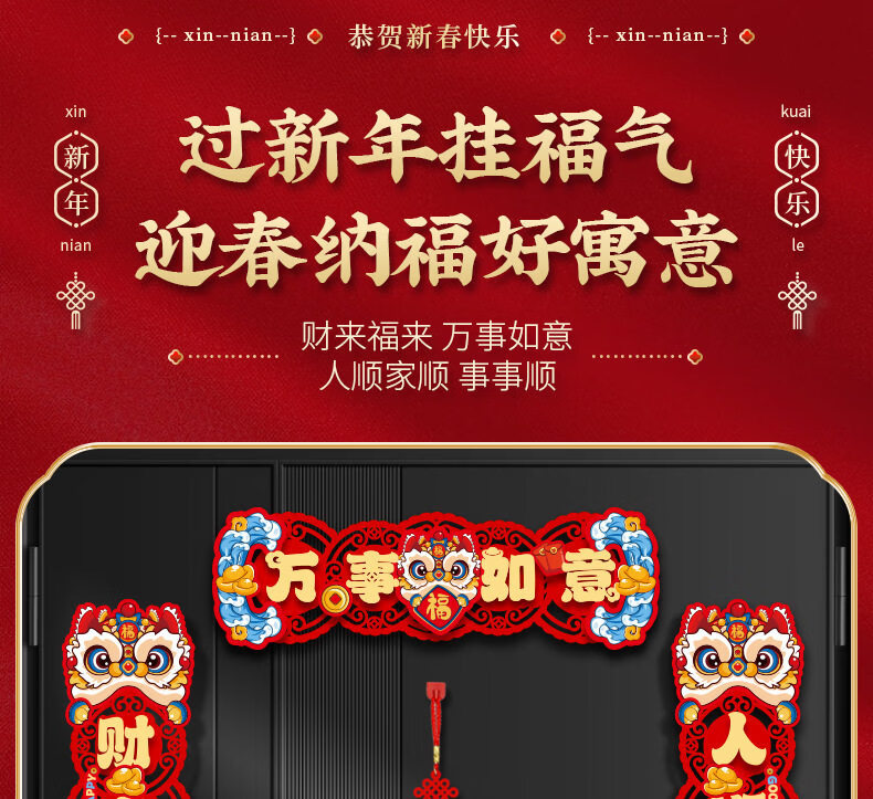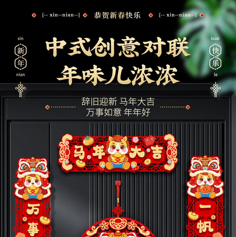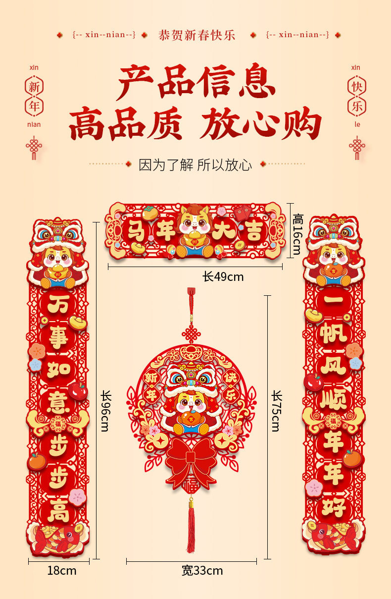辛丛文教文化用品2026马年新年创意设计春节场景布置礼物挂家里公司大门装饰背景墙氛围仪式感 高级植绒【马年大吉对饰+挂件】*1包