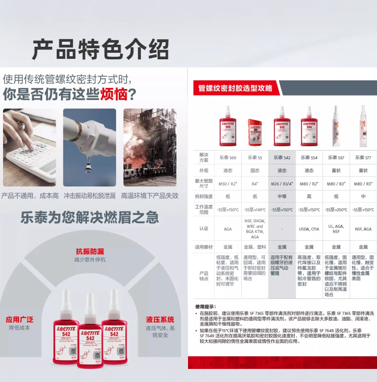 乐泰542/569/565胶水管螺纹密封胶545 577 586 567生料带572魔绳55 LOCTITE 565-50ml
