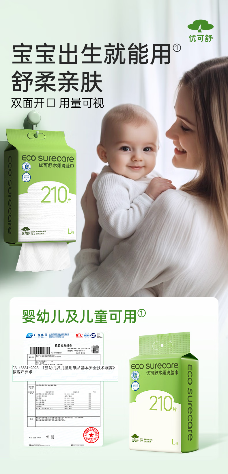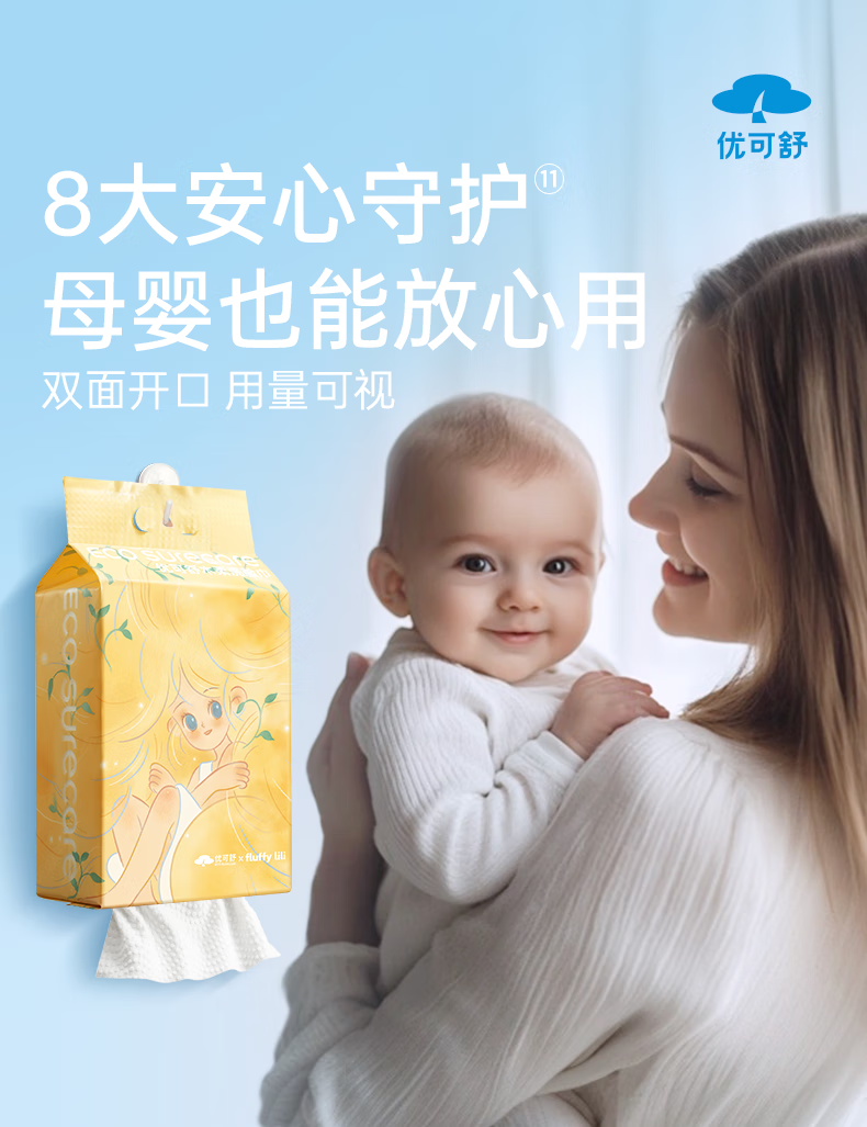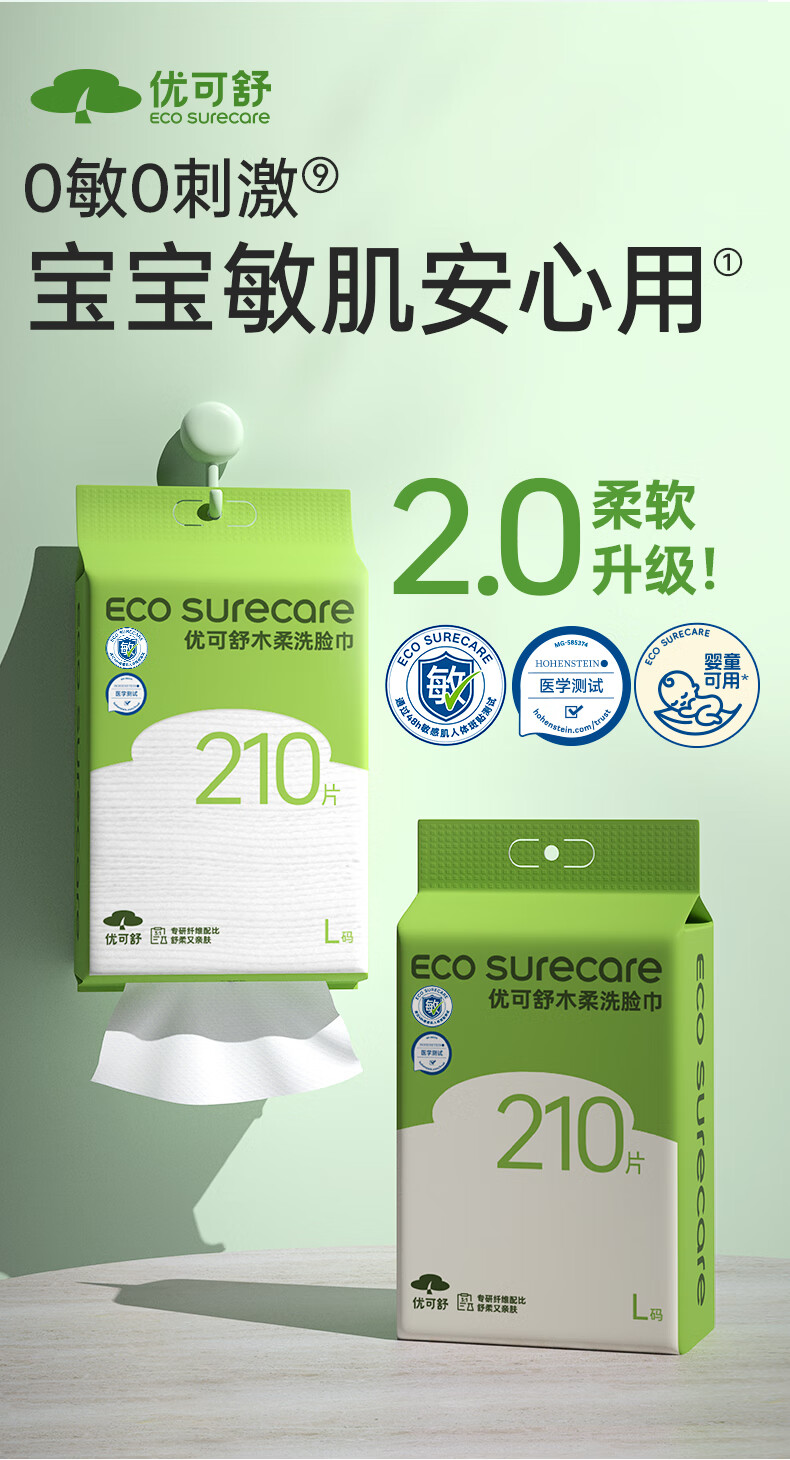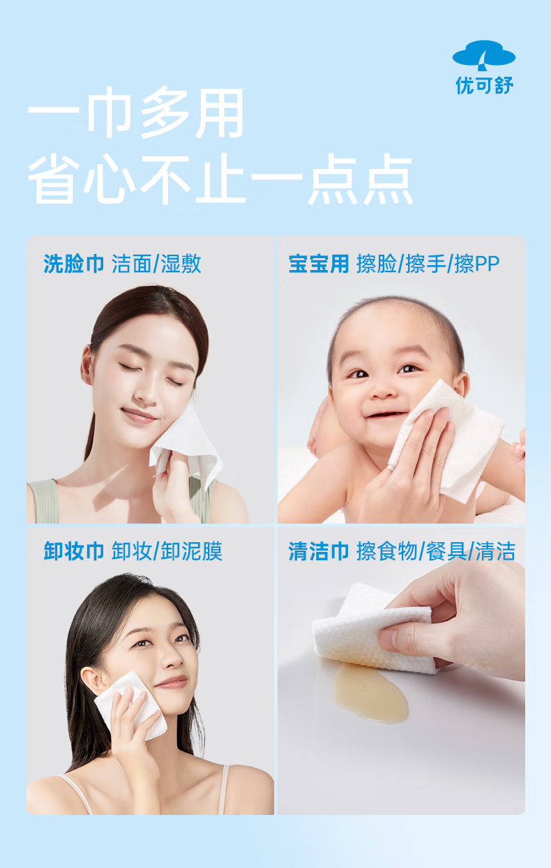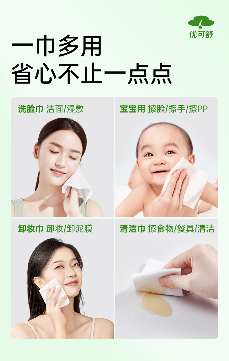 优可舒悬挂洗脸巾一次性洗脸巾婴儿专用柔巾抽取式洁面巾干湿两用擦脸巾 【基础款x悬挂】150抽+送挂钩