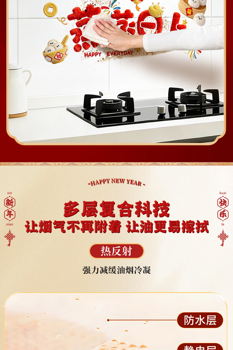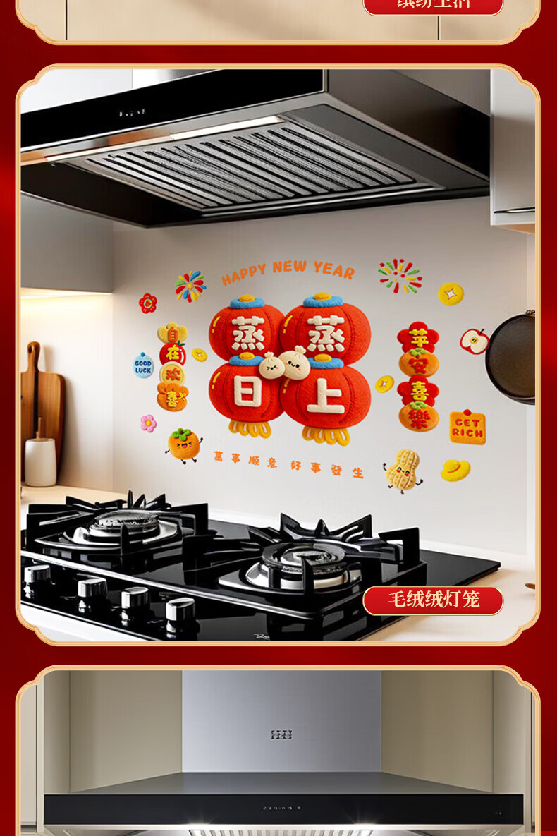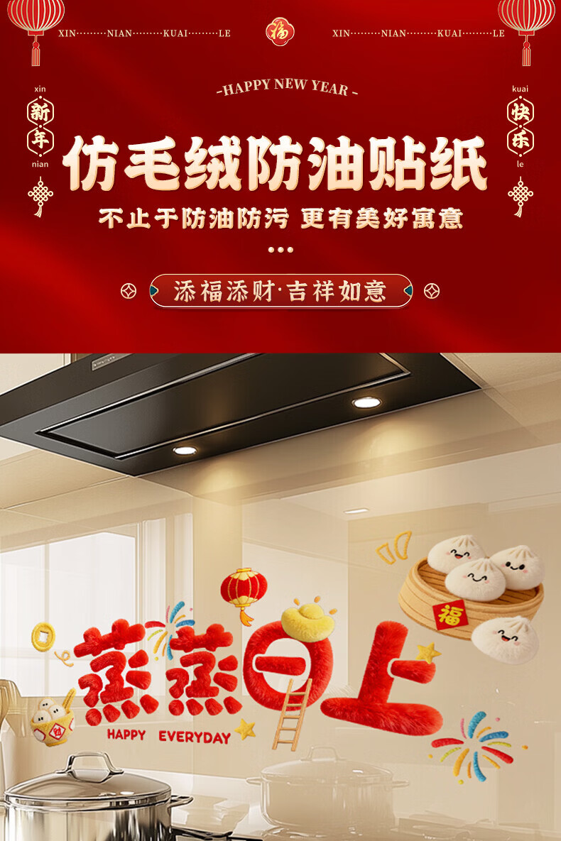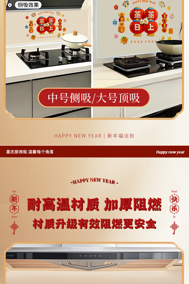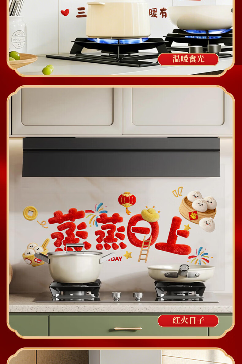 玖岩厨房防油贴纸2026新款防水耐高温自粘静电贴画灶台油烟机墙面装饰 红火日子 【90*30cm】