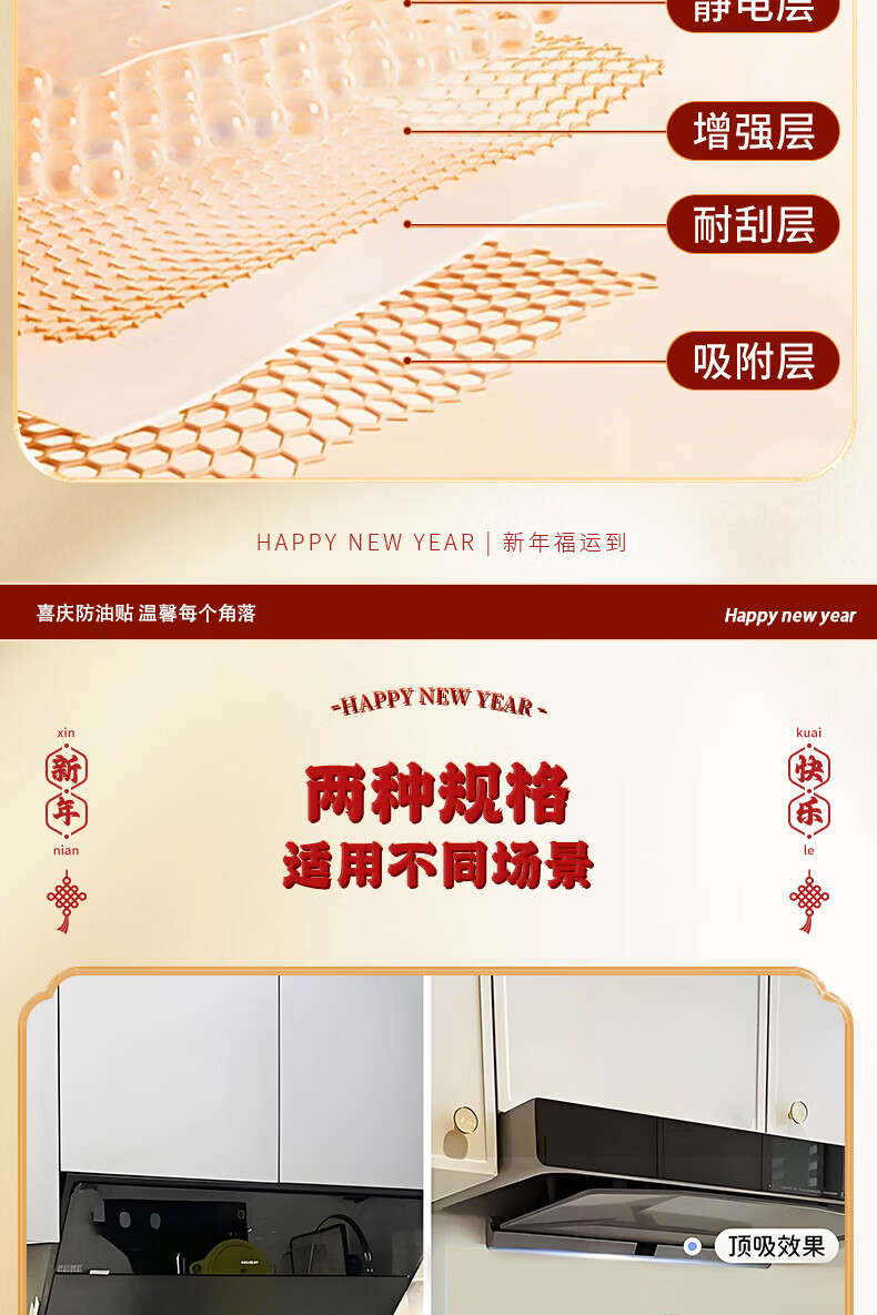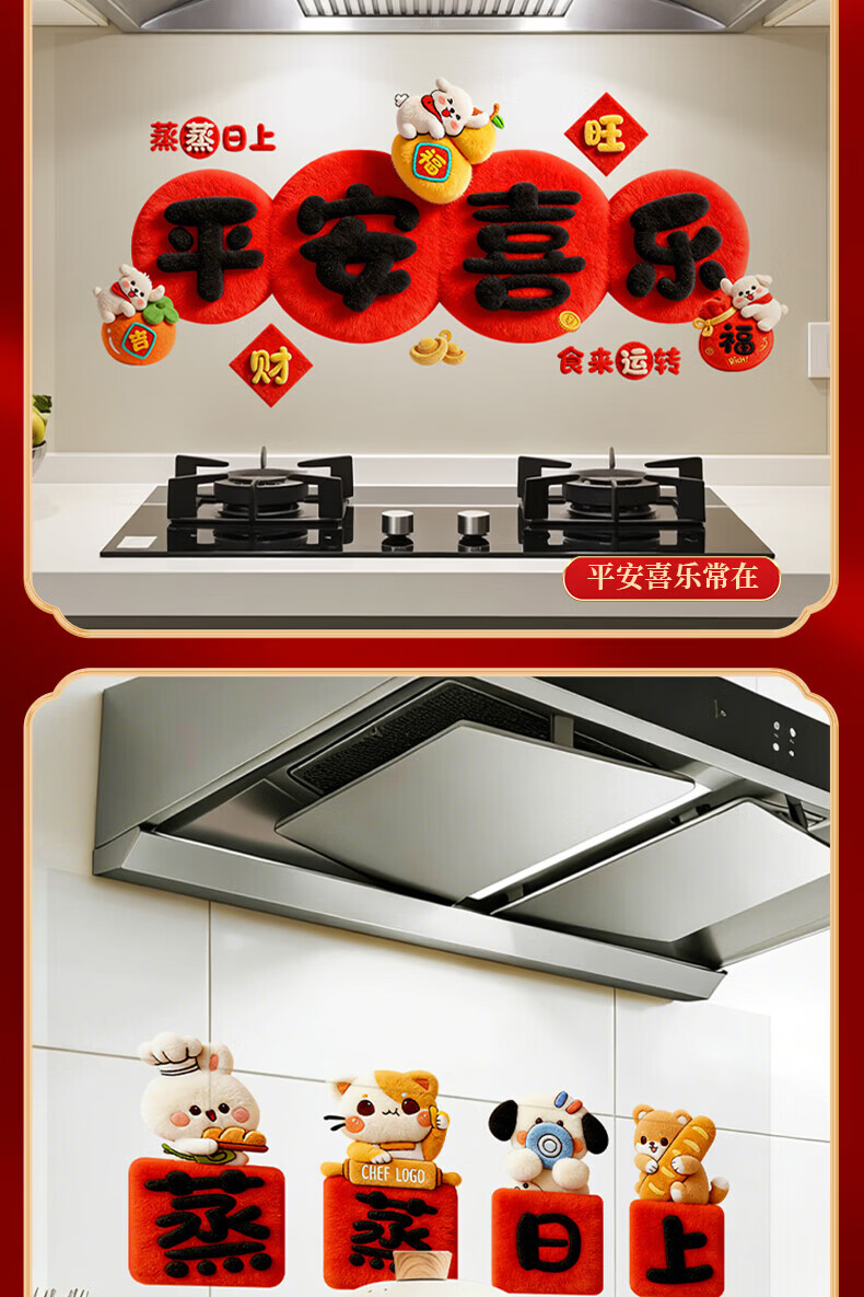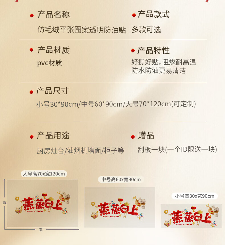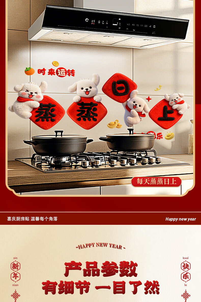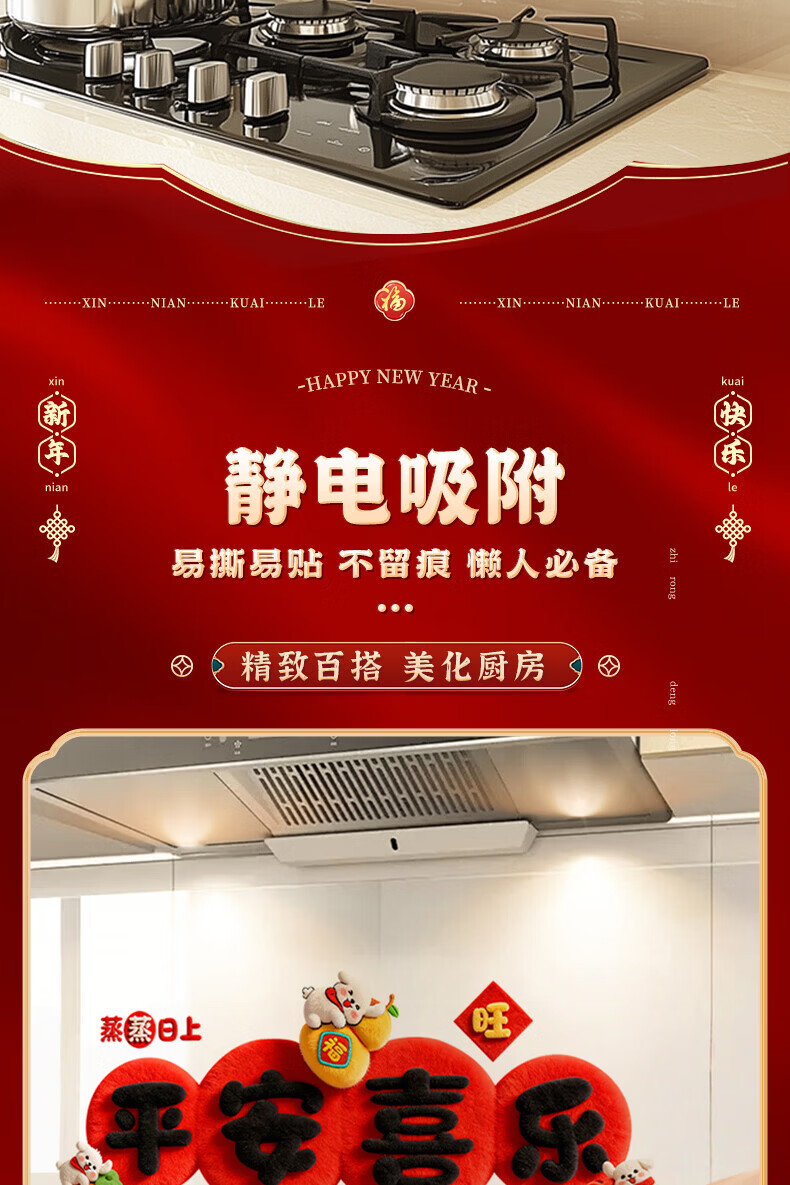 玖岩厨房防油贴纸2026新款防水耐高温自粘静电贴画灶台油烟机墙面装饰 红火日子 【90*30cm】