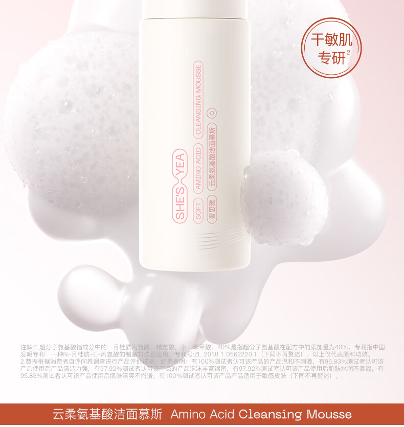 奢思雅(SHESYEA)云柔氨基酸洗面奶深层清洁 温和不紧绷 洁面慕斯泡沫油皮男女 150ml