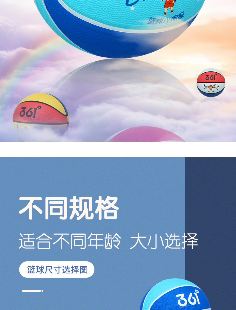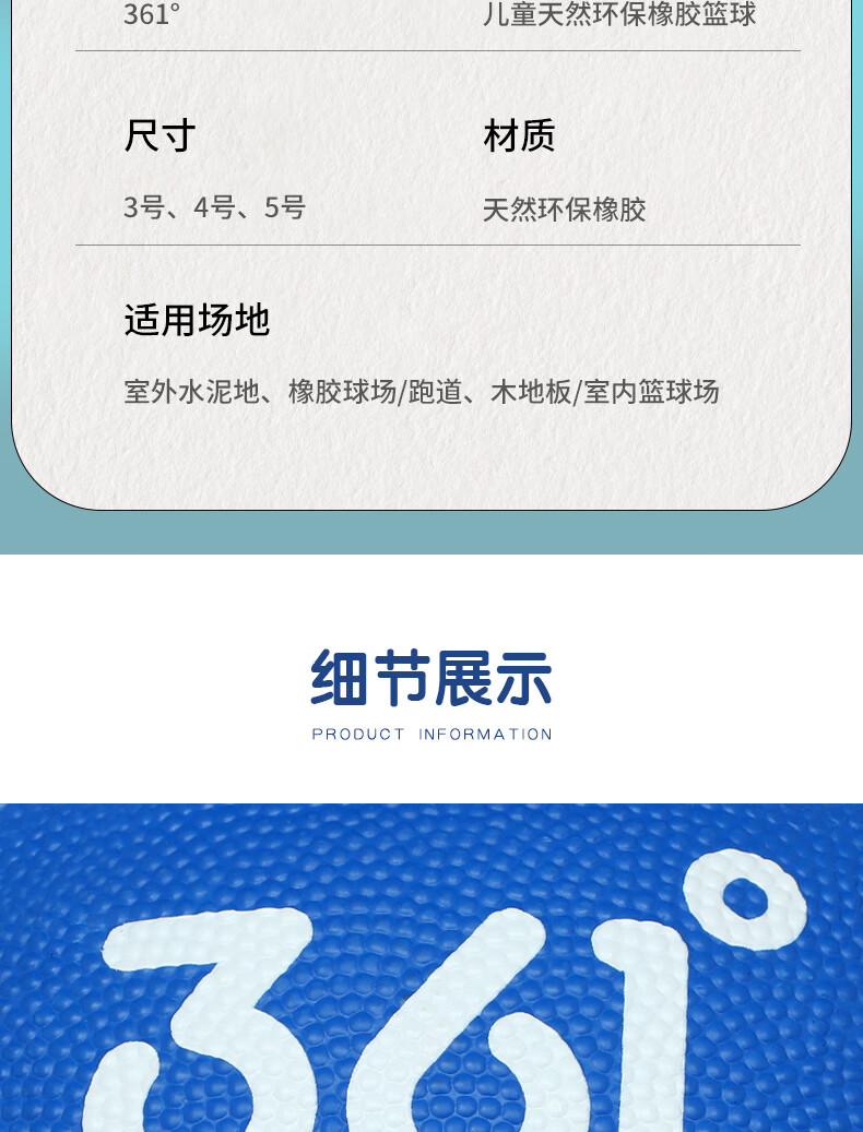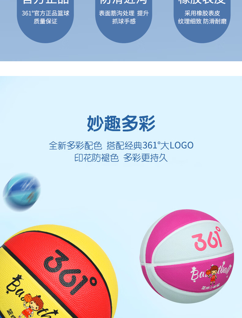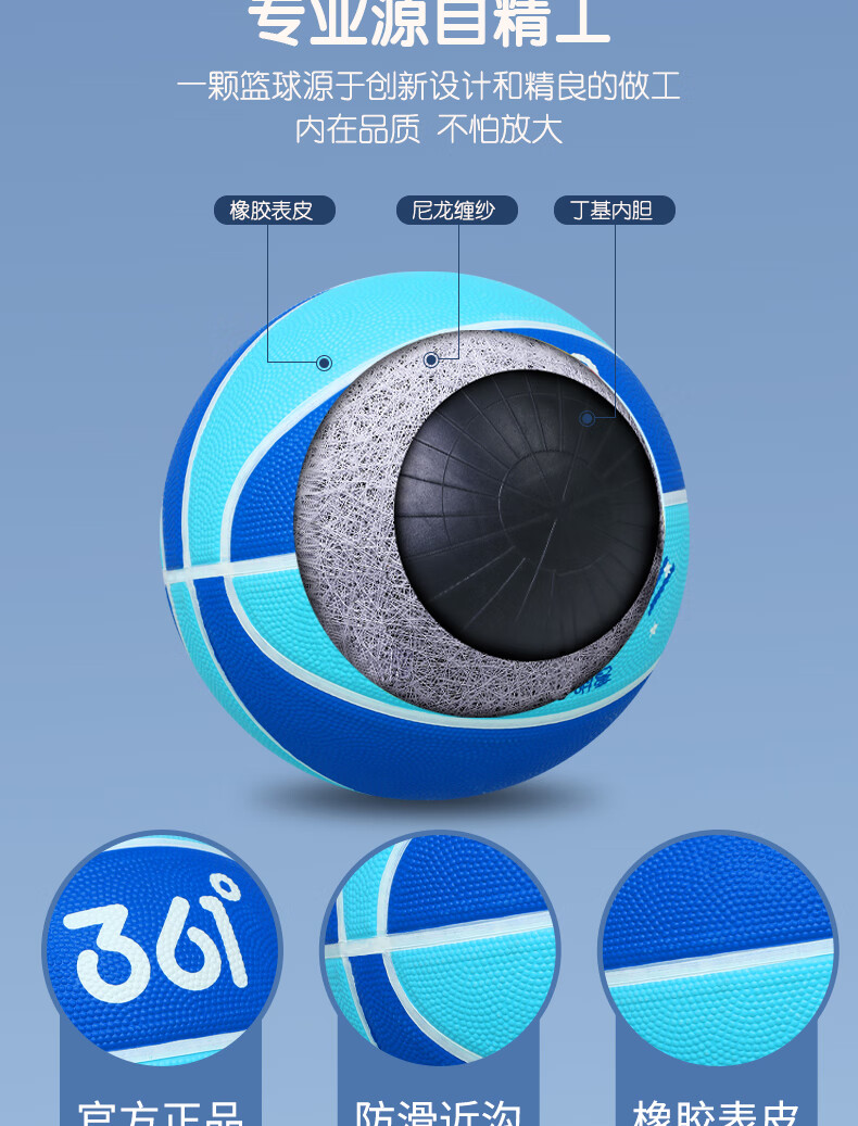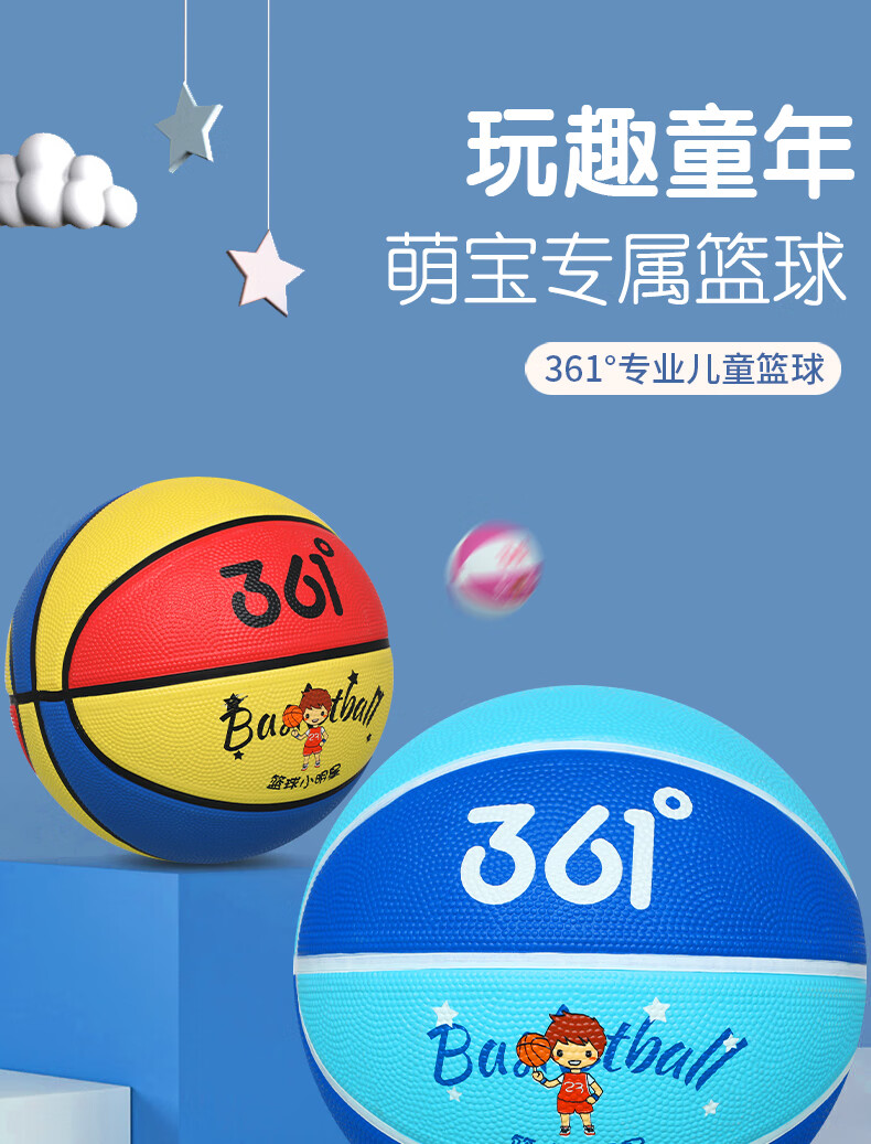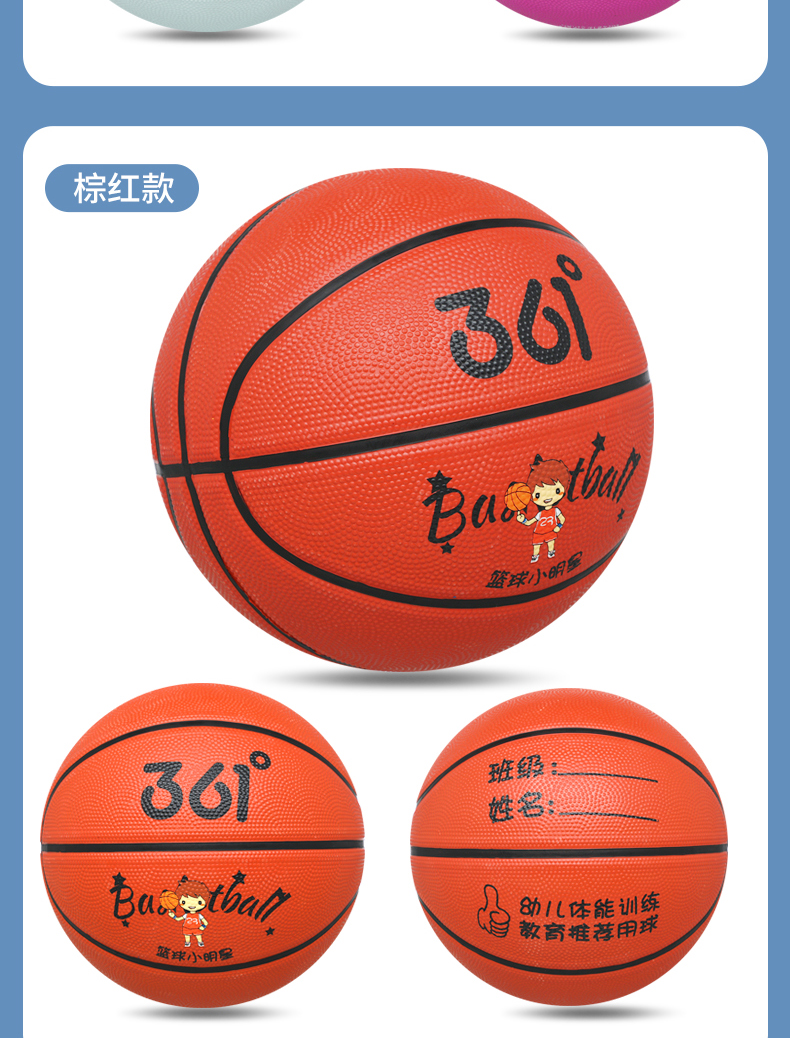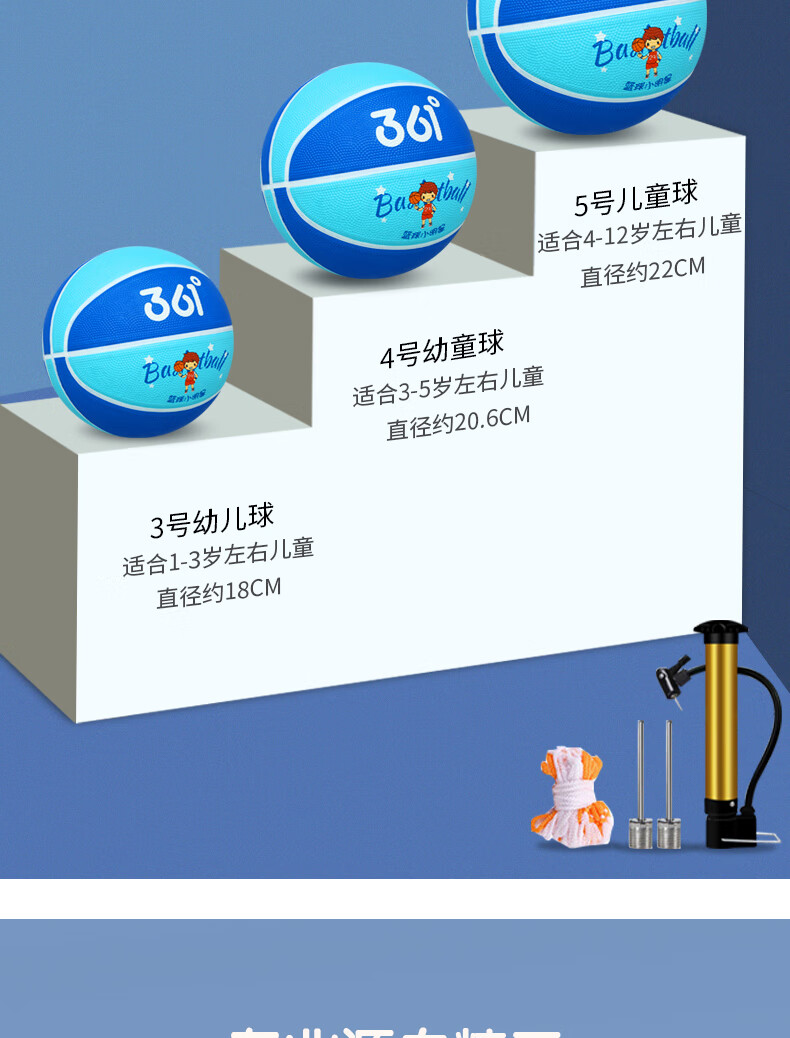 361° 篮球儿童5号训练小孩专用3-4号幼儿园宝宝小学生耐磨蓝皮球 5号-蓝色(4岁以上推荐)