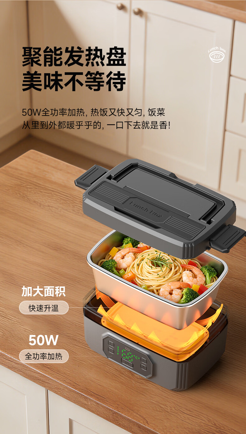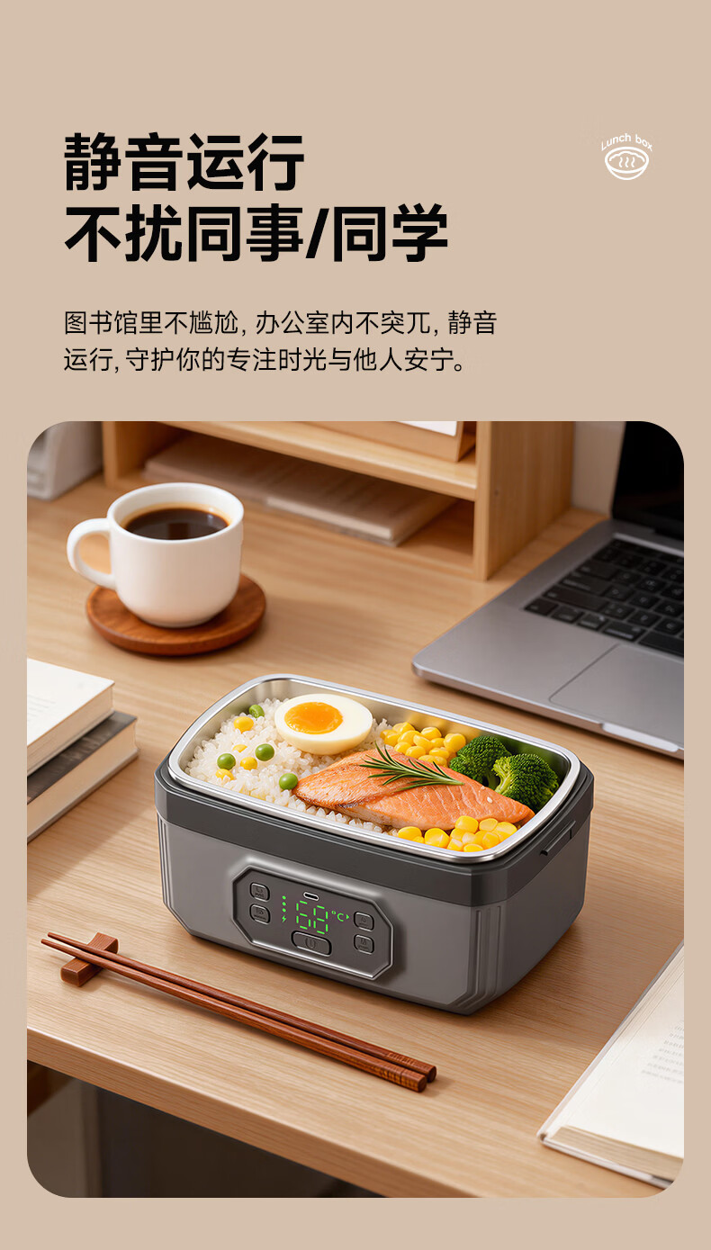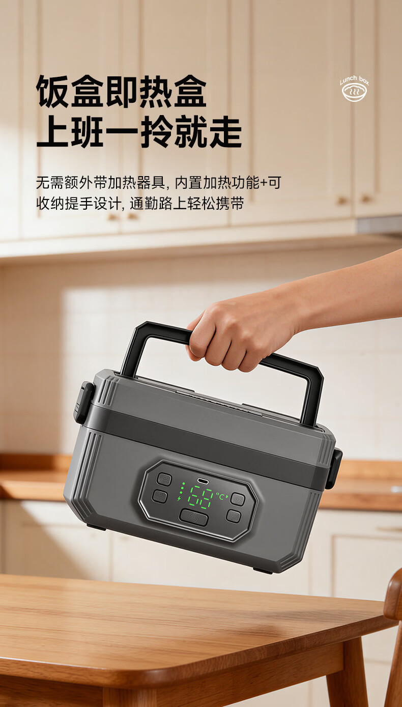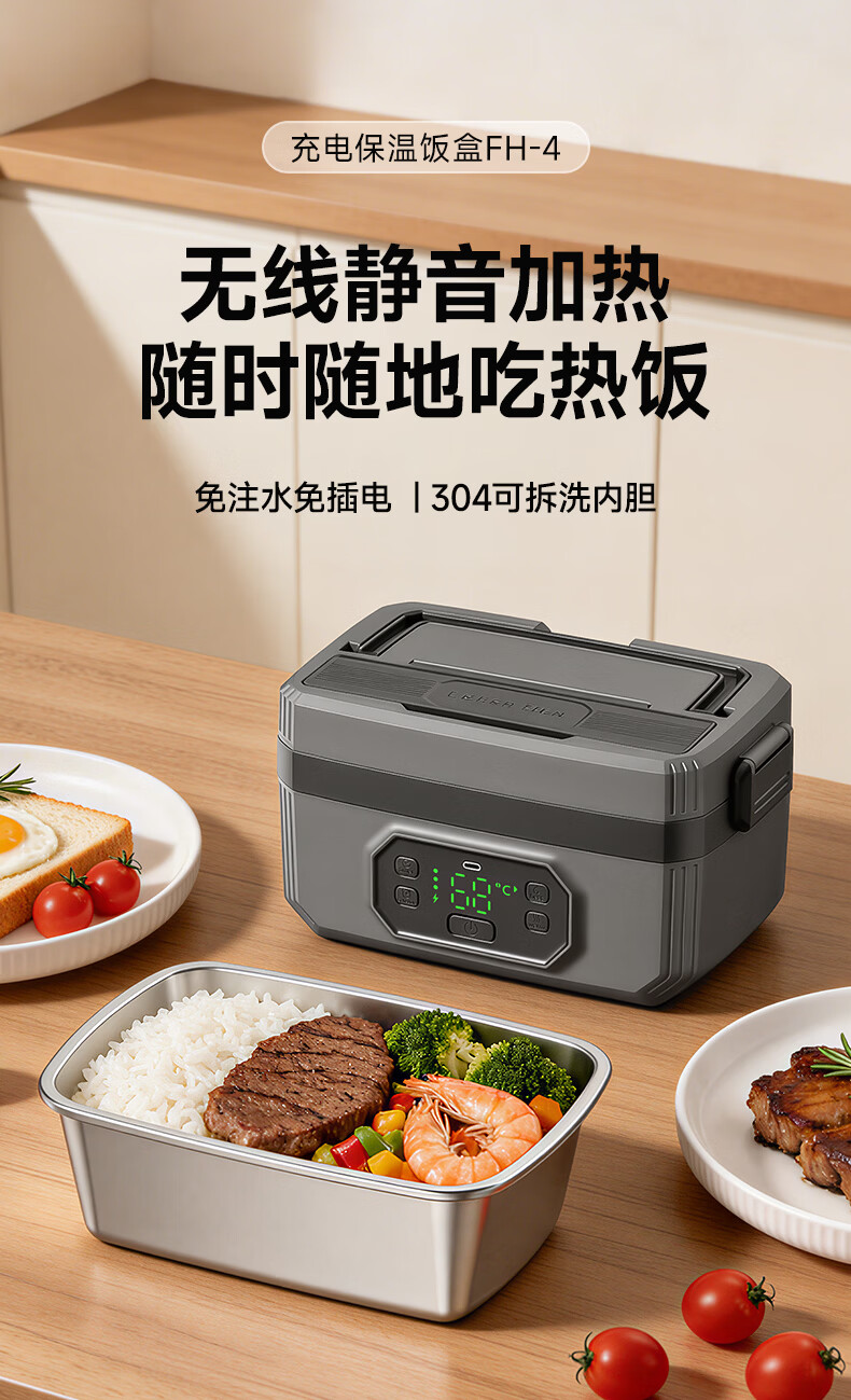 物克无线加热饭盒速热免插电免注水学生上班族电热保温热饭神器野餐充电自热饭盒 1.6L 【24000毫安续航/预约定时/6档保温】