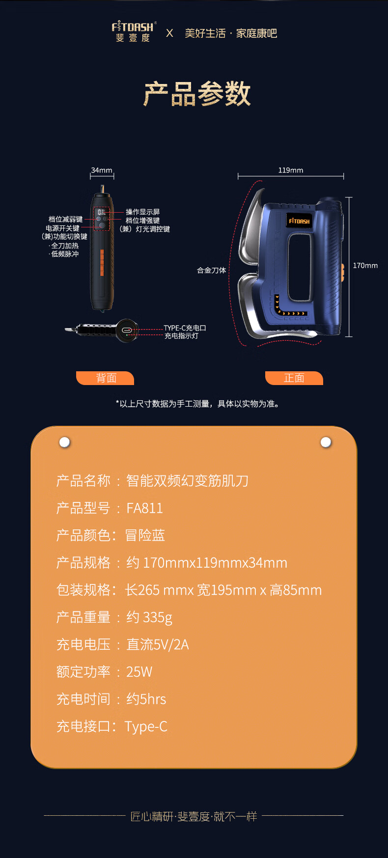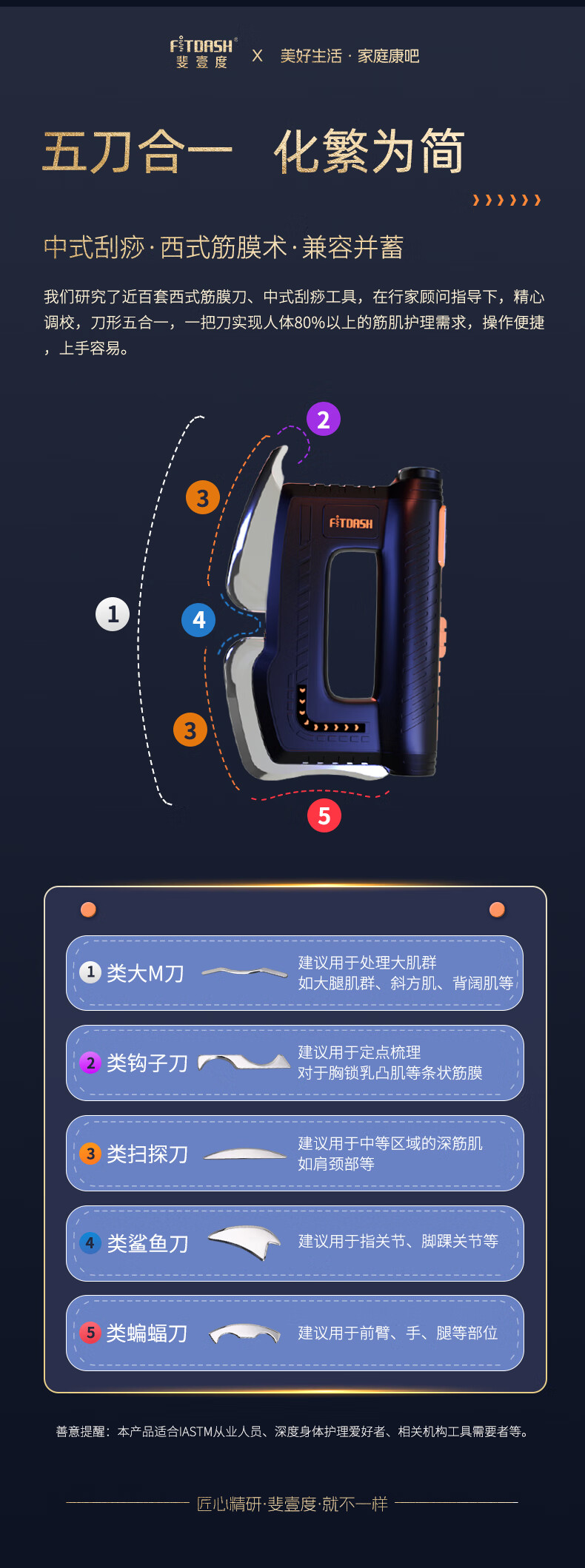 斐壹度电动筋膜刀家用专业级全身经络疏通神器微电流刮痧工具肩胛骨肩颈肌肉放松热敷理疗按摩器 FA811筋膜刀蓝色【放松肌肉疲劳】