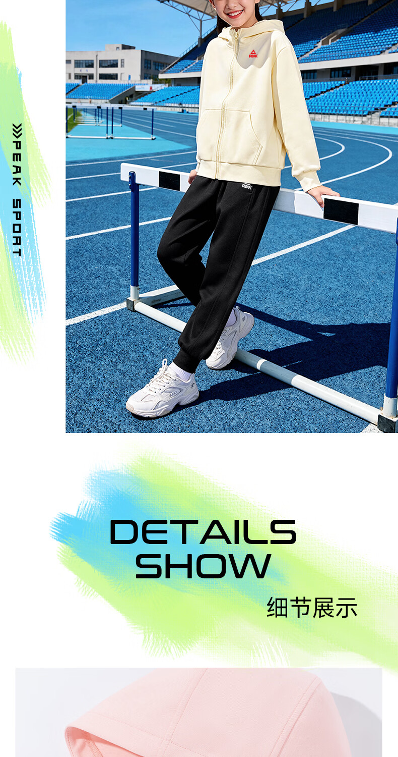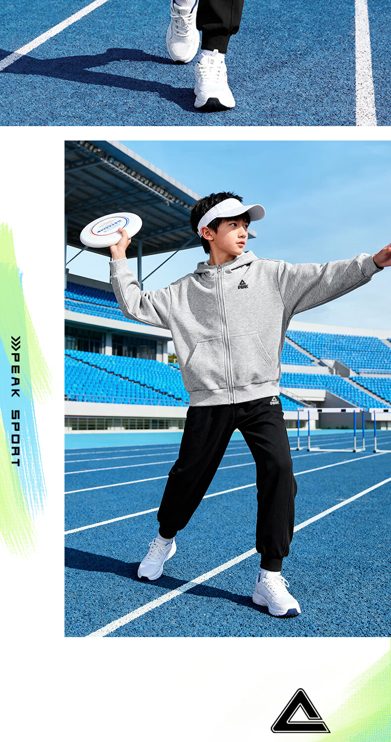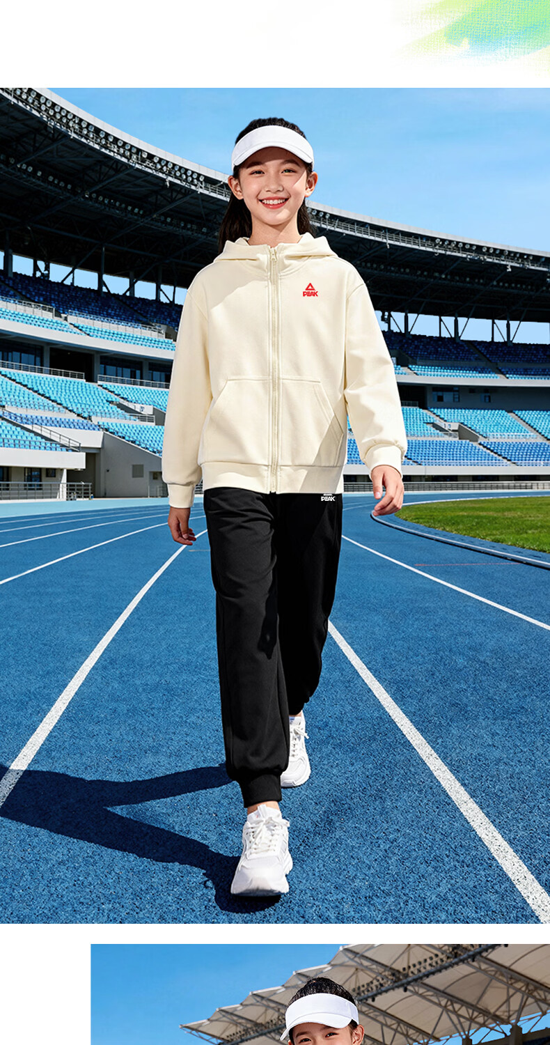 匹克童装儿童运动套装春秋2026新款男童外套连帽衣服青少年长袖春装 【春秋运动套装】杏+黑 140
