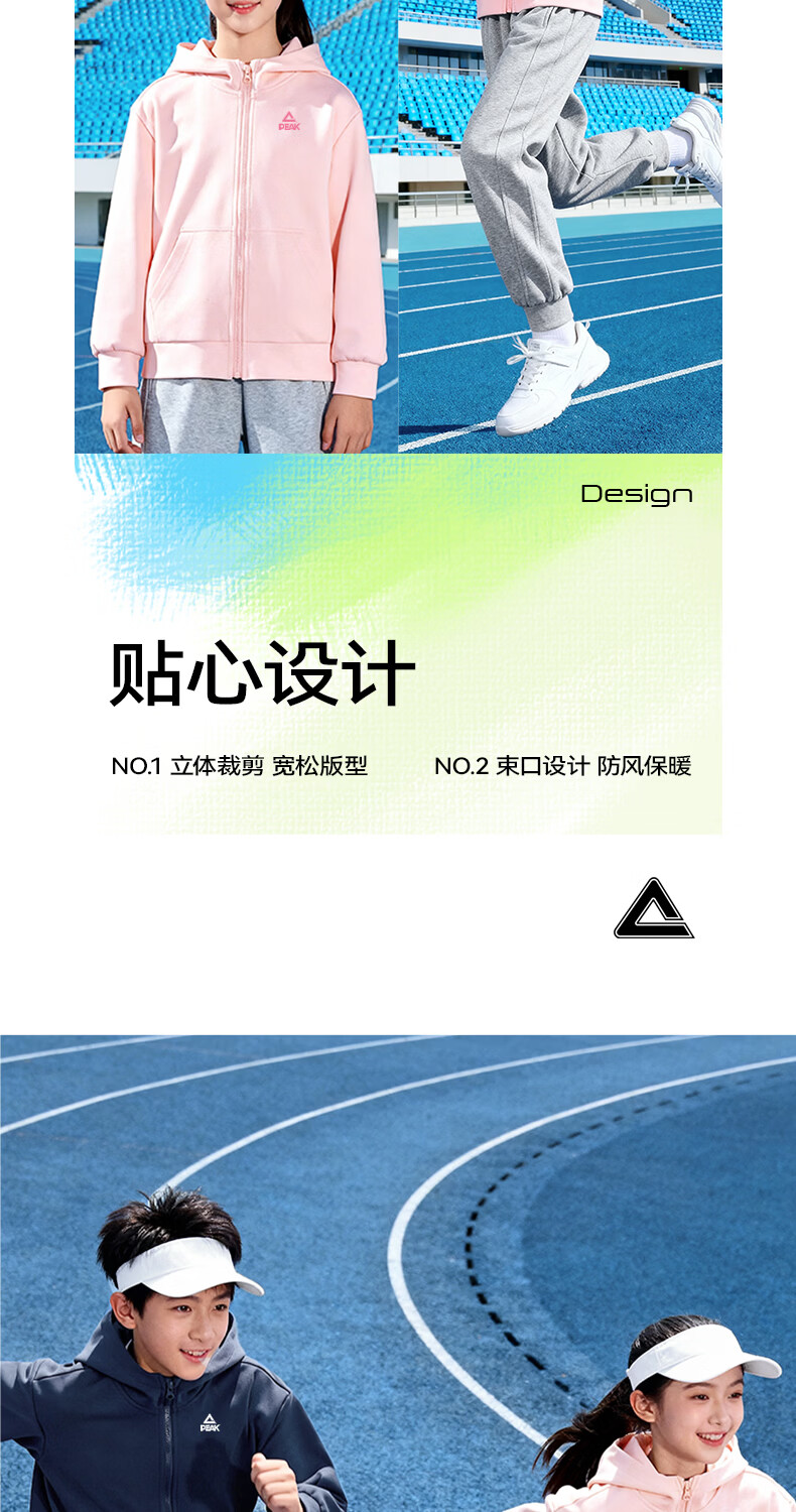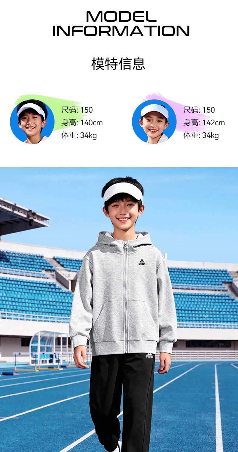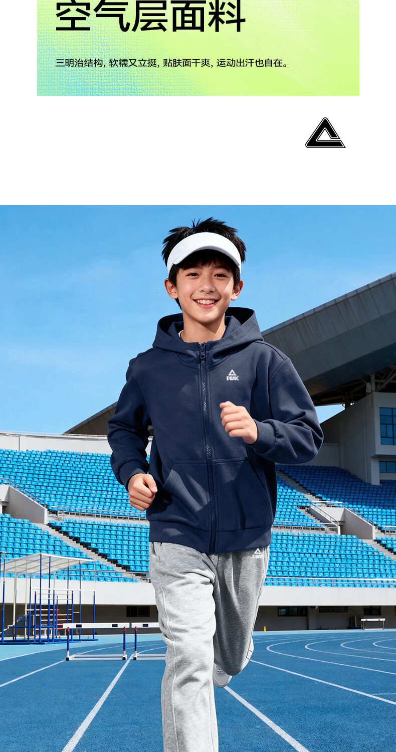 匹克童装儿童运动套装春秋2026新款男童外套连帽衣服青少年长袖春装 【春秋运动套装】杏+黑 140