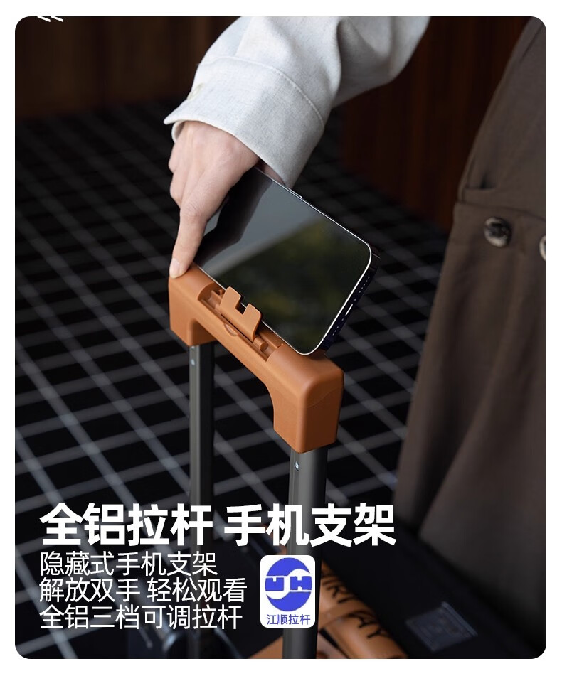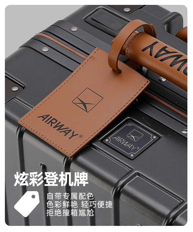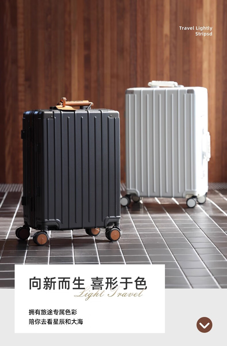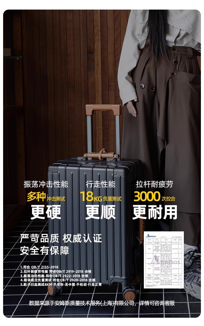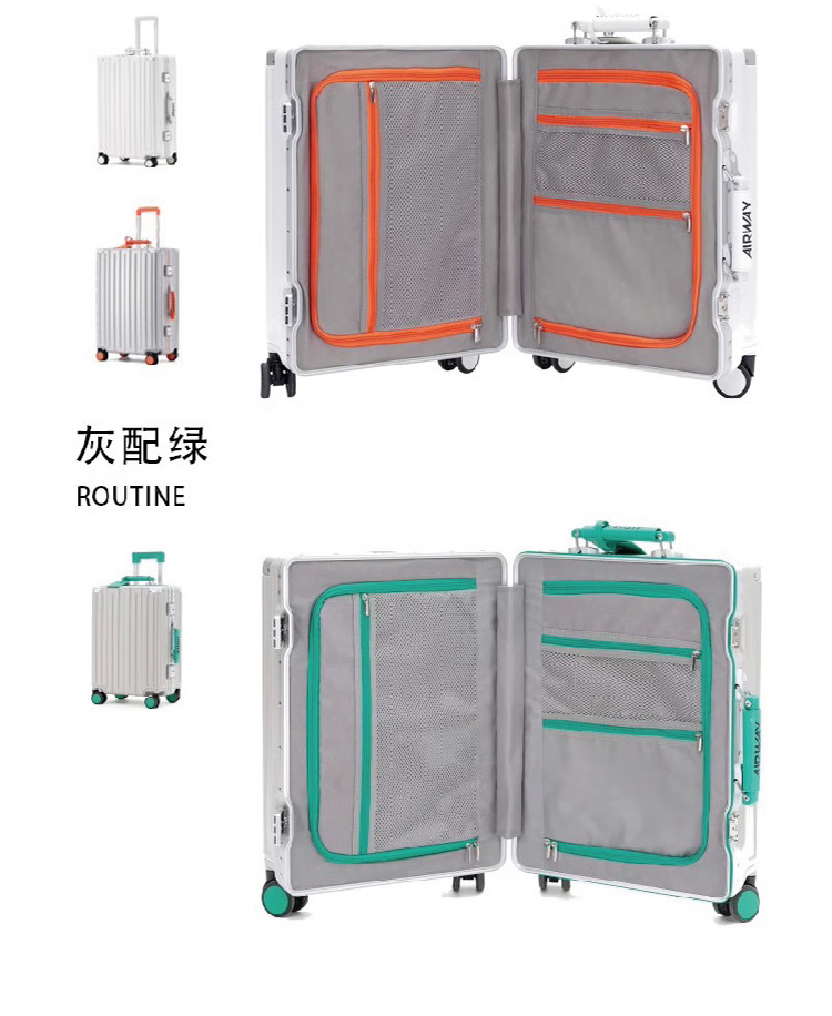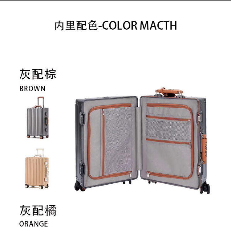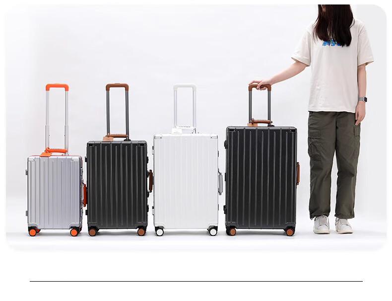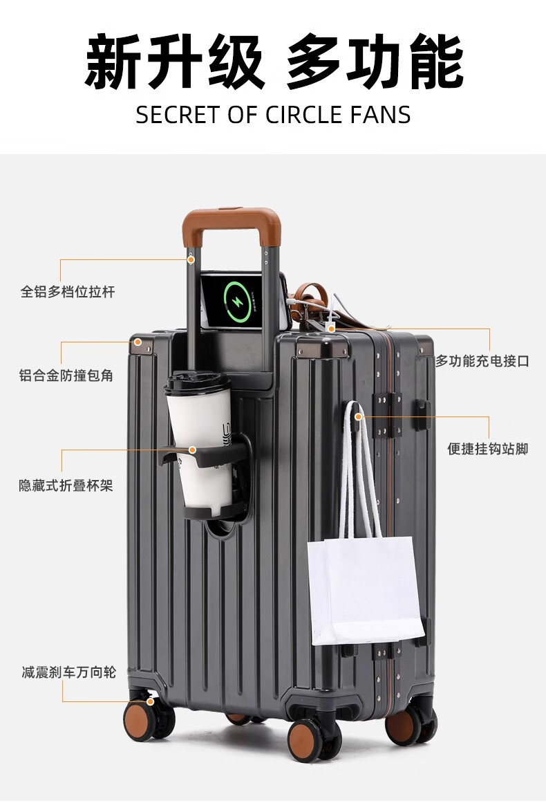 洛斯伯里(Roserooen)行李箱拉杆箱女20寸登机箱铝框旅行箱男刹车多功能万向轮密码箱 枪灰色-减震刹车-折叠杯架 24英寸