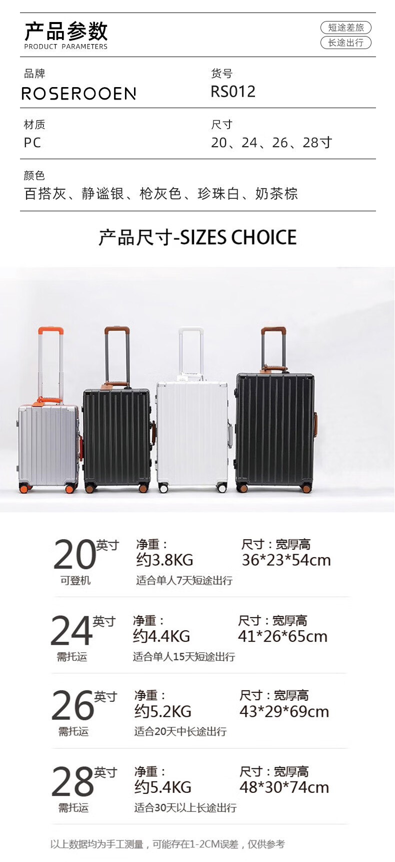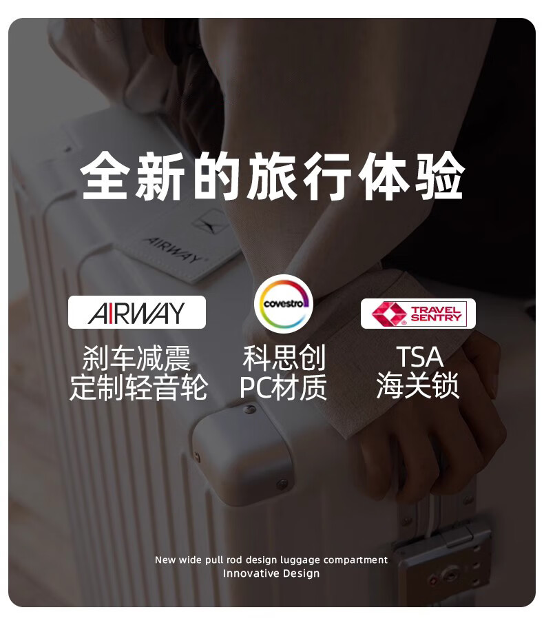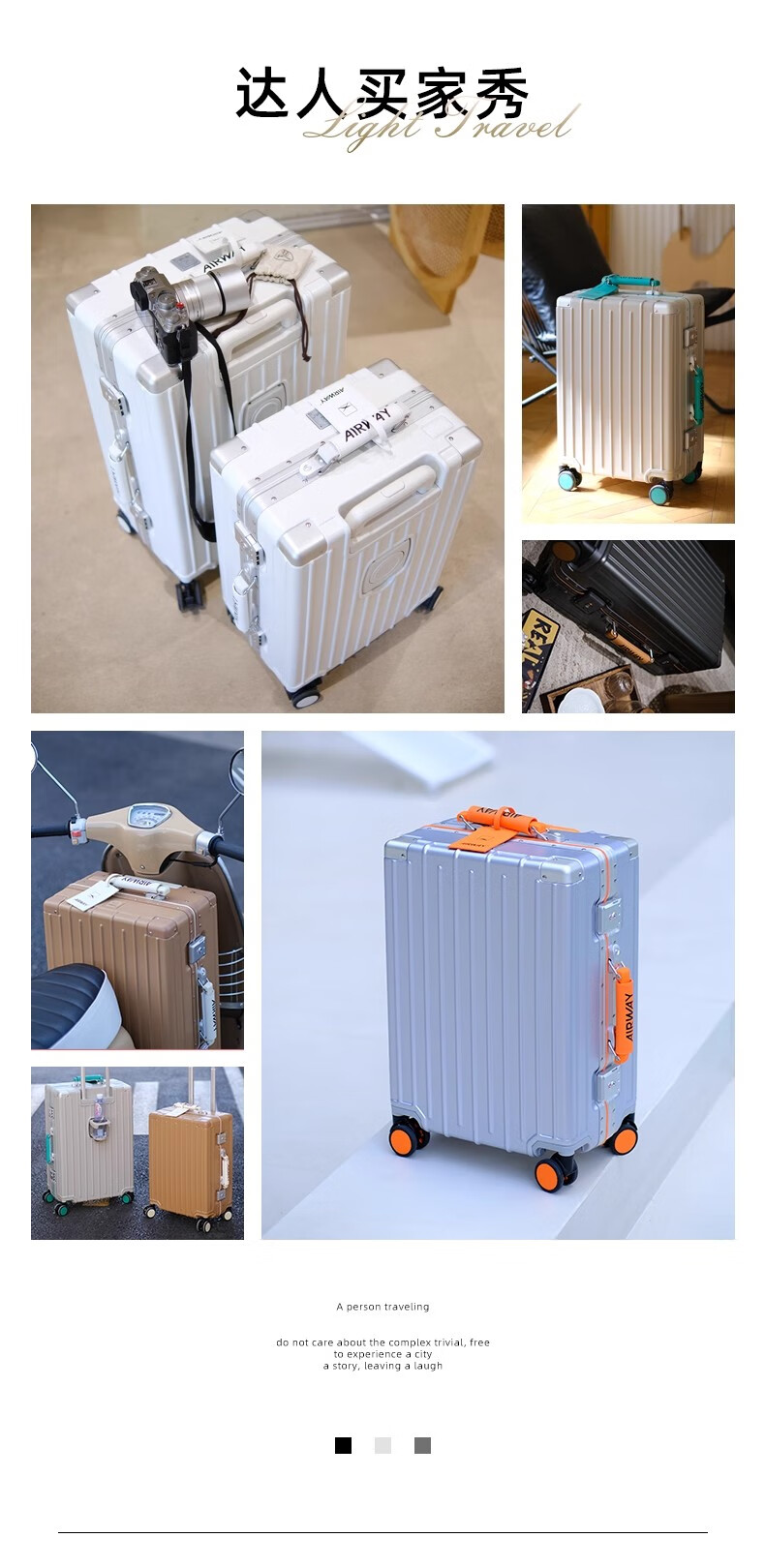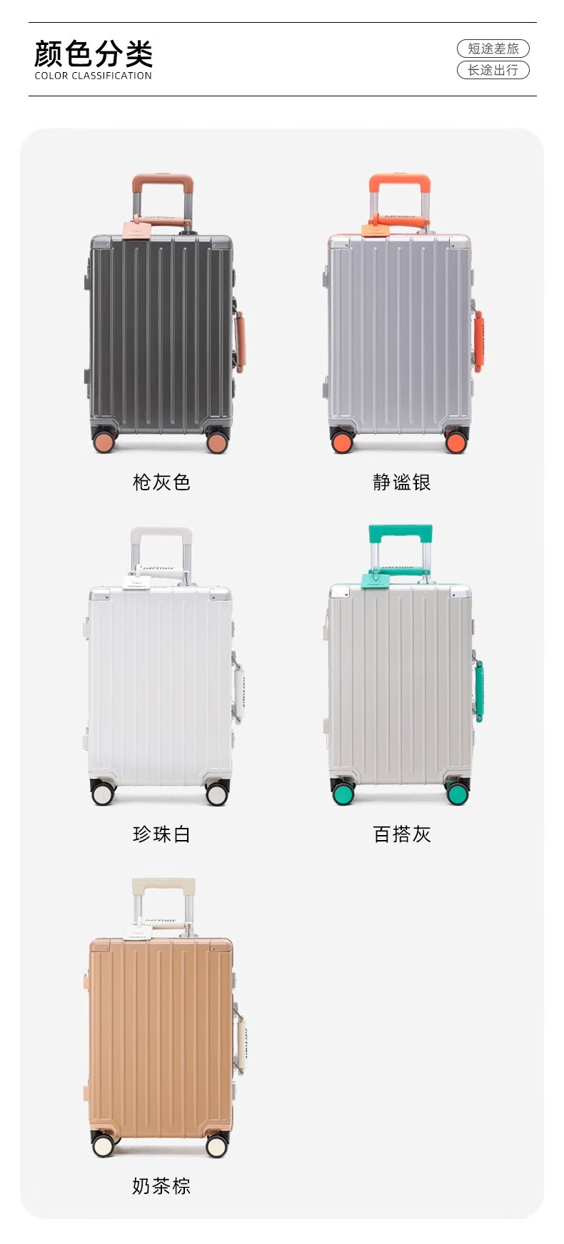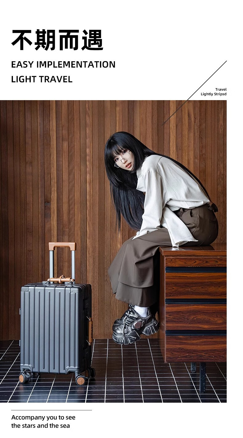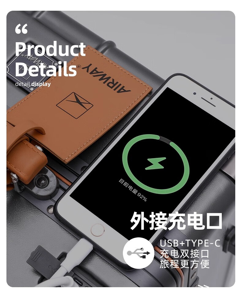 洛斯伯里(Roserooen)行李箱拉杆箱女20寸登机箱铝框旅行箱男刹车多功能万向轮密码箱 枪灰色-减震刹车-折叠杯架 24英寸