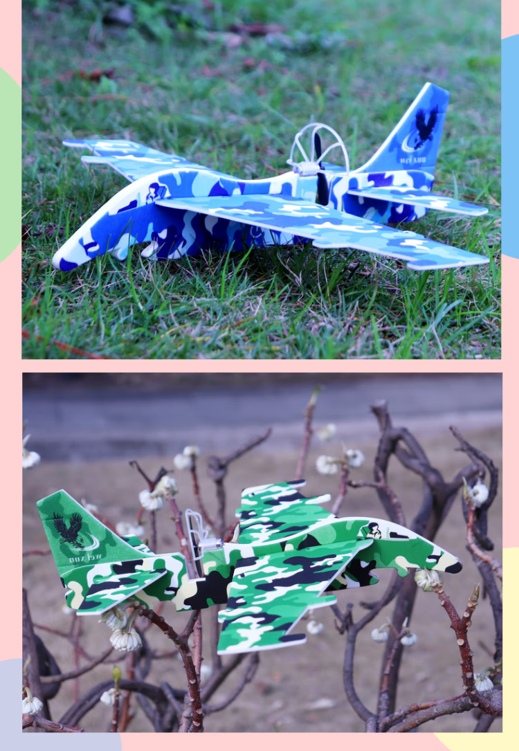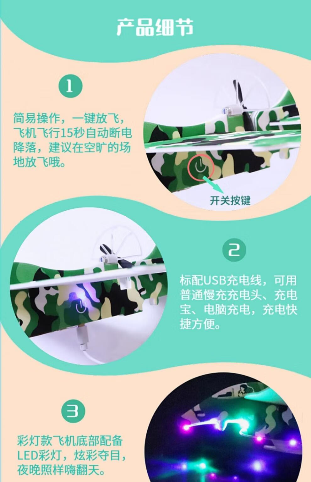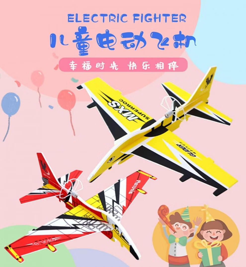 泡沫飞机电动模型玩具儿童泡沫小飞机航模拼装手抛充电玩具礼物 红色YJ-2 彩灯款战斗机 官方标配