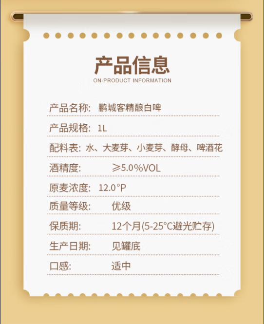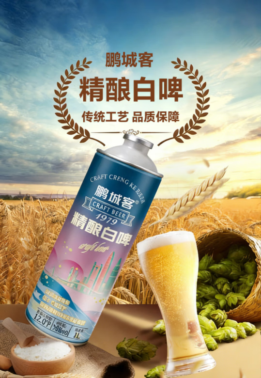 鹏城客比利时风味精酿原浆啤酒白啤整箱深圳品牌澳洲进口全麦芽 精酿白啤 1L 6瓶 整箱装 1箱