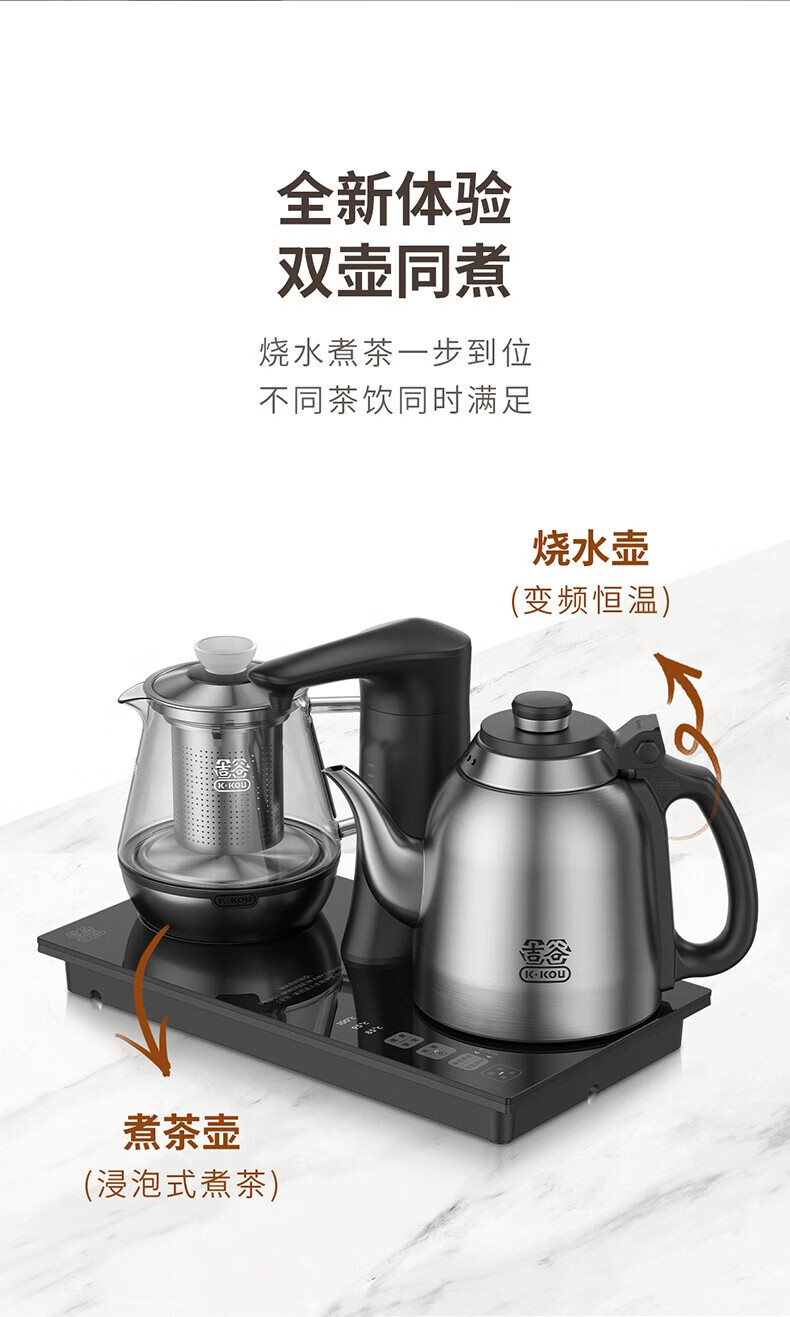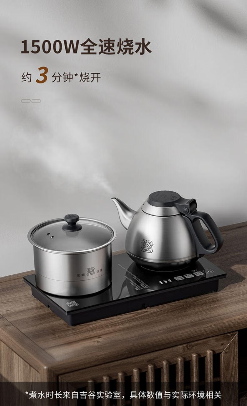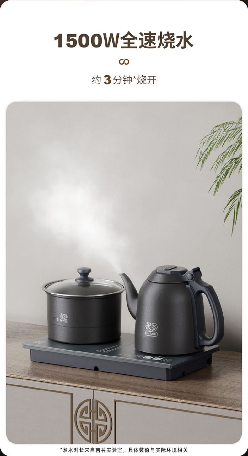 吉谷(K·KOU) 全自动烧水壶电水壶 火山岩自动加水智能恒温泡茶台专用防干烧底部上水电茶炉煮水壶电茶壶茶具 1.2L TC010【烧水+煮茶】