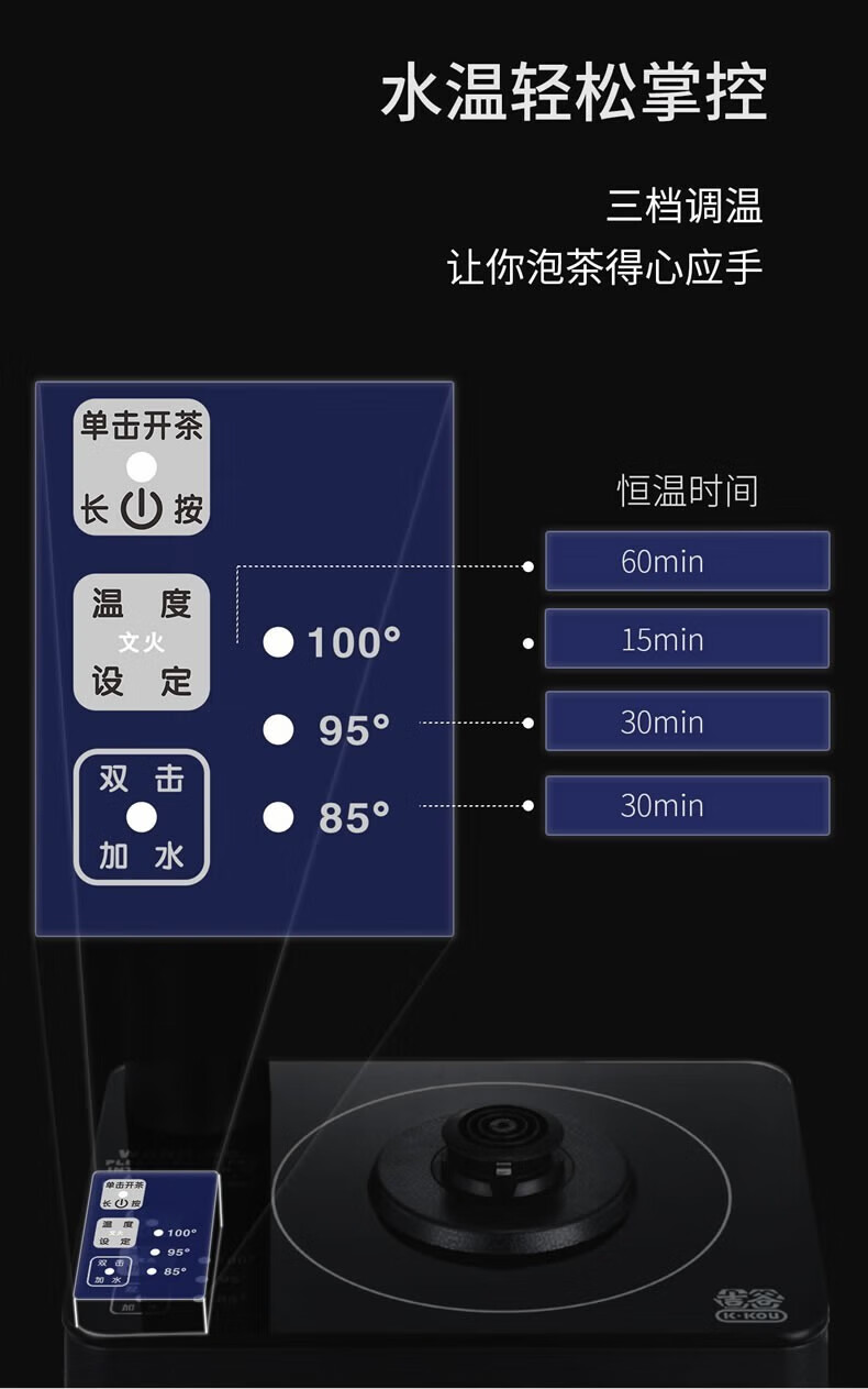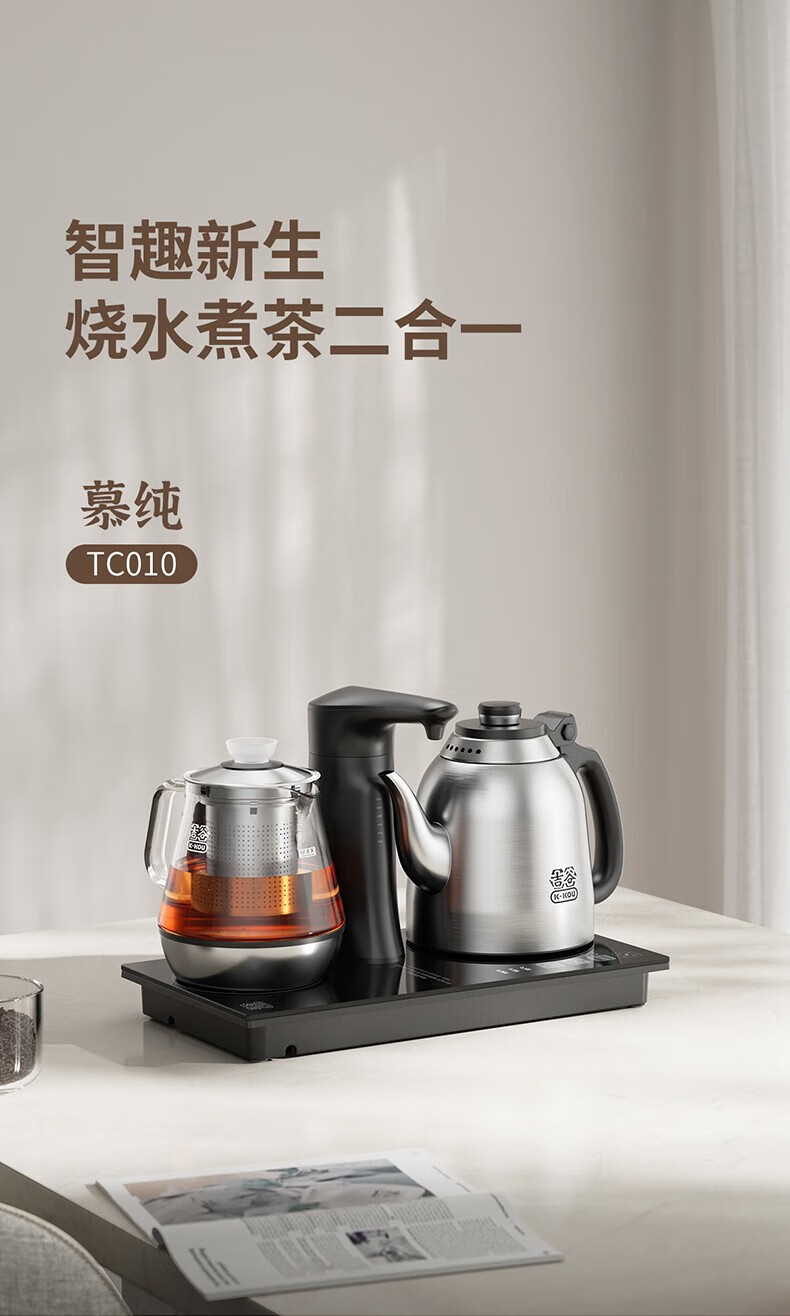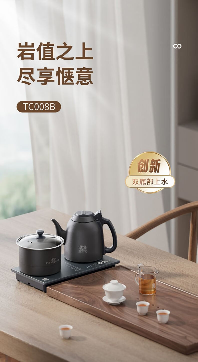 吉谷(K·KOU) 全自动烧水壶电水壶 火山岩自动加水智能恒温泡茶台专用防干烧底部上水电茶炉煮水壶电茶壶茶具 1.2L TC010【烧水+煮茶】