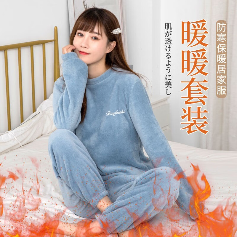 虎迹2025年秋冬珊瑚绒暖暖套裤 氧气蓝 均码(建议80到140斤左右)