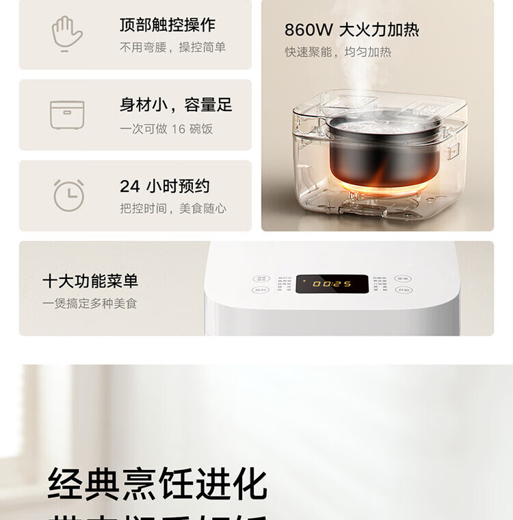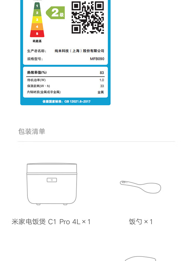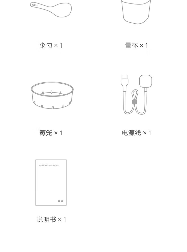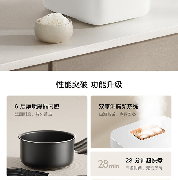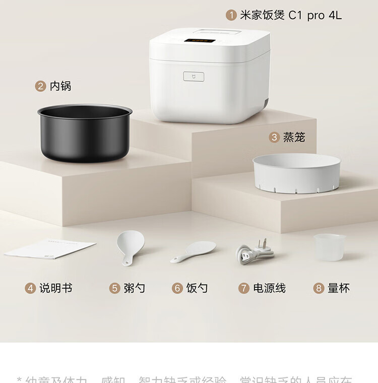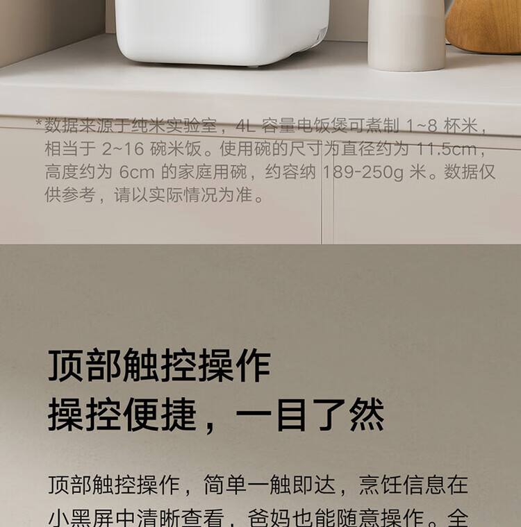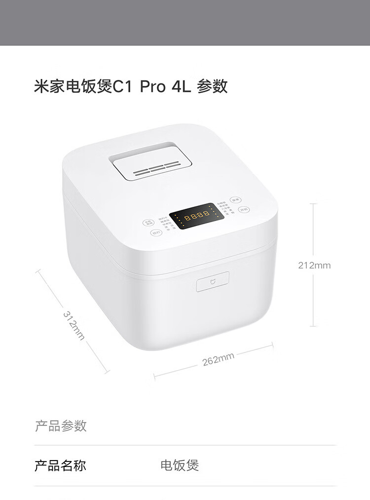 小米米家智能米家电饭煲4升大容量家用小型多功能不粘内胆快炖煮饭粥防溢 米家电饭煲C1 Pro 4L 1L