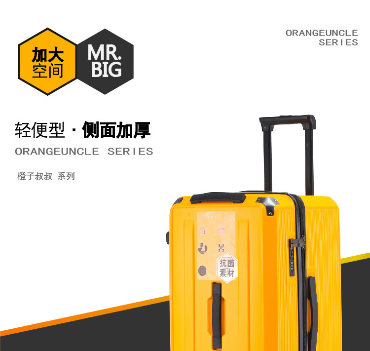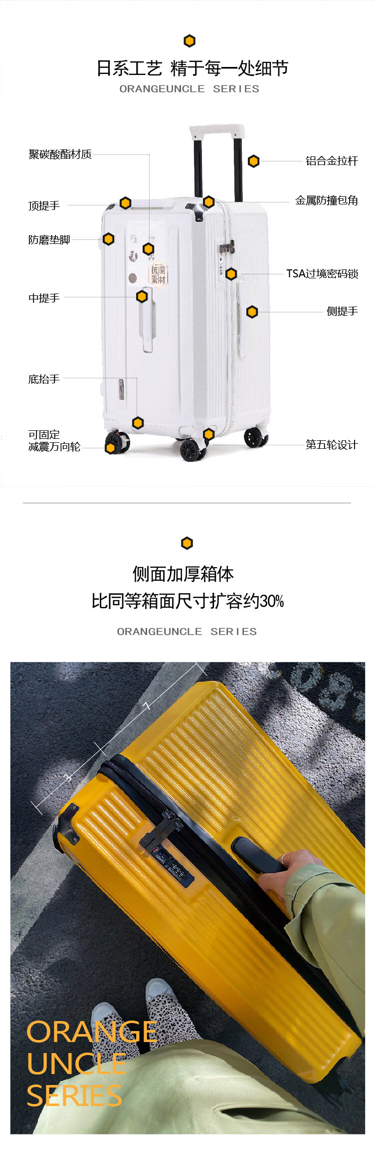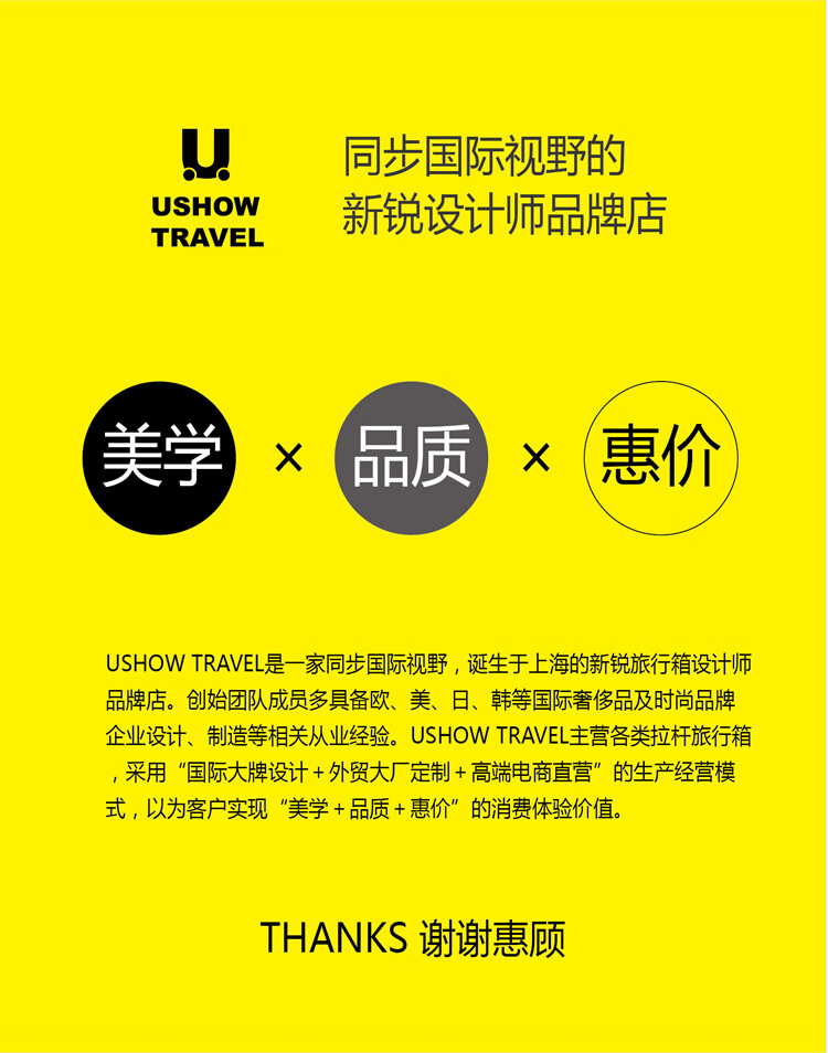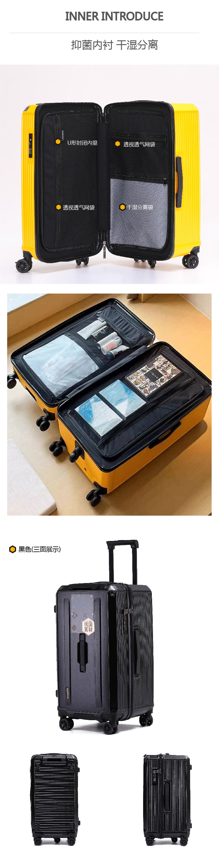 USHOW TRAVEL加厚三七分大容量拉杆箱超轻旅行箱刹车轮托运箱男女密码箱行李箱 黑色 28英寸
