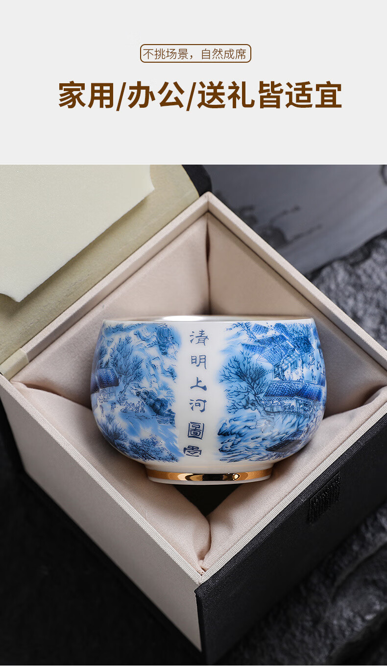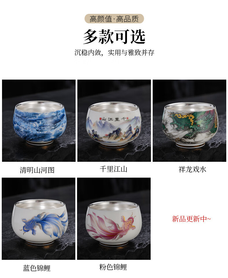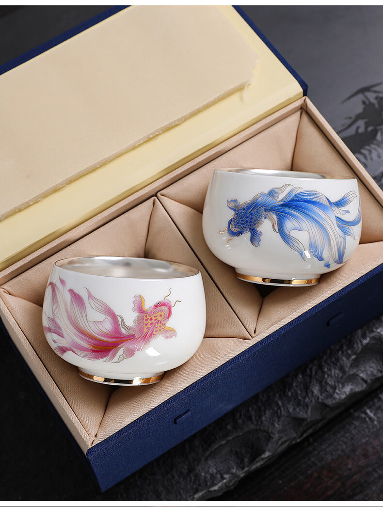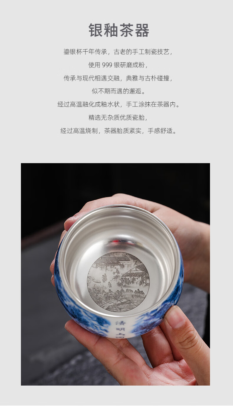 青天问月主人杯单杯鎏银杯999纯银包银陶瓷功夫茶具茶杯个人轻奢品茗礼盒 鎏银-白玉将军杯+礼盒 150ML