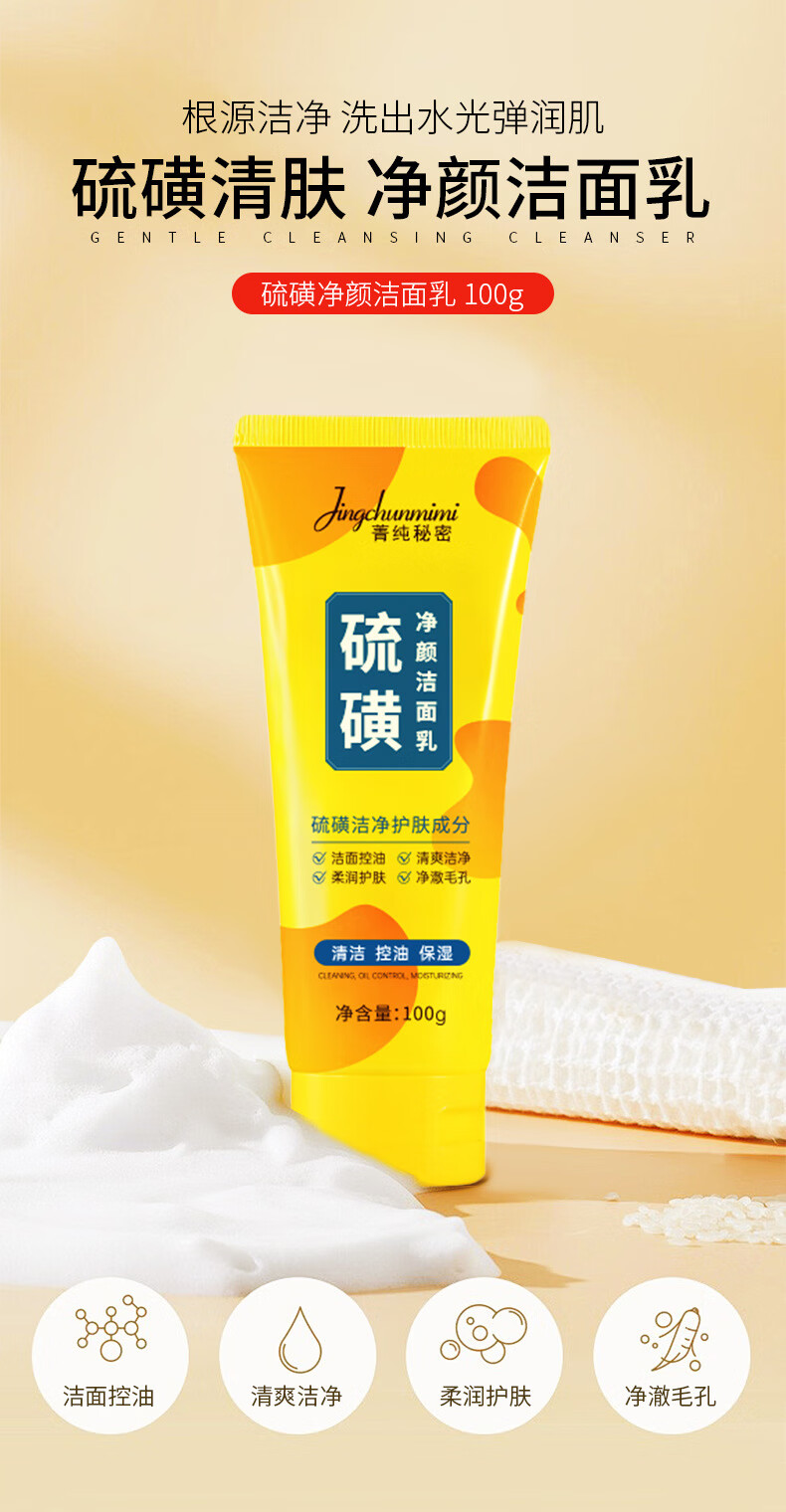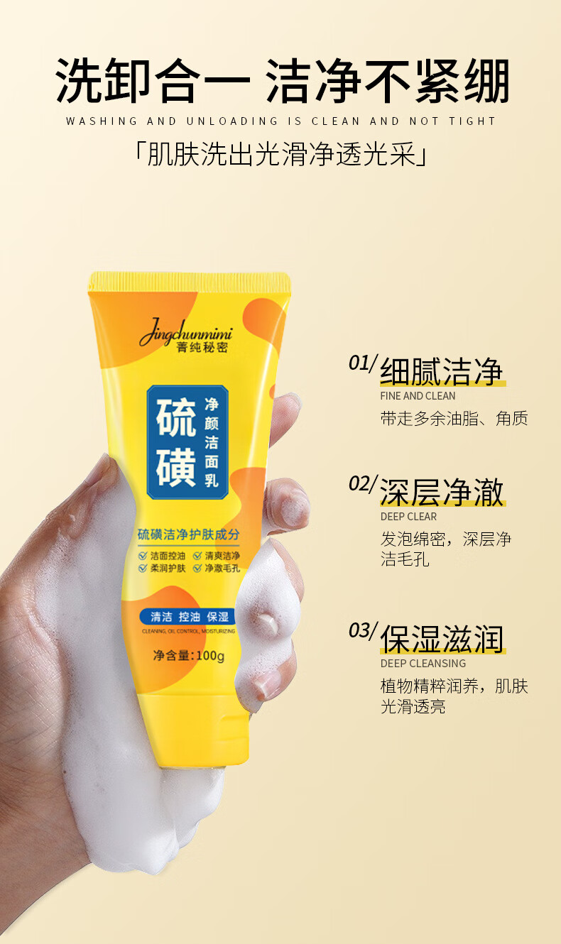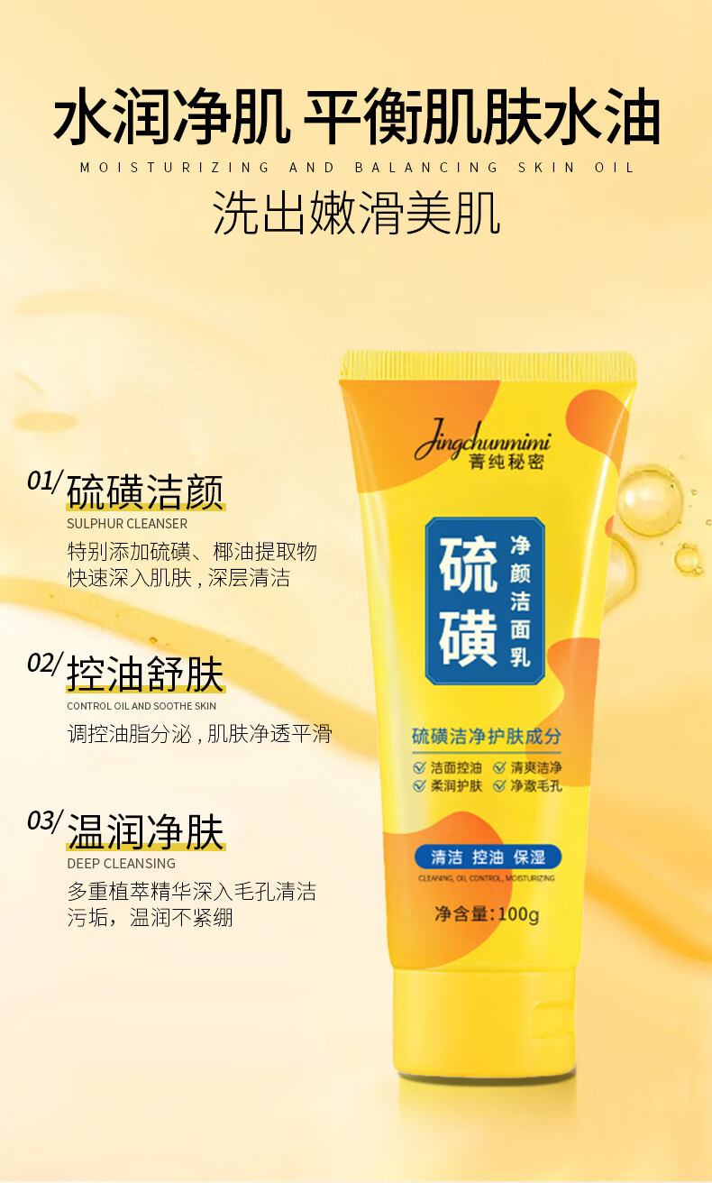 【严选直发】硫磺洗面奶保湿深层清洁温和清爽不紧绷洁面乳 硫磺洗面奶 100ml (一支)