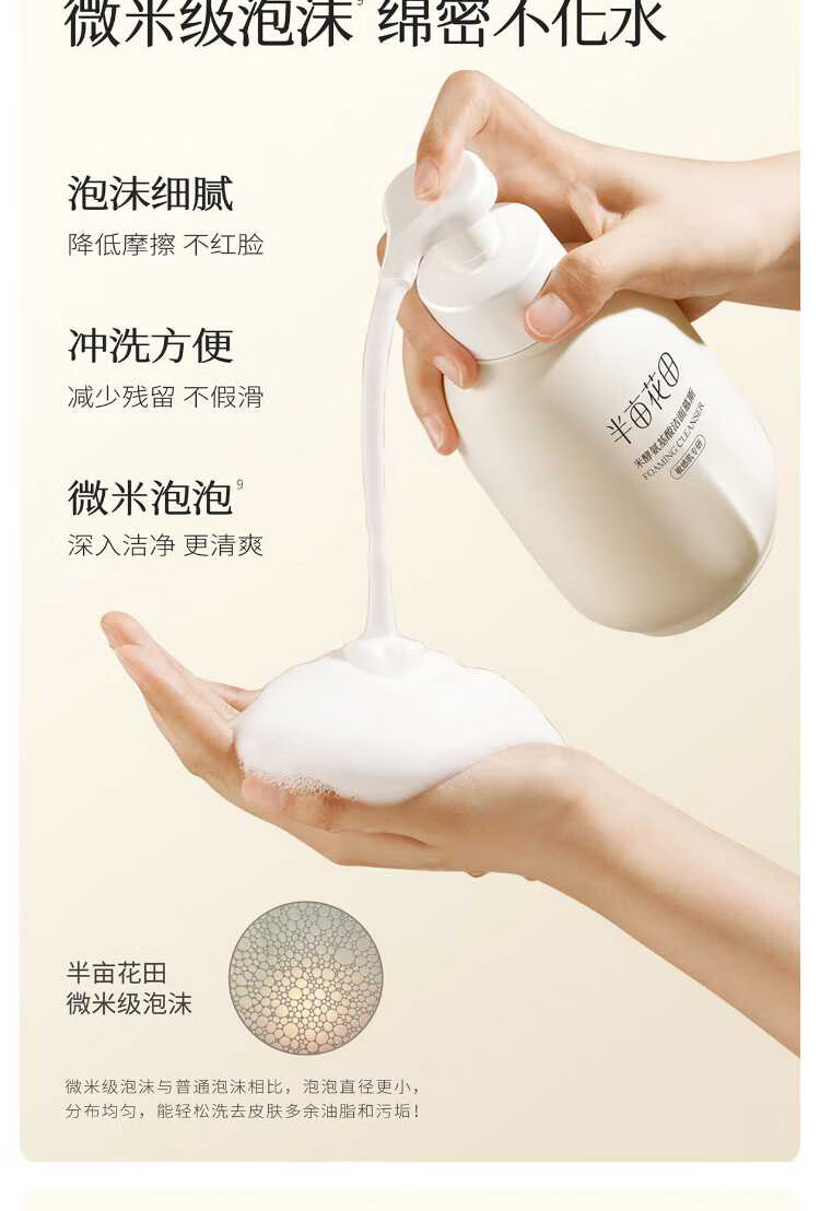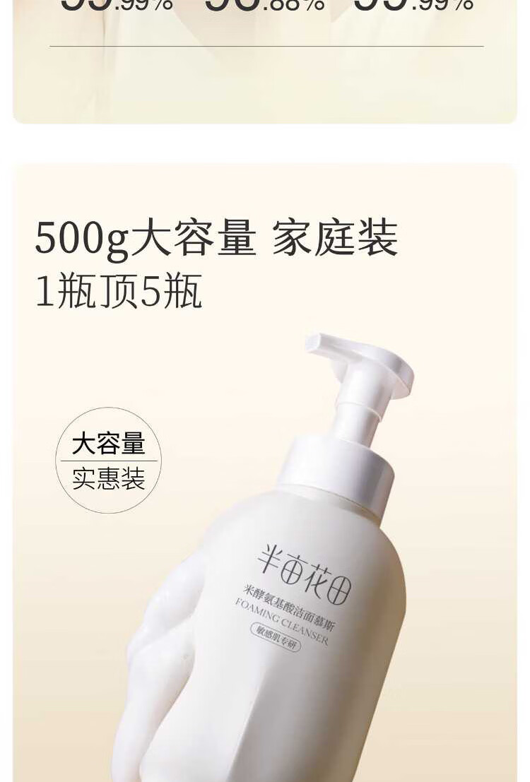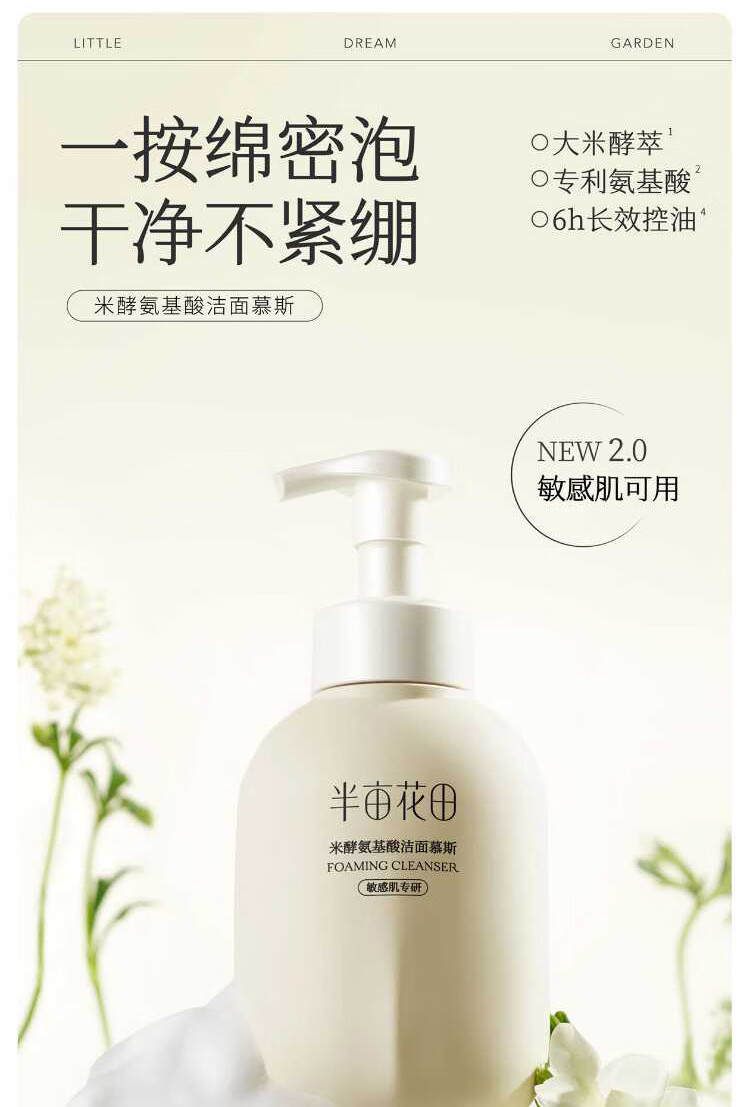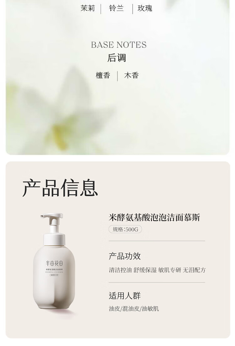半亩花田氨基酸洗面奶深层清洁控油泡泡洁面慕斯温和大容量洁面乳500g 洁面慕斯500g+苦参皂20g+面膜