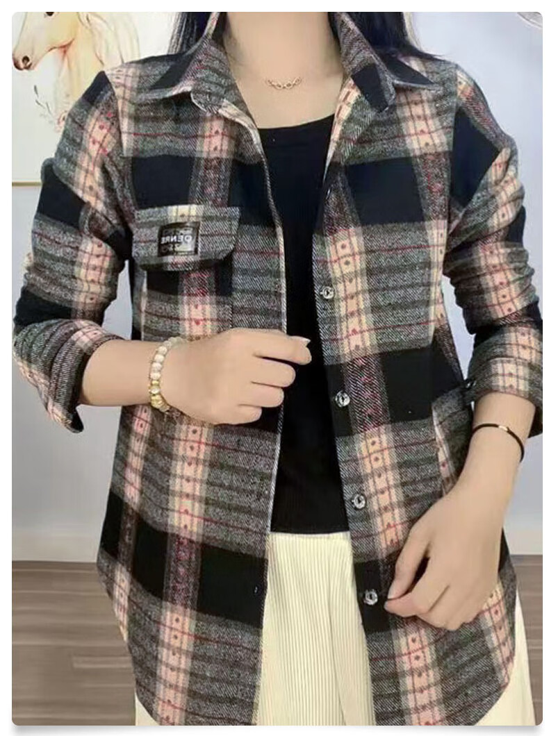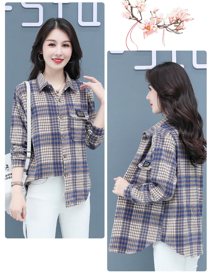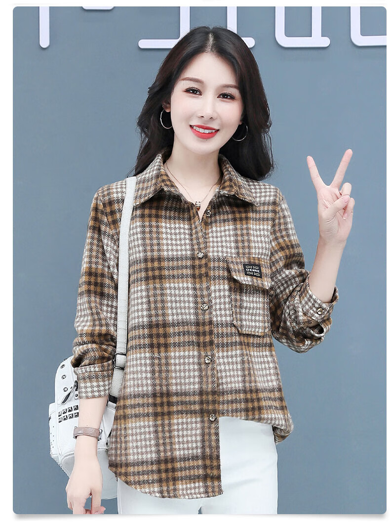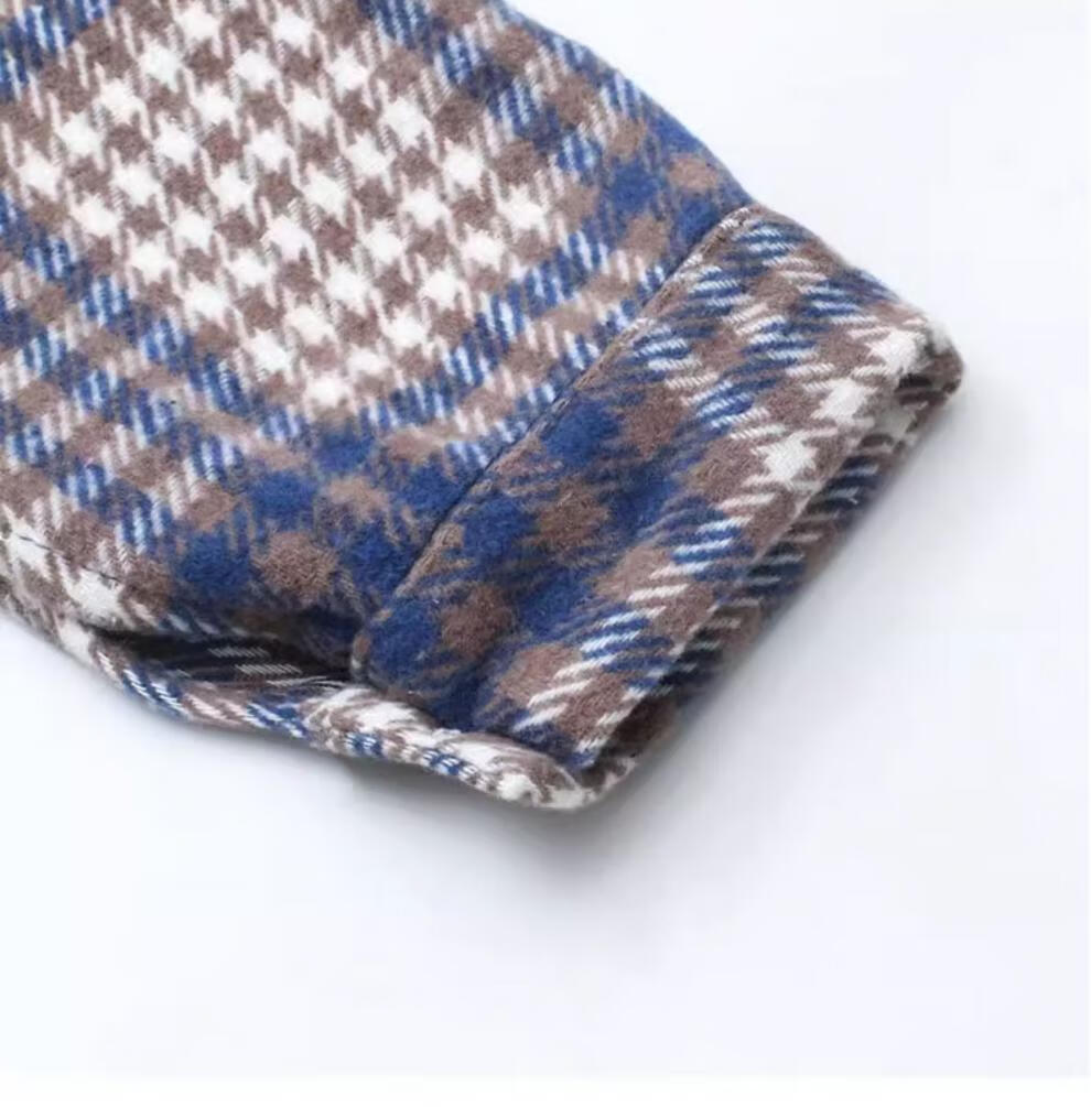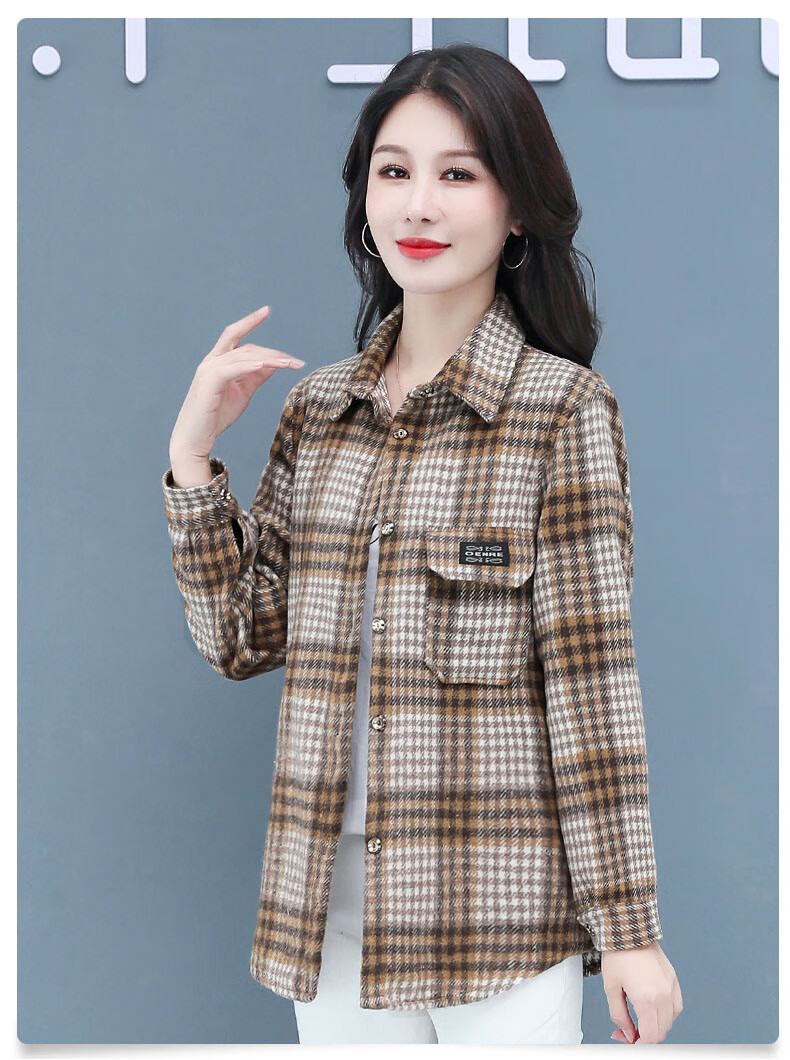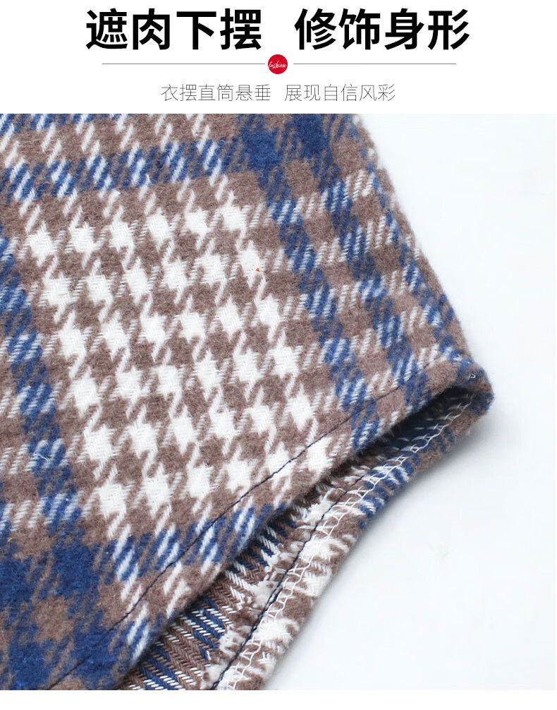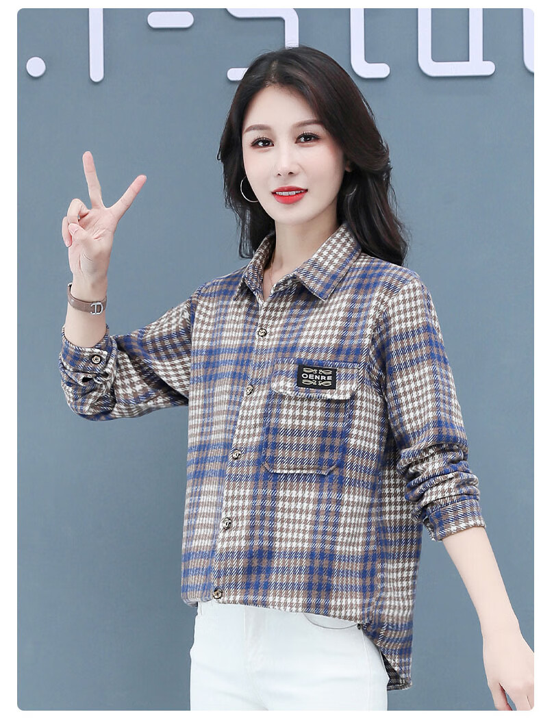 皮尔卡丹(pierre cardin)毛呢格子衬衫女2025新款秋季时尚复古港味宽松加厚衬衣春秋装外套 千鸟蓝【毛呢格子衬衫】593ZHYL1560 XL (85-100)