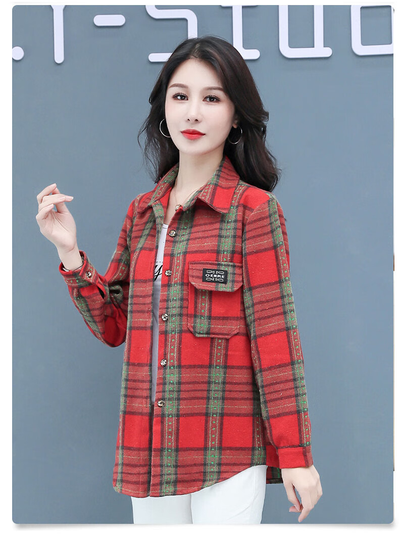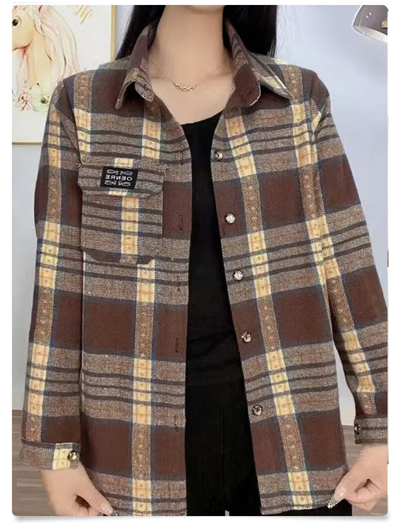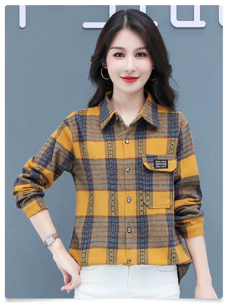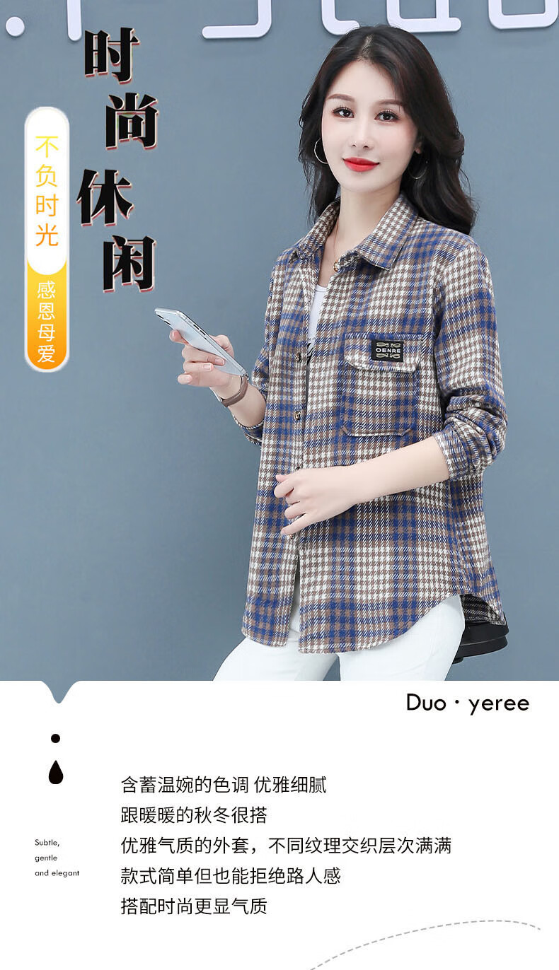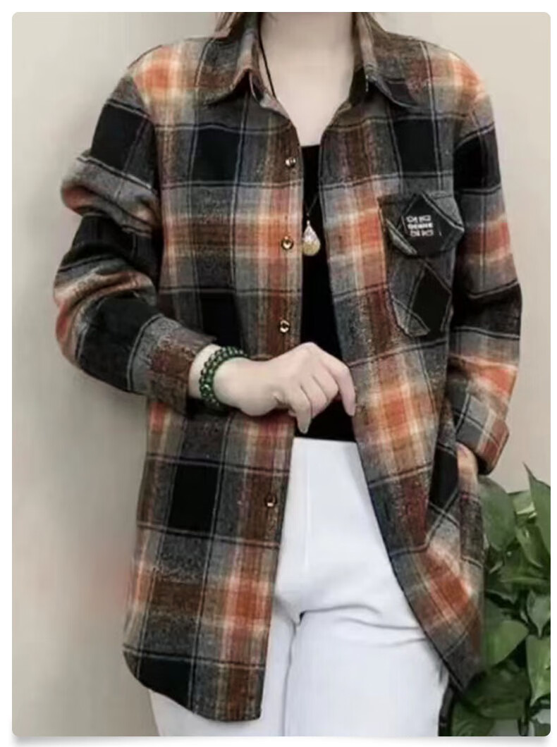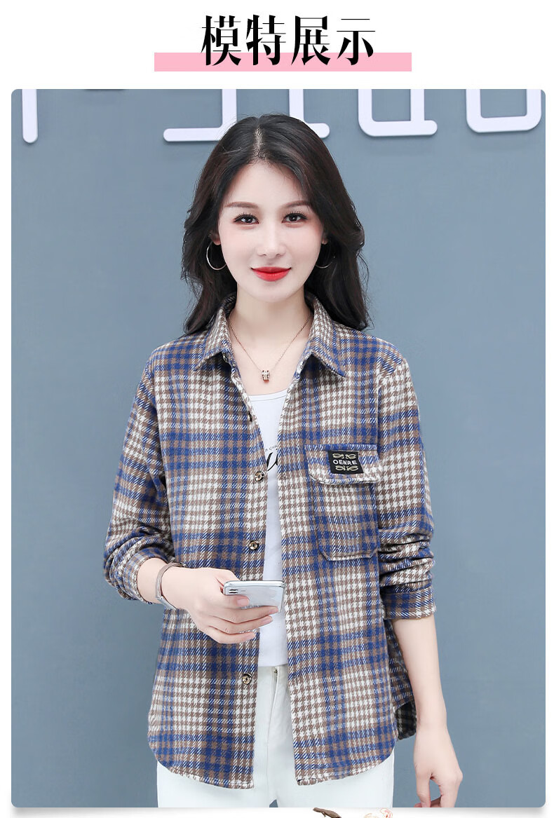 皮尔卡丹(pierre cardin)毛呢格子衬衫女2025新款秋季时尚复古港味宽松加厚衬衣春秋装外套 千鸟蓝【毛呢格子衬衫】593ZHYL1560 XL (85-100)