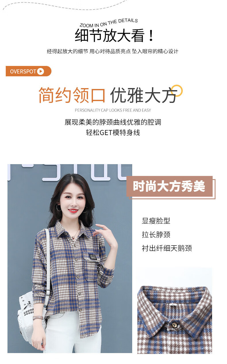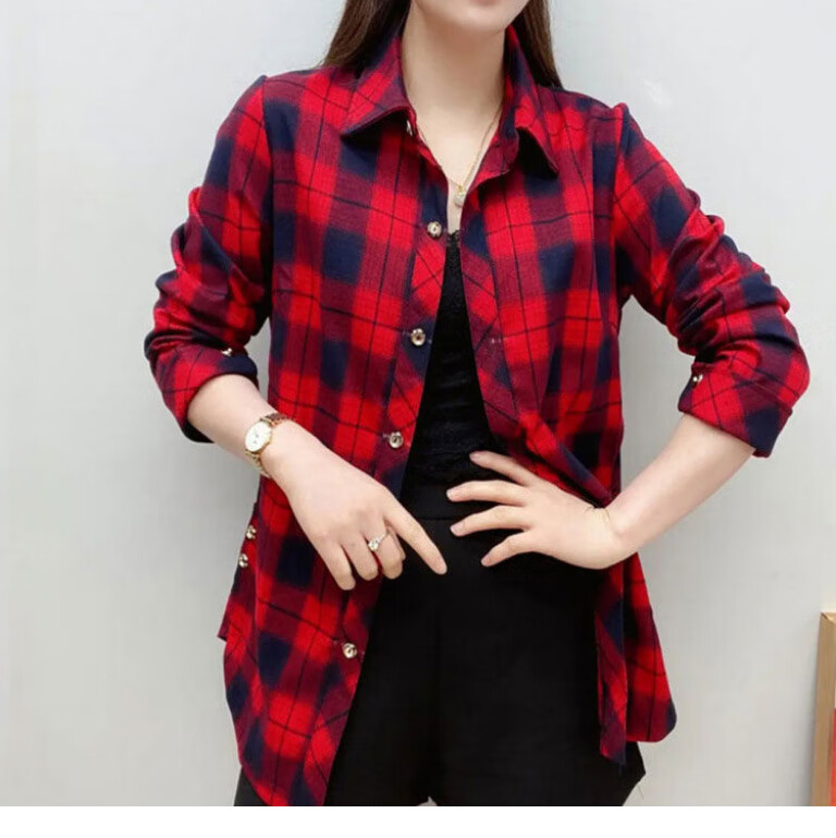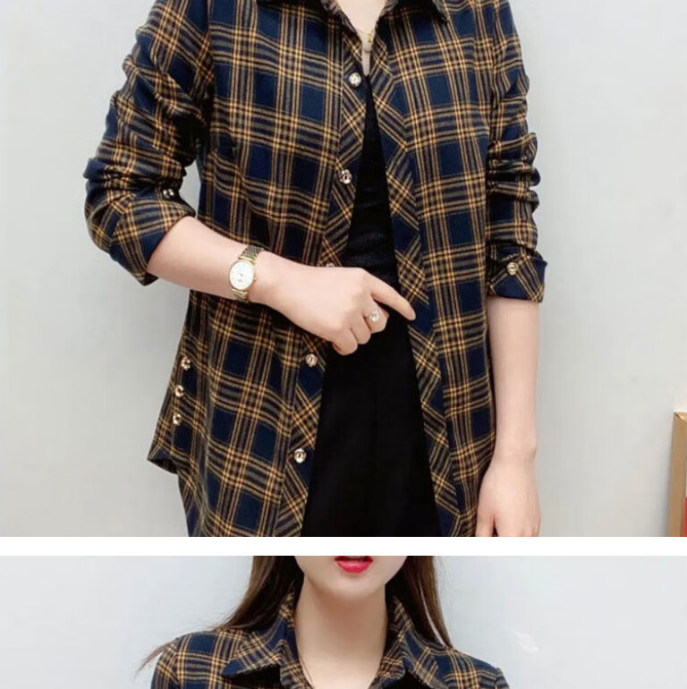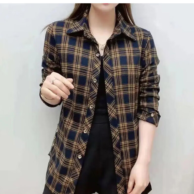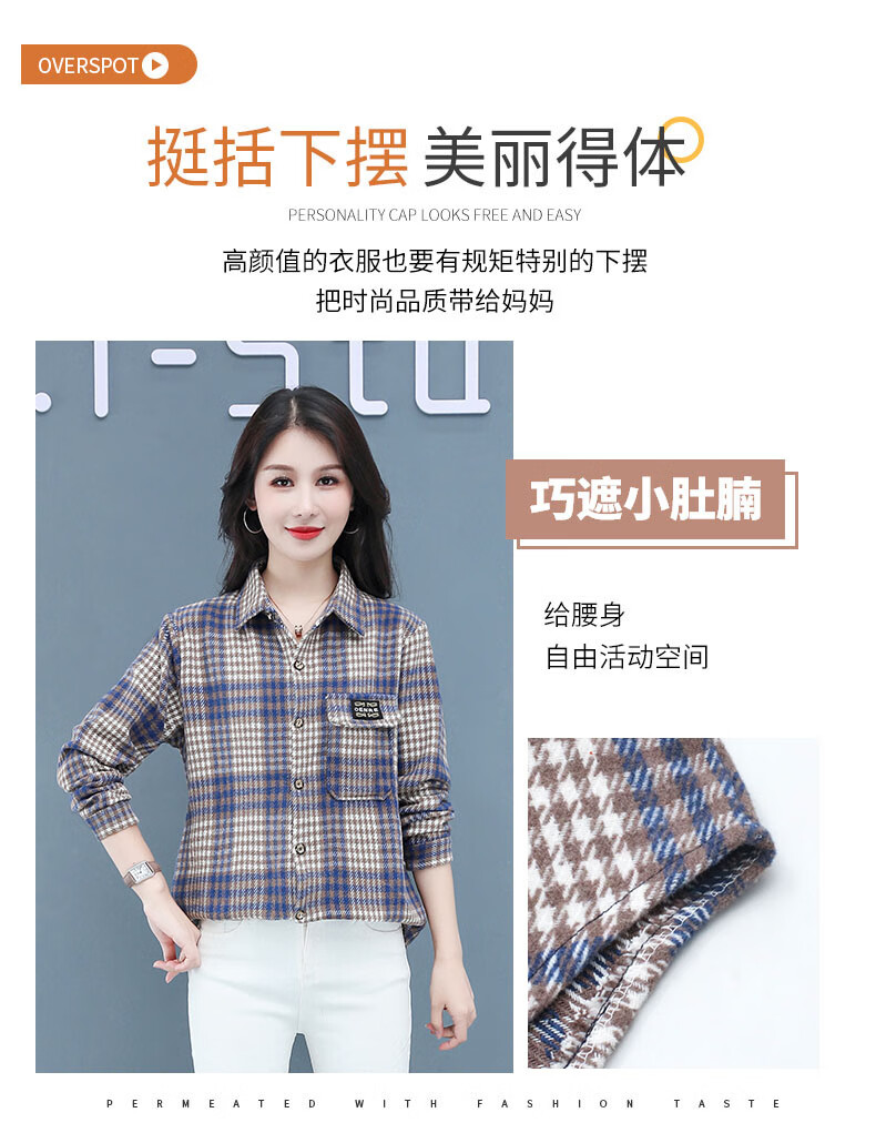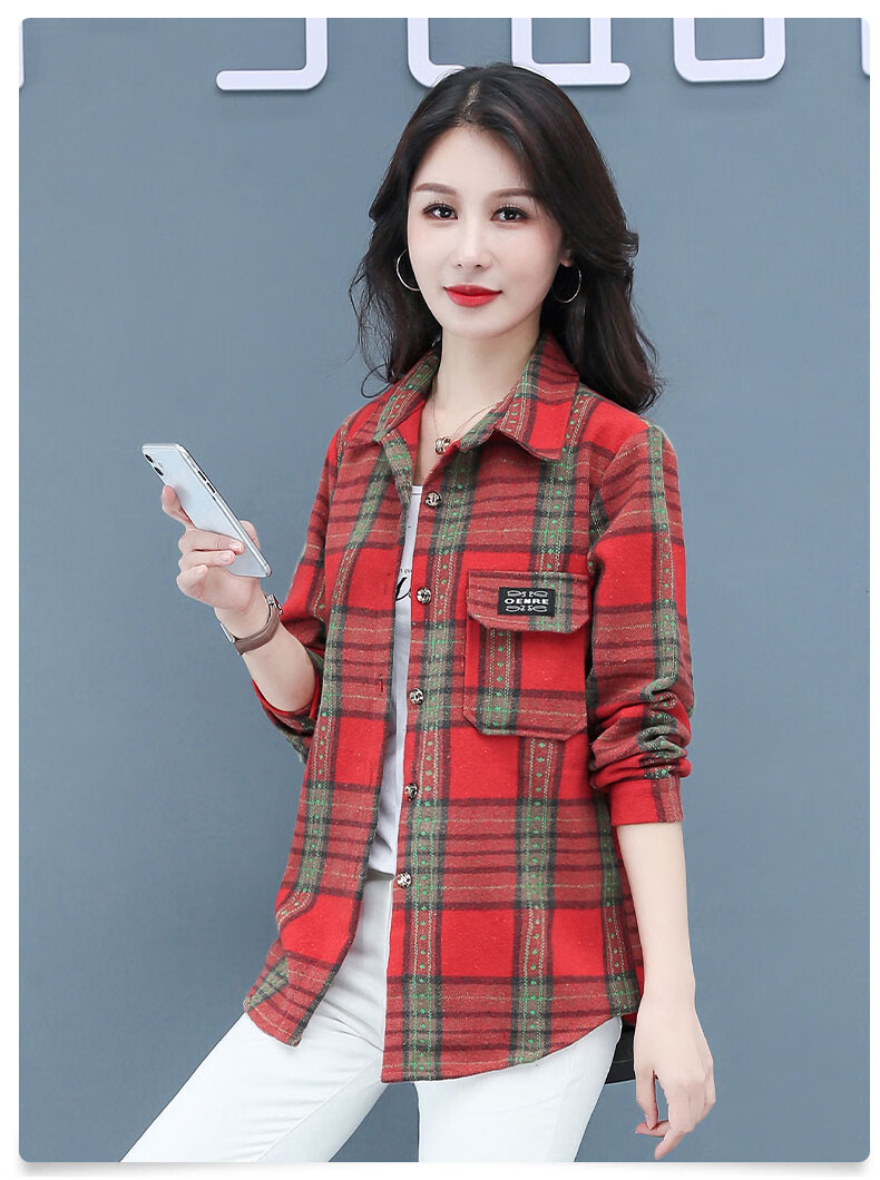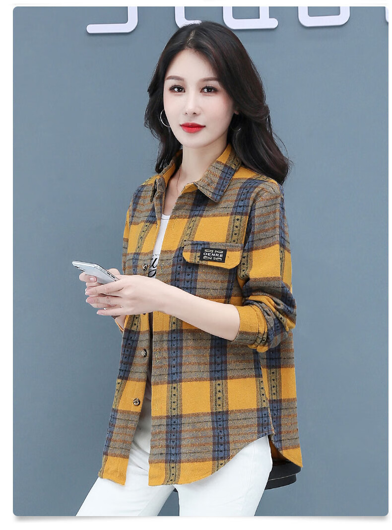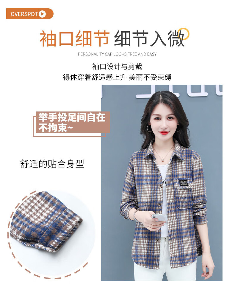皮尔卡丹(pierre cardin)毛呢格子衬衫女2025新款秋季时尚复古港味宽松加厚衬衣春秋装外套 千鸟蓝【毛呢格子衬衫】593ZHYL1560 XL (85-100)
