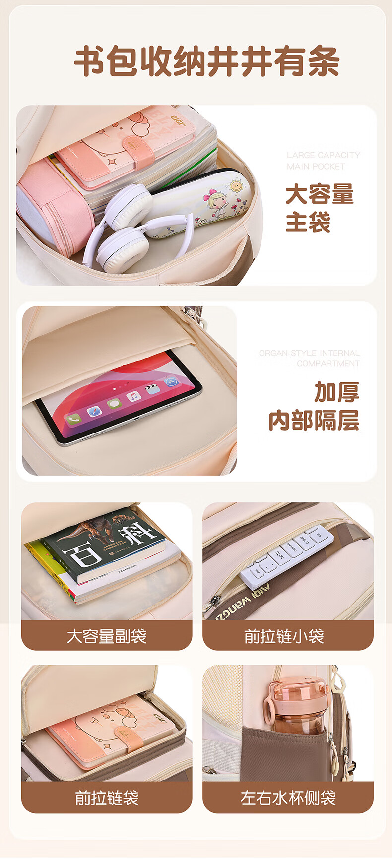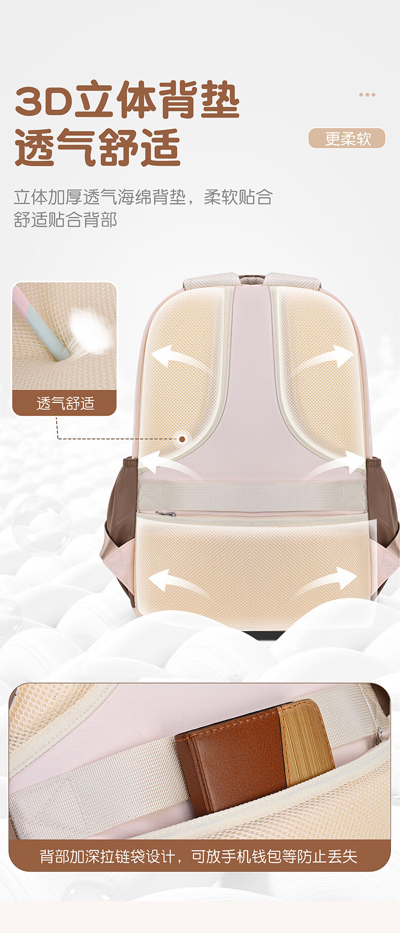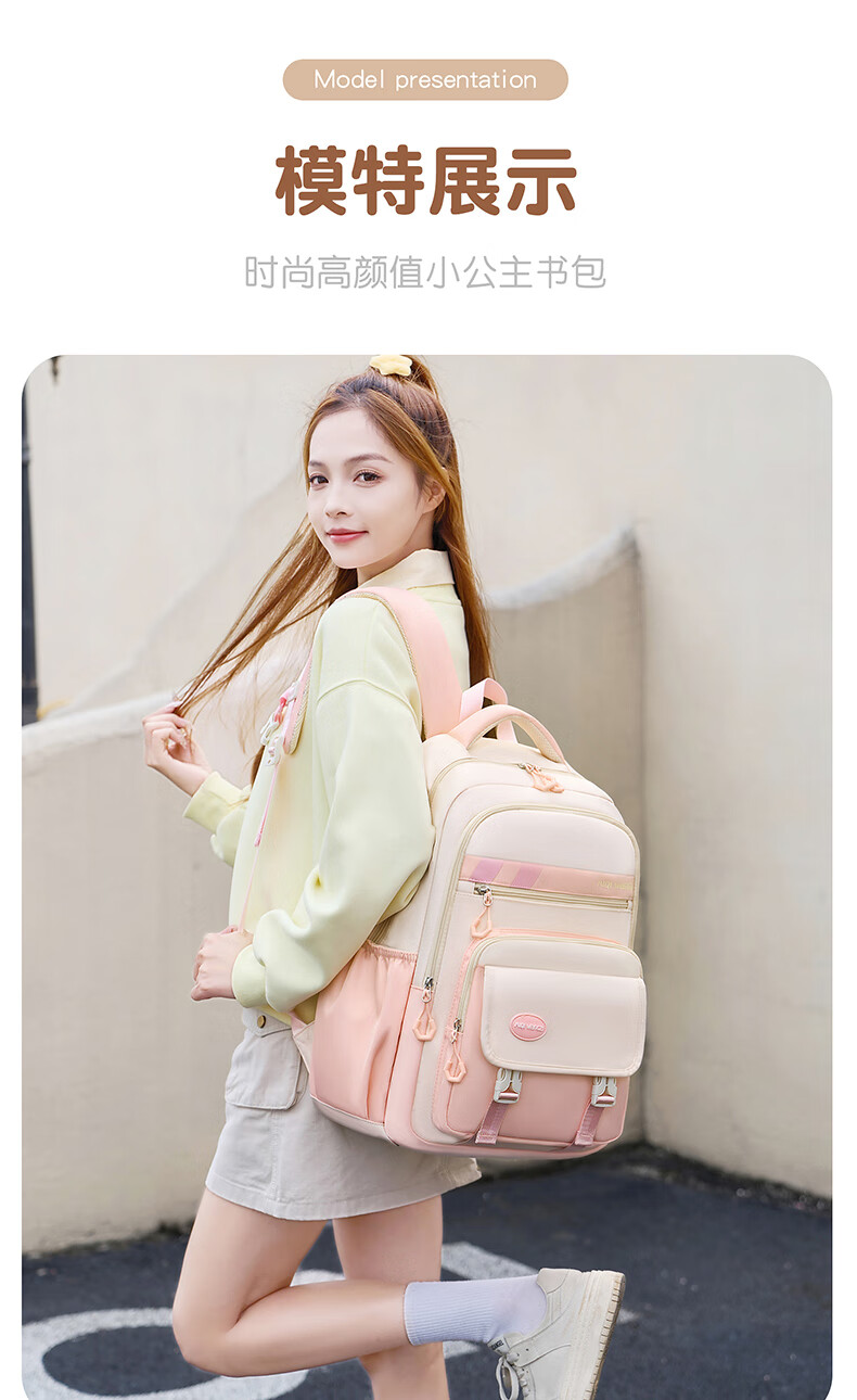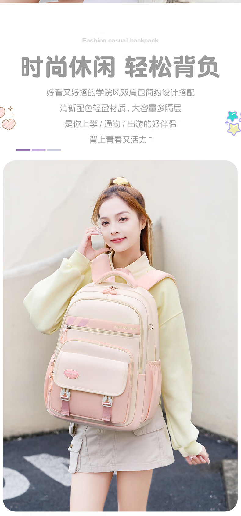 智多宝初中生书包女生高中学生超大容量背包女小学生3-6年级轻便双肩包 中号粉色(送挂饰+手表+套尺)