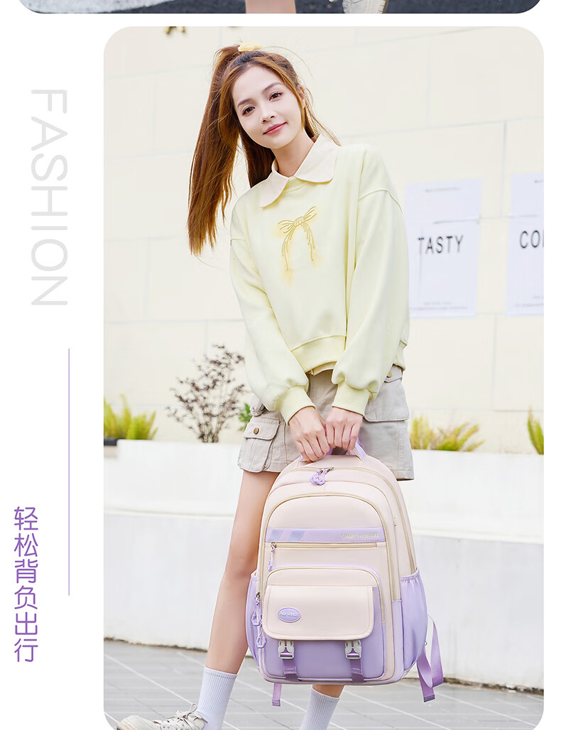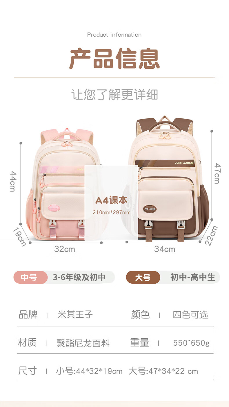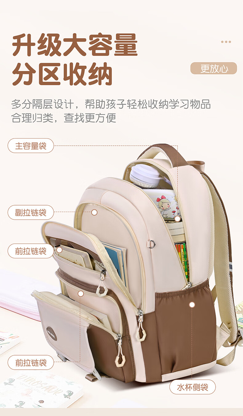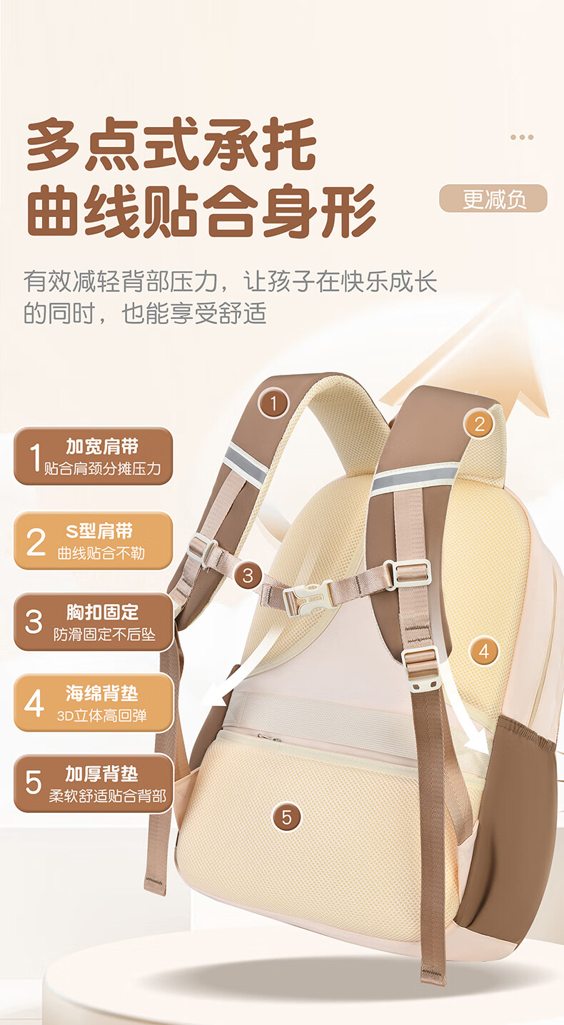 智多宝初中生书包女生高中学生超大容量背包女小学生3-6年级轻便双肩包 中号粉色(送挂饰+手表+套尺)