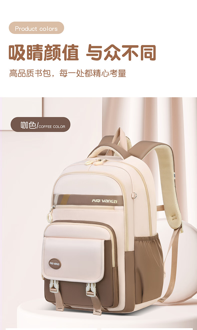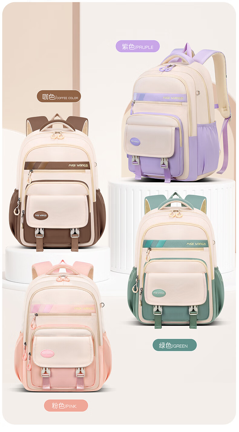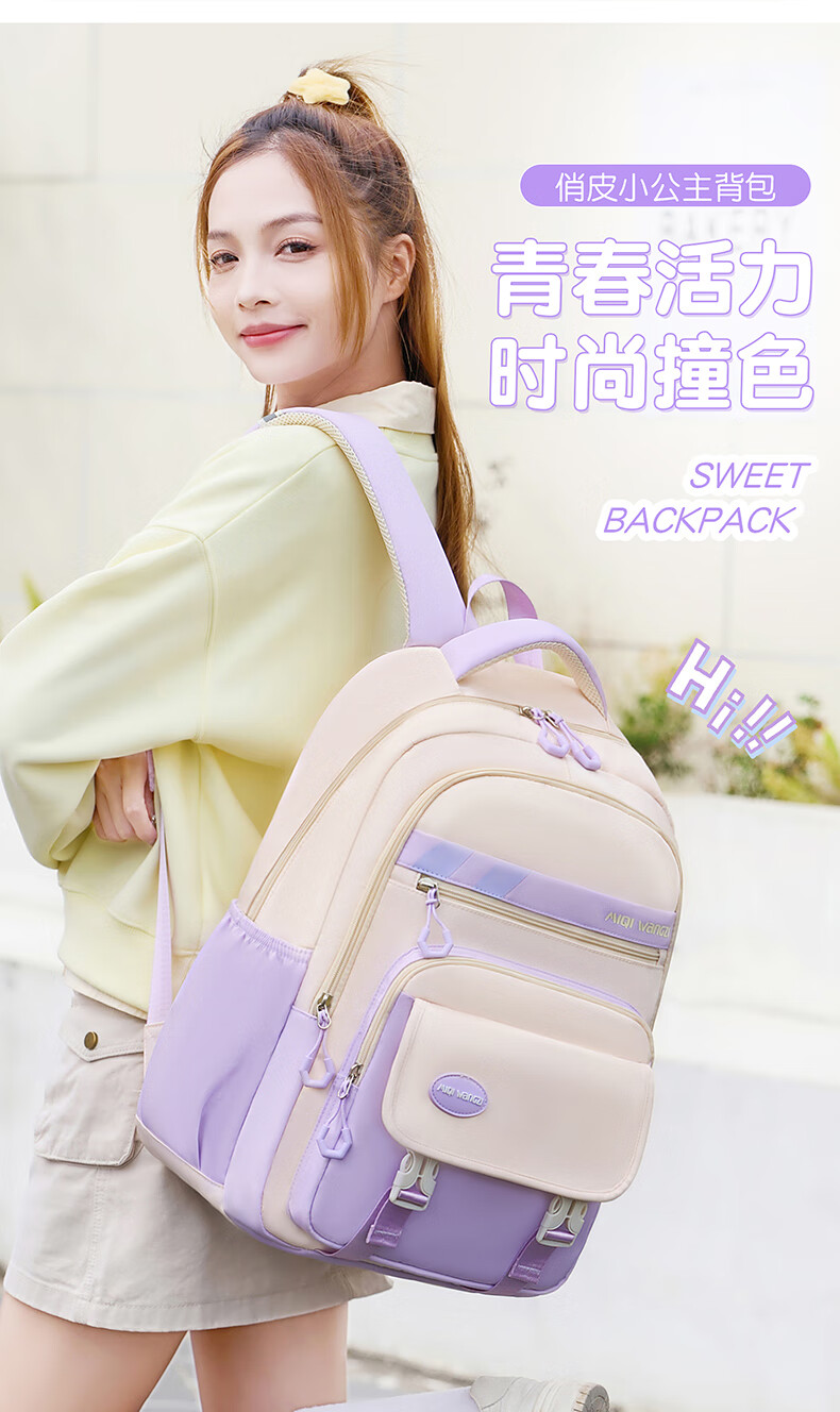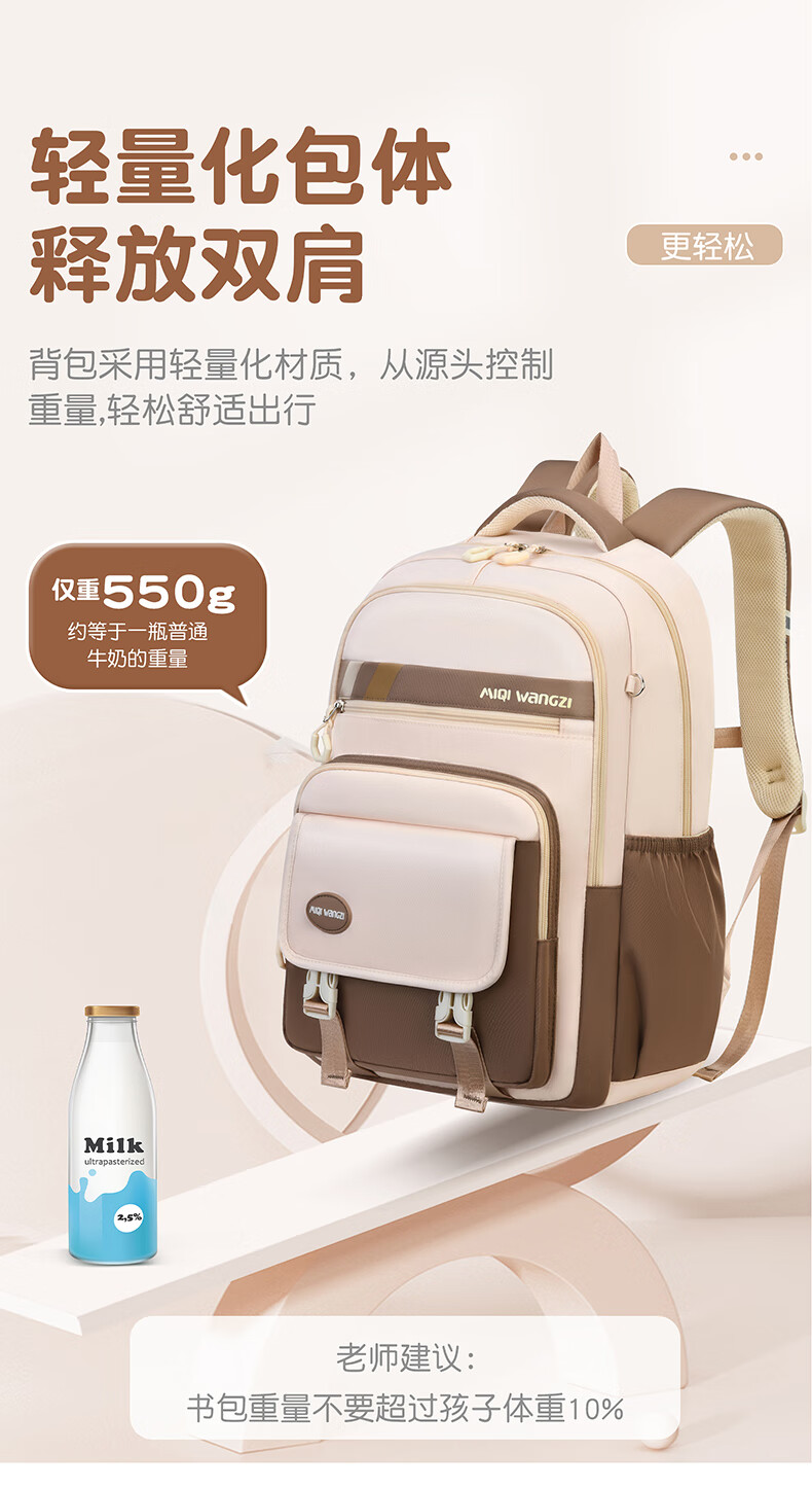 智多宝初中生书包女生高中学生超大容量背包女小学生3-6年级轻便双肩包 中号粉色(送挂饰+手表+套尺)