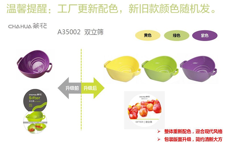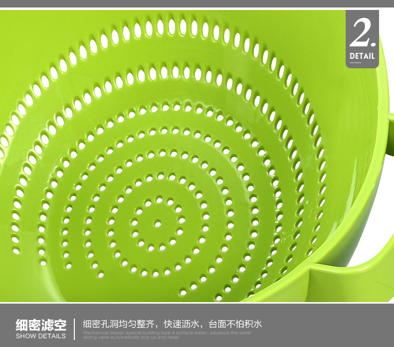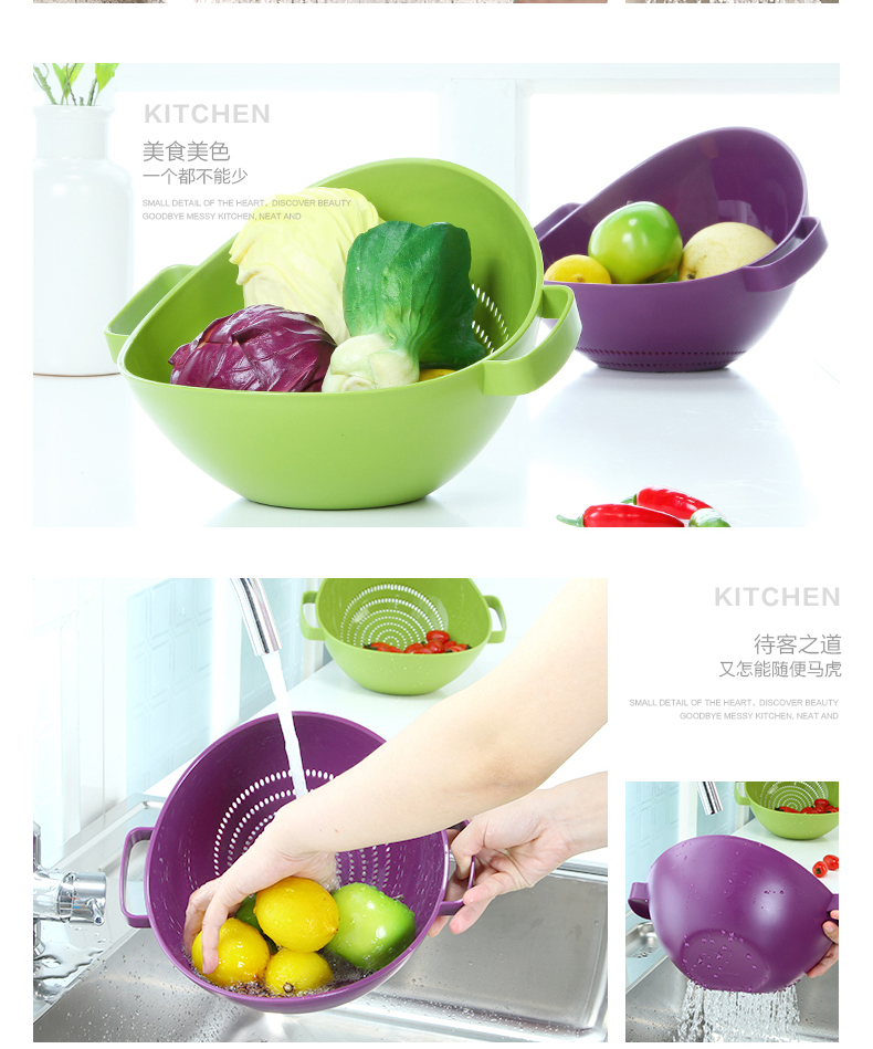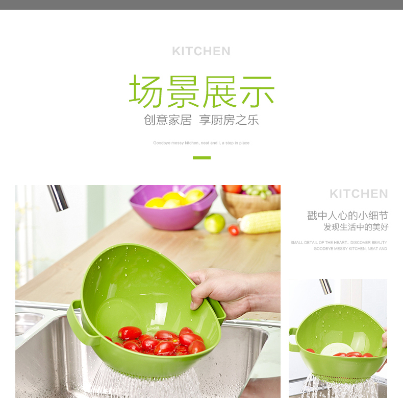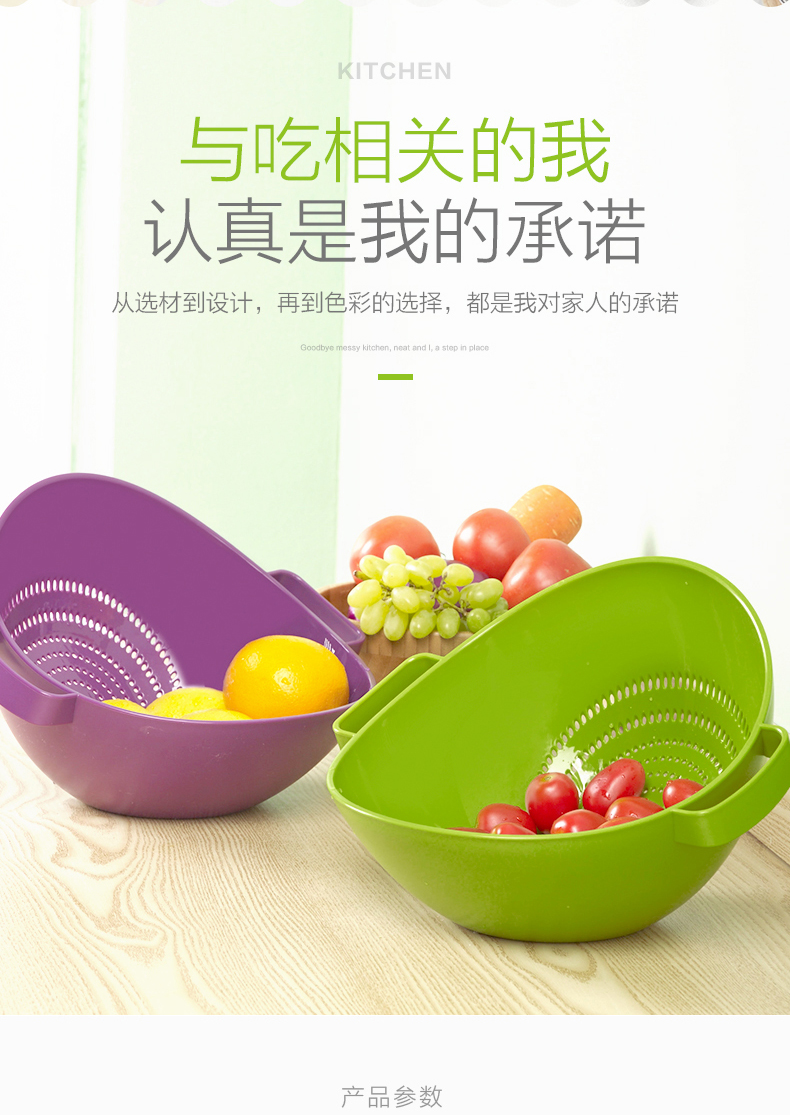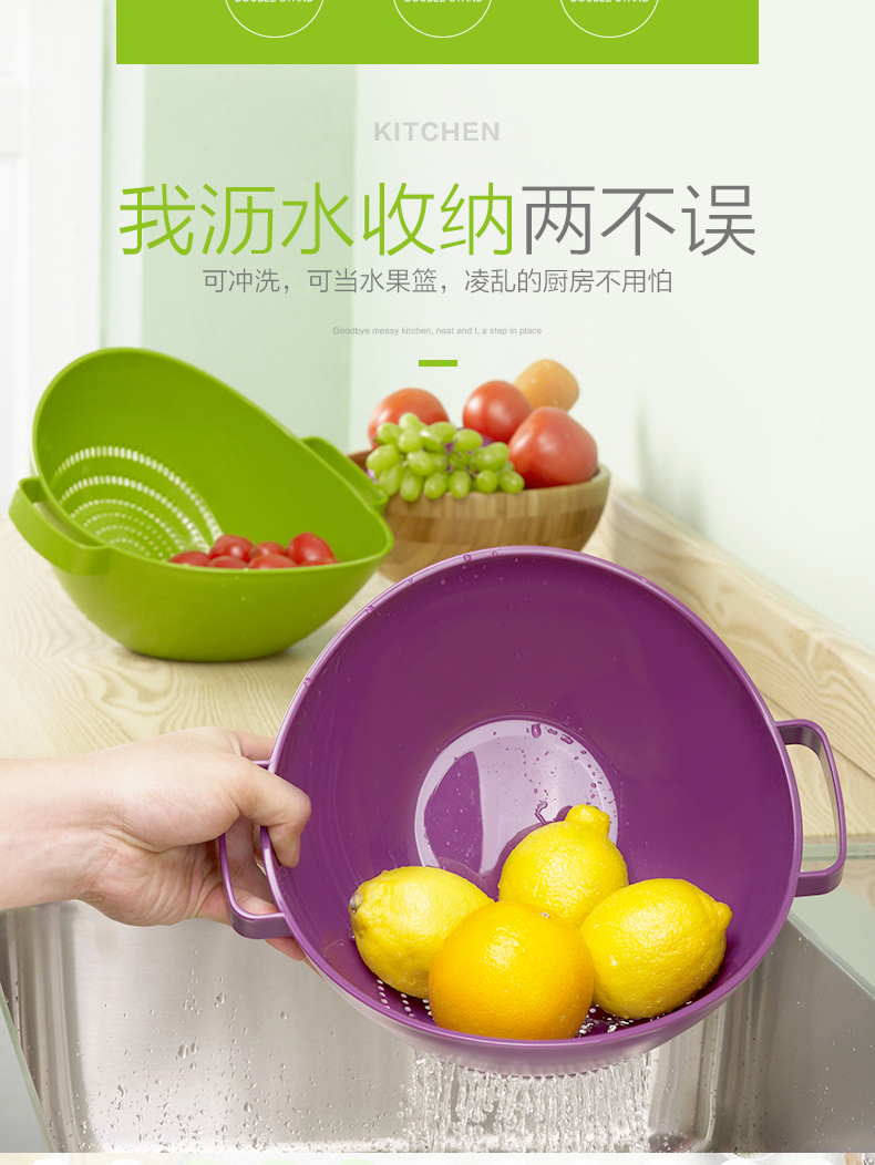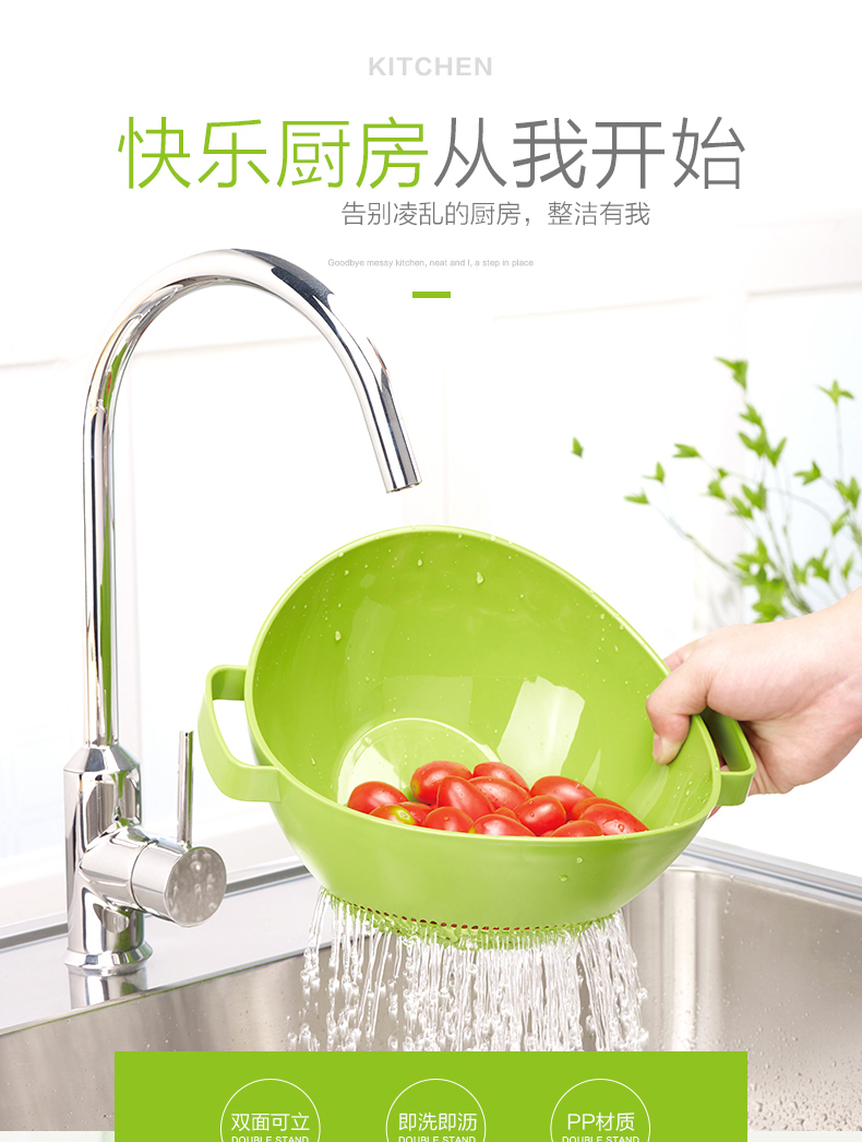 茶花【厂家直供】双立筛厨房洗菜篮塑料沥水篮加厚洗水果盆A35002 绿色