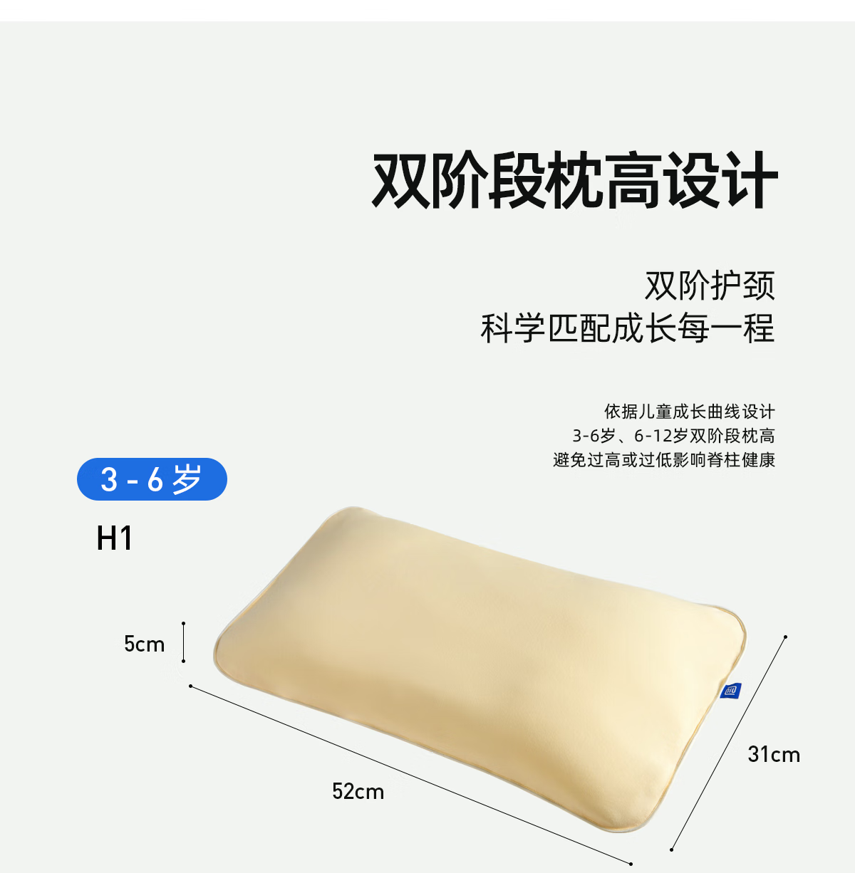 层舒儿童可调节健康枕可机洗可水洗A类6-12岁护颈枕日本软管枕 单只 高枕 7cm 【6-12岁】