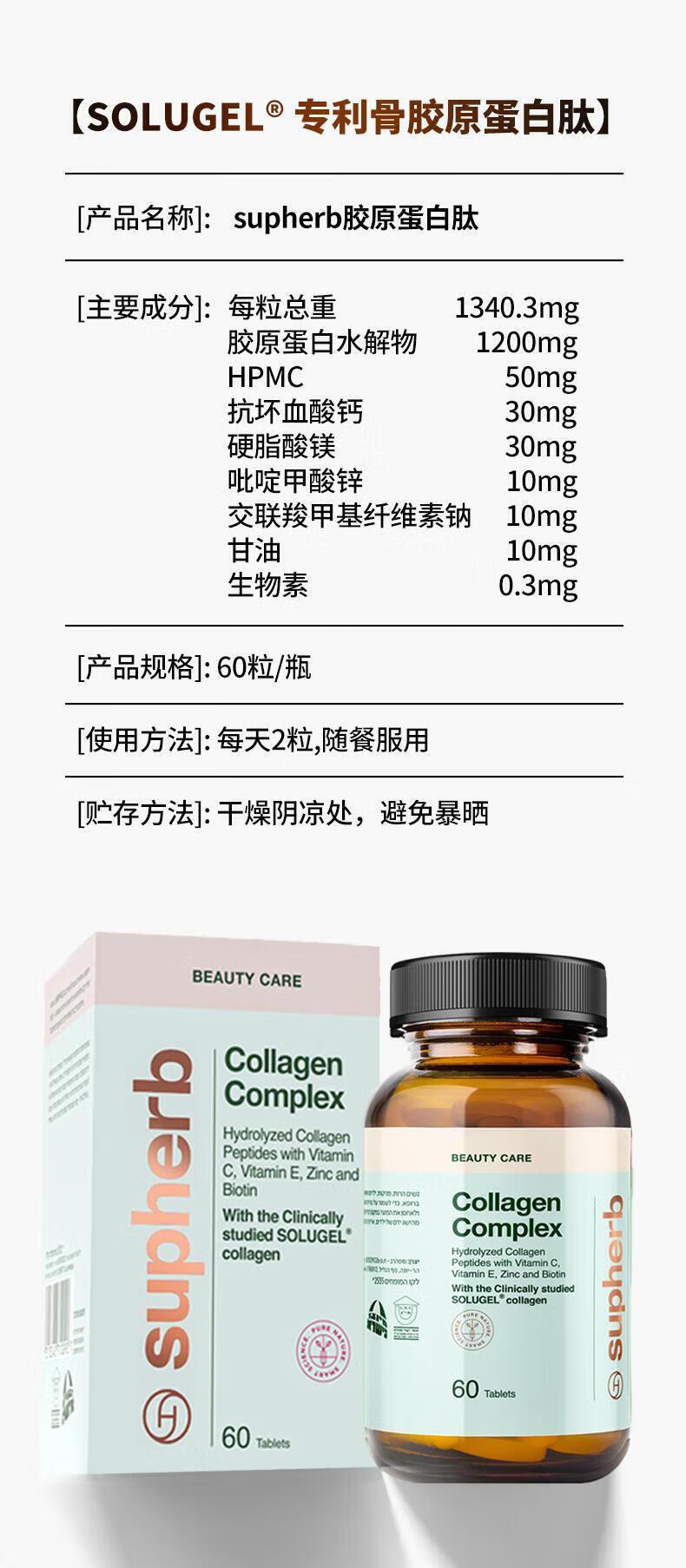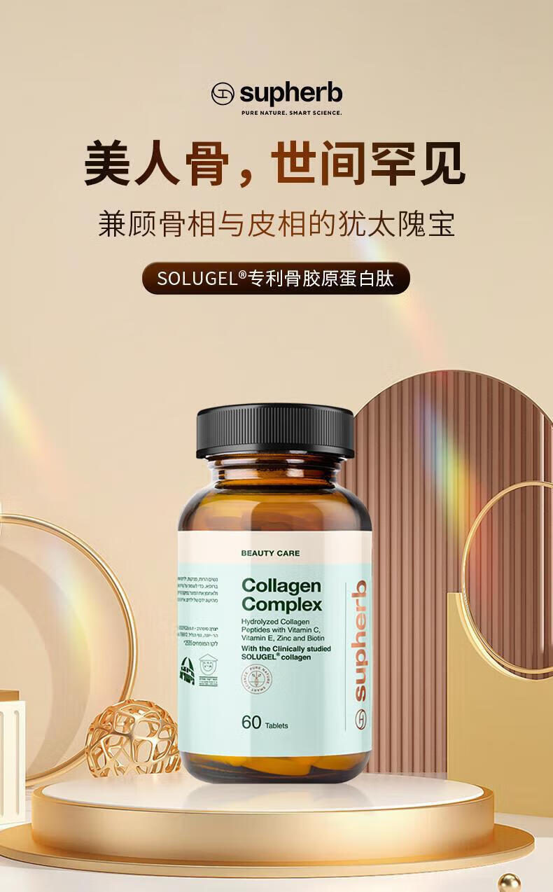 Supherb官方直营以色列骨胶原蛋白肽骨相美紧致下颌小分以色列骨胶原 1瓶基础装 60粒*1瓶