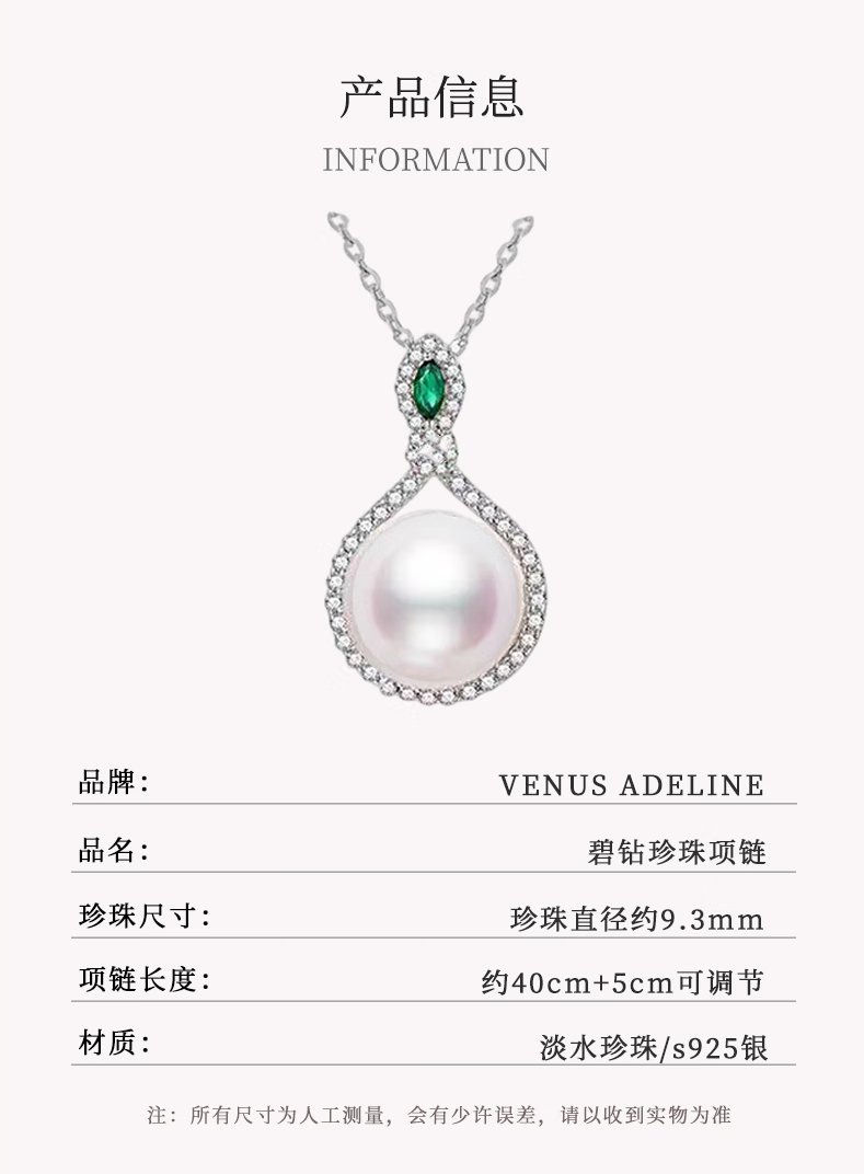 VENUS ADELINE珍珠项链女银淡水吊坠年轻款轻奢锁骨链女友老婆妈妈生日七夕礼物 七夕情人节生日礼物送女友老婆