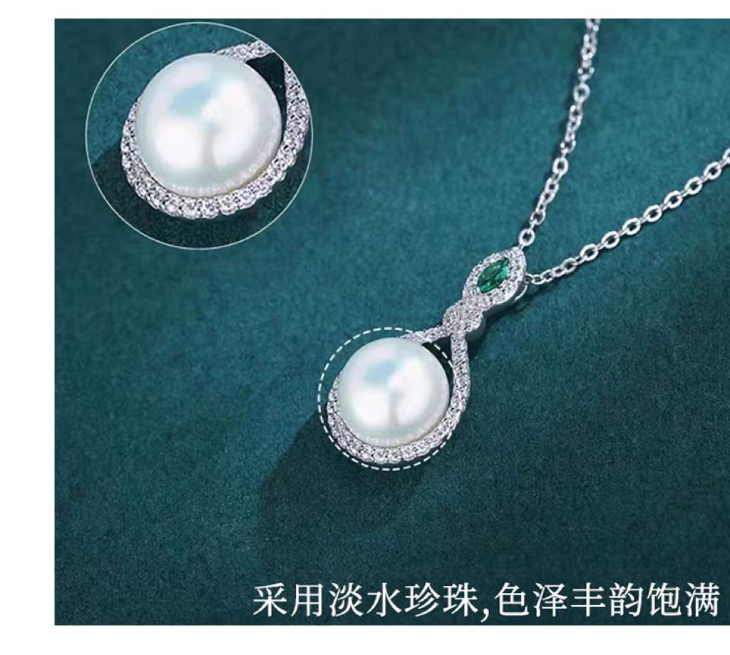 VENUS ADELINE珍珠项链女s925银淡水妈妈款吊坠大颗粒送老婆老师七夕生日礼物 七夕情人节生日礼物送女友老婆